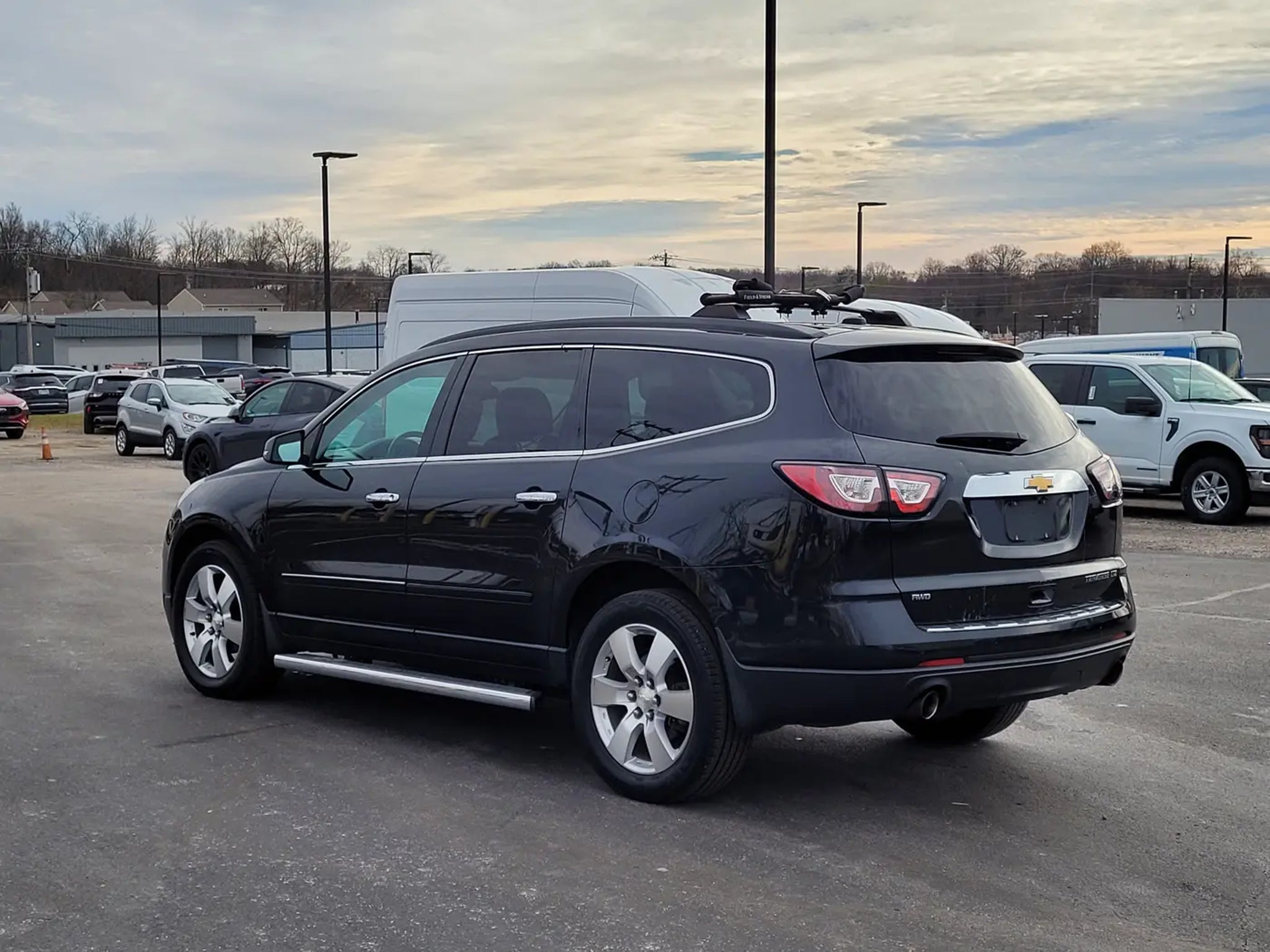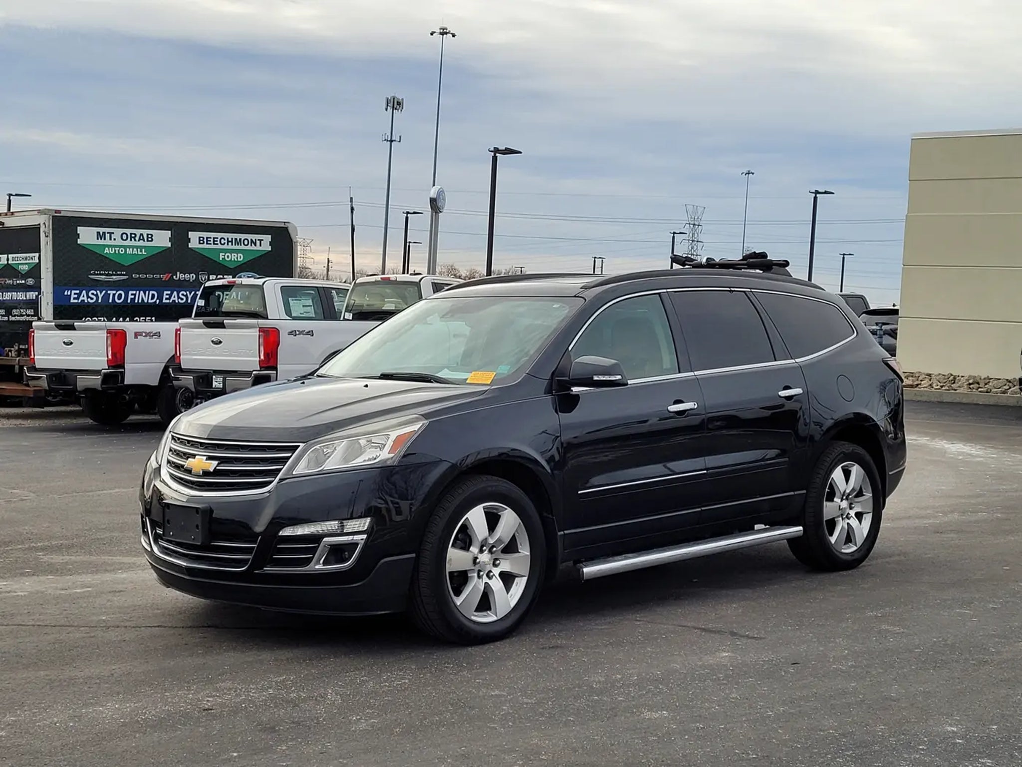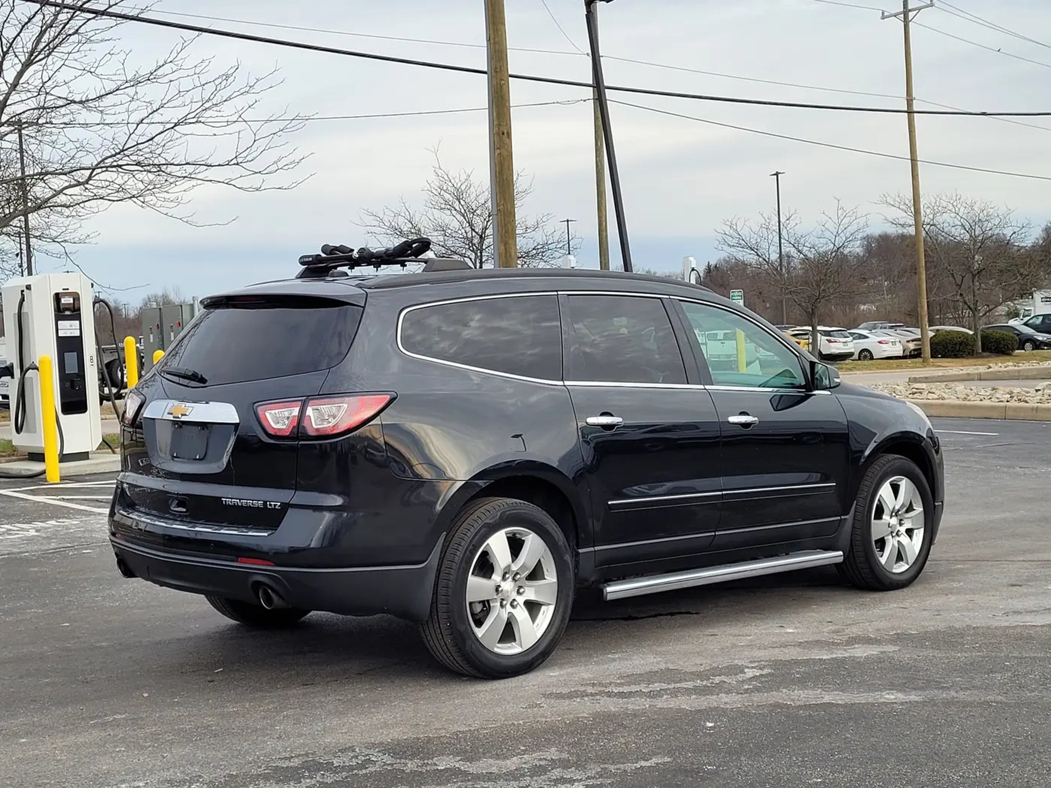 Recent Arrival! Odometer is 34,091 miles below market average!Discover comfort, technology, and capability in this 2015 Chevrolet Traverse LTZ 4D Sport Utility in Black Granite Metallic. Powered by a 3.6L V6 SIDI engine with a 6-speed automatic transmission and AWD, this Traverse combines confident handling with spacious versatility for family and adventure.This one-owner LTZ model features Ebony/Saddle Up leather seating, heated and ventilated front seats, heated steering wheel, and an 8-way power driver and passenger seat with memory settings. The cabin includes tri-zone automatic climate control, a premium Bose 10-speaker audio system, Chevrolet MyLink with navigation and rear entertainment, and rear audio controls, offering comfort and convenience for every passenger.Technology and safety highlights include Bluetooth phone connectivity, rear park assist, side blind zone alert with rear cross traffic alert, forward collision alert with lane departure warning, exterior parking camera rear, remote start, OnStar Directions & Connections, and multiple airbags with electronic stability control for peace of mind.Exterior features include 20 aluminum wheels, chrome assist steps, dual exhaust with bright tips, dual SkyScape 2-panel power sunroof, and body-color moldings with chrome bodyside accents, giving the Traverse a refined, commanding presence. Additional amenities include roof rails with longitudinal C-channels and cross rails, hit the road package, and 7-passenger seating (2-2-3 configuration) for maximum versatility.This 2015 Chevrolet Traverse LTZ has undergone a 146-point Mark Williams Auto Group inspection, ensuring quality, reliability, and readiness for the road.Stop Searching, Start Calling Today!