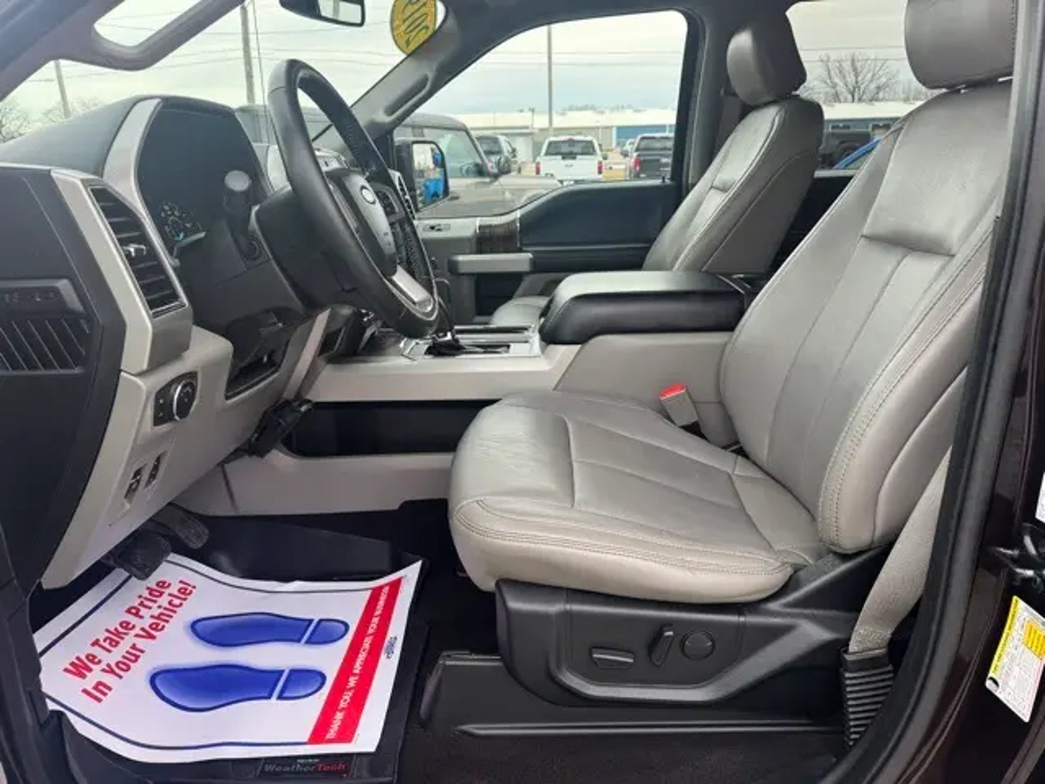 MAGMA RED WITH HEATED AND VENTILATED MEDIUM GRAY LEATHER BUCKET SEATS/CONSOLE. 5.0L V8 WITH 10-SPEED TRANSMISSION. VOICE-ACTIVATED NAVIGATION. POWER DRIVER AND PASSENGER SEATS WITH 10-WAY AND DRIVER MEMORY. LOCAL TRUCK WITH CLEAN CARFAX!!! LAST OWNER RETIRED AND BOUGHT A BIGGER CAMPER, TRADED FOR NEW SUPERDUTY! GREAT LOW MILEAGE LARIAT!