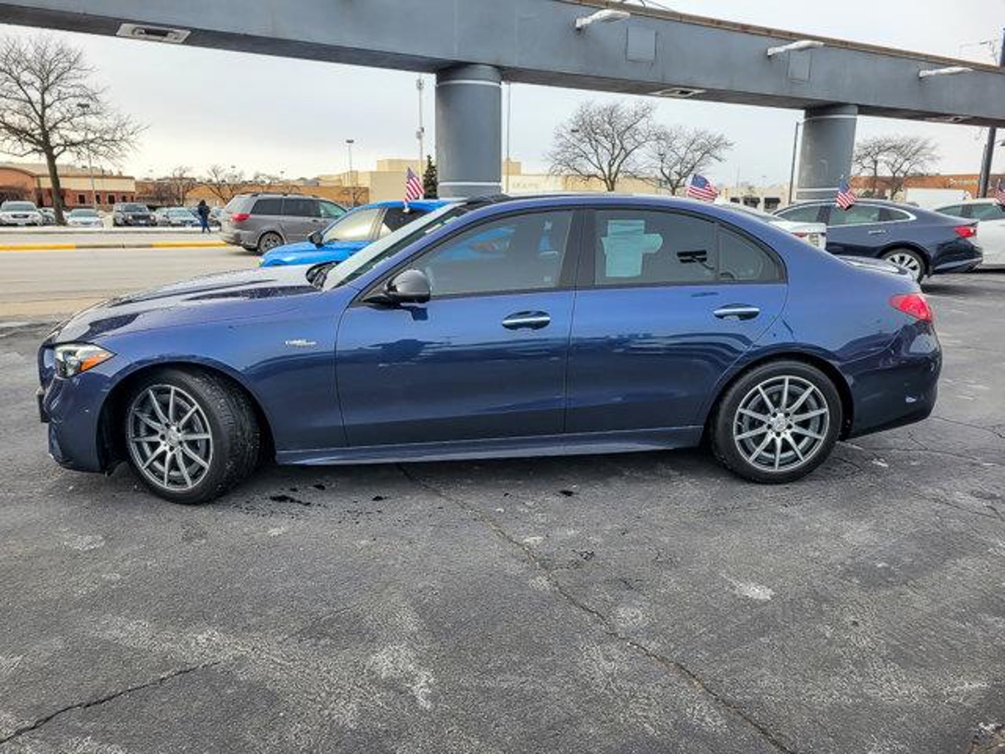 2024 Mercedes-Benz C-Class C 43 AMG 4MATIC Twilight Blue Metallic 4MATIC 4D Sedan I4 9-Speed Automatic Clean CARFAX. 20/28 City/Highway MPG **With some available options like AMG Night Package, AMG Night Package Components, Individualization Package, Pinnacle Trim Package (Augmented Video for Navigation, Burmester 3D Surround Sound System, DIGITAL LIGHT w/Projections, Enhanced Ambient Lighting, Head-Up Display w/AMG Specific Content, and MB Navigation), 4MATICÂ, Panorama Roof, 11.9 Center Touchscreen Display, 4-Wheel Disc Brakes, 5 Speakers, ABS brakes, Adaptive suspension, Air Conditioning, Alloy wheels, AM/FM radio, Apple CarPlayÂ/Android AutoÂ, Auto High-beam Headlights, Auto tilt-away steering wheel, Auto-dimming door mirrors, Auto-dimming Rear-View mirror, Automatic temperature control, Brake assist, Bumpers: body-color, Compass, Delay-off headlights, Driver door bin, Driver vanity mirror, Dual front impact airbags, Dual front side impact airbags, Electronic Stability Control, Emergency communication system: Mercedes-Benz Emergency Call Service, Exterior Parking Camera Rear, Four wheel independent suspension, Front anti-roll bar, Front Bucket Seats, Front Center Armrest, Front dual zone A/C, Front reading lights, Fully automatic headlights, Garage door transmitter: HomeLink, Genuine wood dashboard insert, Head restraints memory, Heated door mirrors, Heated front seats, Illuminated entry, Knee airbag, Leather steering wheel, Low tire pressure warning, MB-Tex/Microfiber Upholstery, Memory seat, Occupant sensing airbag, Outside temperature display, Overhead airbag, Overhead console, Panic alarm, Passenger door bin, Passenger vanity mirror, Power adjustable front head restraints, Power door mirrors, Power driver seat, Power Heated Front Seats w/Memory, Power moonroof, Power passenger seat, Power steering, Power windows, Premium audio system: MBUX, Radio data system, Radio: FrontBass 5-Speaker Audio System, Rain sensing wipers, Rear anti-roll bar, Rear fog lights, Rear reading lights, Rear seat center armrest, Rear window defroster, Remote keyless entry, Security system, Speed control, Speed-sensing steering, Split folding rear seat, Spoiler, Sport steering wheel, Steering wheel memory, Steering wheel mounted audio controls, Tachometer, Telescoping steering wheel, Tilt steering wheel, Traction control, Trip computer, Turn signal indicator mirrors, Variably intermittent wipers, Weather band radio, and Wheels: 18 x 8.0J AMG 10-Spoke ** 4MATICÂ, AMG Night Package, AMG Night Package