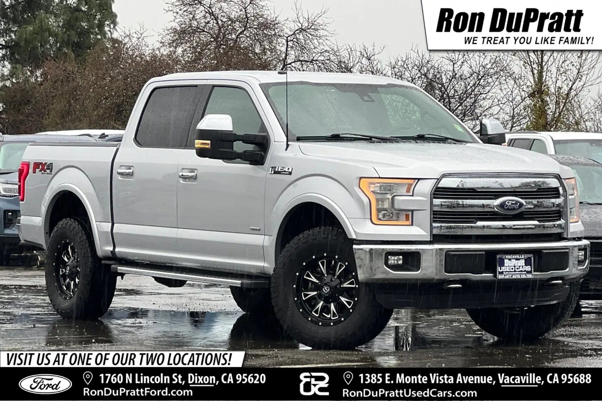 2016 Ford F-150 Lariat 4D SuperCrew 4WD NAVIGATION SYSTEM, LEATHER SEATS, REMOTE START, KEY LESS ENTRY, PUSH TO START, BLUETOOTH, APPLE CARPLAY, HEATED SEATS, COOLED/VENTILATED SEATS, REAR HEATED SEATS, HEATED STEERING WHEEL, BACKUP/REARVIEW CAMERA, REAR PARK ASSIST, BLIND SPOT ALERT, TRAILER BRAKE CONTROLLER, TOW PACKAGE, PRO TRAILER ASSIST, TOW MIRRORS, RUNNING BOARDS, ADJUSTABLE PEDALS, SPRAY IN BED LINER, ALL WEATHER MATS, TONNEAU COVER, POWER SLIDING REAR WINDOW, FACTORY WHEELS, TRIPLE MEMORY SEAT, CLEAN CARFAX, ONE OWNER, SONY PREMIUM SOUND, BEDRUG, FUEL WHEELS ON COOPER TIRES, FX4 PACKAGE, F-150 Lariat, 4WD. Recent Arrival! CARFAX One-Owner. Clean CARFAX. Odometer is 11505 miles below market average! Awards: * 2016 KBB.com Brand Image Awards Ron DuPratt Ford has been serving Northern California since 1956! Family owned and operated, we are one of the fastest growing Ford dealerships in Northern California, and specialize in affordable vehicles with an excellent selection for you to choose from. Don't take it from us - check out all of our satisfied customers: Google 4.4 stars, Edmunds 5 Star Dealer, Car Gurus 5 Star Dealer, and 12 time Ford President's Award winner. Serving Davis, Vacaville, Fairfield, Woodland, Winters, Elk Grove, West Sacramento, Roseville, Rocklin and Vallejo California. Our friendly staff is fun, approachable, and very knowledgeable. We are trained to help you find the right financing and appropriate vehicle that meets your needs.