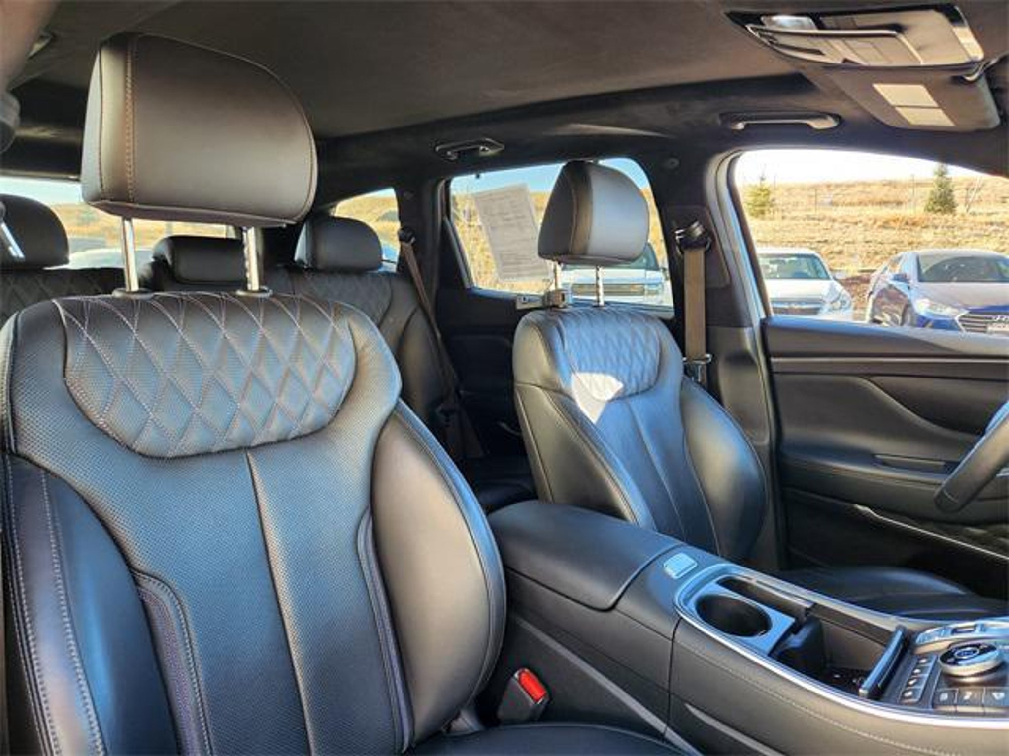 RECALL NOTICE: Some vehicles offered for sale may be subject to unrepaired manufacturer safety recalls. To determine the recall status of a vehicle, visit https:// Hyundai Santa Fe Calligraphy Twilight Black Shiftronic I4 Clean CARFAX. AWD, REAR BACK UP CAMERA, SUNROOF/MOONROOF, NAVIGATION/GPS/NAV, REMOTE START, LEATHER, HEATED SEATS, 1 OWNER, CARFAX/HYUNDAI CERTIFIED!, AWD, Obsidian Black w/Quilted Nappa Leather Seat Trim, 12 Speakers, Air Conditioning, Alloy wheels, Auto High-beam Headlights, Bumpers: body-color, Driver door bin, Front dual zone A/C, Fully automatic headlights, Garage door transmitter: HomeLink, Heated & Ventilated Front Bucket Seats, Heated steering wheel, Illuminated entry, Leather steering wheel, Option Group 01, Outside temperature display, Panic alarm, Power door mirrors, Power Liftgate, Power moonroof, Radio: AM/FM/MP3 Harman Kardon Display Audio, Rear window wiper, Security system, Speed control, Split folding rear seat, Tachometer, Tilt steering wheel, Trip computer, Turn signal indicator mirrors, Ventilated front seats. Option Group 01, Hyundai Certified Used Vehicles Certified, AWD, Obsidian Black w/Quilted Nappa Leather Seat Trim, 12 Speakers, Air Conditioning, Alloy wheels, Auto High-beam Headlights, Bumpers: body-color, Driver door bin, Front dual zone A/C, Fully automatic headlights, Garage door transmitter: HomeLink, Heated & Ventilated Front Bucket Seats, Heated steering wheel, Illuminated entry, Leather steering wheel, Outside temperature display, Panic alarm, Power door mirrors, Power Liftgate, Power moonroof, Radio: AM/FM/MP3 Harman Kardon Display Audio, Rear window wiper, Security system, Speed control, Split folding rear seat, Tachometer, Tilt steering wheel, Trip computer, Turn signal indicator mirrors, Ventilated front seats, 4-Wheel Disc Brakes, ABS brakes, AM/FM radio: SiriusXM, Apple CarPlay & Android Auto, Auto-dimming Rear-View mirror, Automatic temperature control, Axle Ratio: 3.316, Brake assist, Cargo Cover/Screen, Cargo Net, Cargo Tray, Carpeted Floor Mats, Delay-off headlights, Driver vanity mirror, Dual front impact airbags, Dual front side impact airbags, Electronic Stability Control, Emergency communication system, Four wheel independent suspension, Front anti-roll bar, Front Bucket Seats, Front Center Armrest, Front reading lights, Heads-Up Display, Heated door mirrors, Heated front seats, Heated rear seats, Low tire pressure warning, Memory seat, Navigation System, Occupant sensing airbag, Overhead airbag, Overhead console, Passenger door bin, Passenger vanity mirror, Power driver seat, Power passenger seat, Power steering, Power windows, Quilted Nappa Leather Seat Trim, Rain sensing wipers, Rear anti-roll bar, Rear seat center armrest, Rear window defroster, Remote keyless entry, Roof Rack Cross Bars, Speed-sensing steering, Spoiler, Steering wheel mounted audio controls, Telescoping steering wheel, Traction control, and Variably intermittent wipers.Hyundai Certified Used Vehicles Details:* Powertrain Limited Warranty: 120 Month/100,000 Mile (whichever comes first) from original in-service date* Roadside Assistance* Warranty Deductible: $50* Includes 10-year/Unlimited Mileage Roadside Assistance with Rental Car and Trip Interruption Reimbursement; Please See Dealers for Specific Vehicle Eligibility Requirements. 10-Year/100,000 Mile Hybrid/EV Battery Warranty. 3-Months SiriusXM Trial Subscription. Complimentary 1 Year (Connected Care & Remote Pkgs).* Vehicle History* Limited Warranty: 60 Month/60,000 Mile (whichever comes first) from original in-service date* 173 Point InspectionCARFAX One-Owner.Recent Arrival! We're the #1 Hyundai Certified Dealer in Northern CO! We're located in Longmont CO, but also serving the greater Denver area, including, Boulder, Loveland, Greeley, Ft. Collins, Cheyenne, Broomfield, and Northern CO. Please call .