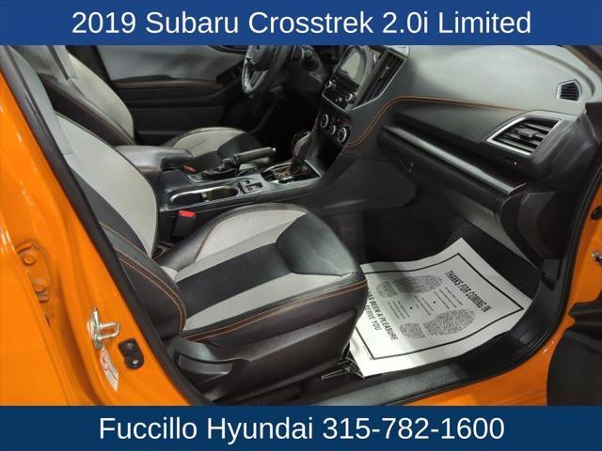 Details > 2019 Subaru Crosstrek AWD 2.0I Limited 4DR Crossover For Sale in Watertown, NY Private Party Sellers Click here to place your ad now! You auta tell them you saw the ad in AutaBuy when you call or email. 1/25 2/25 3/25 4/25 5/25 6/25 7/25 8/25 9/25 10/25 11/25 12/25 13/25 14/25 15/25 16/25 17/25 18/25 19/25 20/25 21/25 22/25 23/25 24/25 25/25 View 25 Photos View All Add to My Garage Parked in Your Garage! Fuccillo Hyundai of Watertown Contact Seller: I would like to: Make Offer Check Availability Ask A Question Request More Photos Check Financing Options Send a copy of this message to me Add this listing to my garage Send to Mobile Mileage 73,198 Exterior Color Sunshine Orange Interior Color Gray Doors 4 Engine 2.0L H4 Transmission 7 Speed Stock # 38253B VIN JF2GTAMC4K8268104 Estimated Monthly Payment $347 mo Apply Now J.J. Best Banc & Co. 2019 Subaru Crosstrek AWD 2.0I Limited 4DR Crossover Description: Fuccillo Hyundai Of Watertown · Mileage: 73,198 · Color: Sunshine Orange Price: $19,950. Mileage 73,198 Exterior Color Sunshine Orange Interior Color Gray Doors 4 Engine 2.0L H4 Transmission 7 Speed Stock # 38253B VIN JF2GTAMC4K8268104 Estimated Monthly Payment $347 mo Apply Now J.J. Best Banc & Co. Add to My Garage Parked in Your Garage! Message Seller Fuccillo Hyundai of Watertown Contact Seller: I would like to: Make Offer Check Availability Ask A Question Request More Photos Check Financing Options Send a copy of this message to me Add this listing to my garage Offered for sale by Fuccillo Hyundai of Watertown WATERTOWN, NY Price: $19,950. Offered for sale by Fuccillo Hyundai of Watertown WATERTOWN, NY [entire inventory] Ask Auta Intelligence What engine options did these come with? Tell me the history on this model What trim levels were available for this model? What safety features does this model offer? Can you show me more suvs for a similar price? What factory options were available on this model? What colors did these come in? How many of these were produced? What does this VIN number tell me? How easy are parts to find for this model? When was this model first introduced? What kind of mileage do these get? What transmission options did these offer? How far is this from me? Do you have a similar car to sell? List It Now! Questions about this car? Ask Auta Intelligence for production numbers, available options, etc. · Subscribe to AutaBuy! · Send a Gift Subscription Notice to a Friend