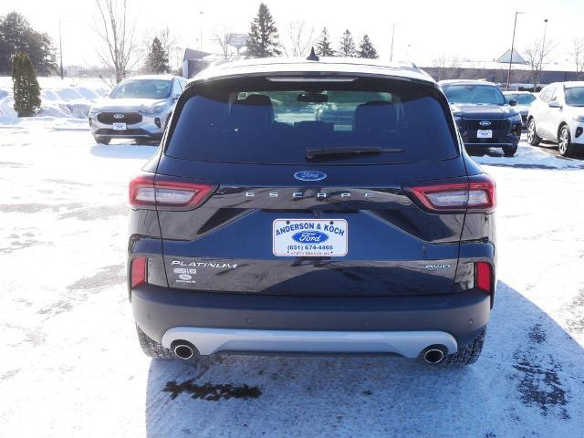 Certified. 2024 Agate Black Metallic Ford Escape Platinum EcoBoost 2.0L I4 GTDi DOHC Turbocharged VCT AWD Priced below KBB Fair Purchase Price! 23/31 City/Highway MPG Ford Gold Certified Details: * Warranty Deductible: $100 * and 22,000 FordPass Rewards Points to use toward first two maintenance visits * Vehicle History * Transferable Warranty * Limited Warranty: 12 Month/12,000 Mile (whichever comes first) after new car warranty expires or from certified purchase date * 172 Point Inspection * Roadside Assistance * Powertrain Limited Warranty: 84 Month/100,000 Mile (whichever comes first) from original in-service date Anderson & Koch Ford is conveniently located just outside of the Twin Cities in North Branch, MN. We have earned Ford Motor Company's highest honor for six consecutive years, The President's Award. From the moment you walk into our showroom, you'll know our commitment to Customer Service is second to none. We are looking forward to working with you! Call 651-674-4465 for more details!
