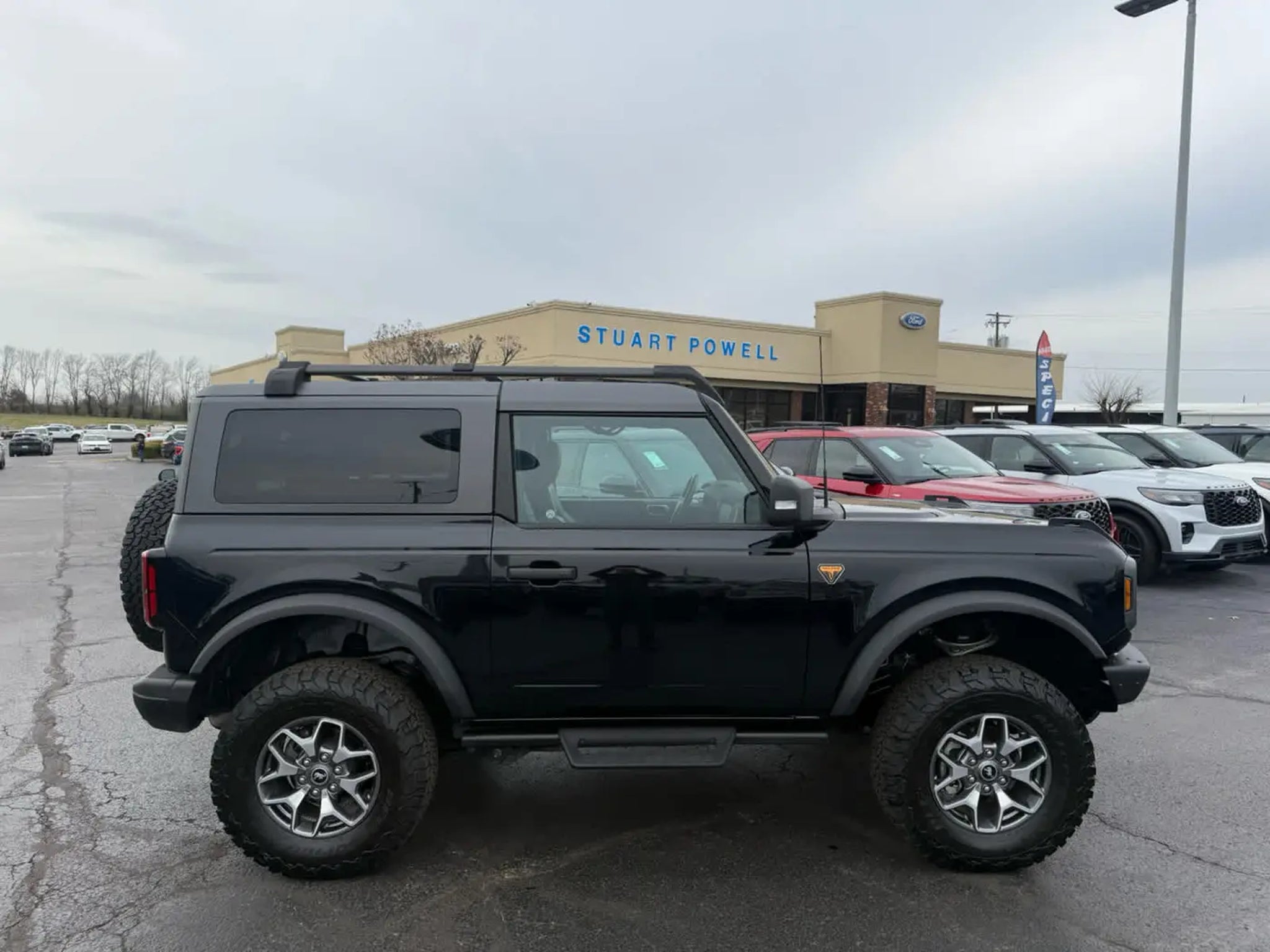 CARFAX 1-Owner. Heated Seats, Apple CarPlay®, Targa Roof, Convertible Hardtop, Onboard Communications System, iPod/MP3 Input, Satellite Radio, ENGINE: 2.7L ECOBOOST V6, BLACK ROOF RAILS W/CROSSBARS, TRANSMISSION: 10-SPEED AUTOMATIC KEY FEATURES INCLUDE Satellite Radio, iPod/MP3 Input, Onboard Communications System, Convertible Hardtop, Targa Roof, Aluminum Wheels, Apple CarPlay®. Privacy Glass, Steering Wheel Controls, Rollover Protection System, Electronic Stability Control. LIFT KIT Ford Badlands with Shadow Black exterior and Black Onyx interior features a V6 Cylinder Engine with 315 HP at 5500 RPM*. OPTION PACKAGES Rear Parking Sensors, Power Outlet - Back Side of Center Floor Console, Auto-Dimming Interior Rearview Mirror, Dr & Pass Illuminated Sliding Visor Vanity Mirrors, Evasive Steering Assist, Heated Steering Wheel, Additional Sound Deadening, Information on Demand Panel, Wireless Charging Pad, Dual-Zone Electronic Automatic Temperature Control, air conditioning, Ford Co-Pilot360, Enables compatibility w/FordPass performance app w/off-road navigation, Auto High-Beam Headlamps, Pre-Collision Assist w/Automatic Emergency Braking, pedestrian detection, forward collision warning and dynamic brake support, Blind Spot Information System (BLIS), Cross-Traffic Alert, Rear View Camera, backup assist grid lines, Lane-Keeping System, Lane-Keeping Alert, Lane-Keeping Aid and Driver Alert, Ambient Footwell, electric brake boost, GVWR: 5,860 lbs, trail control, trail turn assist and trail one-pedal driving, 4.46 Axle Ratio, Replaces the standard rock rails, Custom accessory, pre-installed, May reduce SiriusXM satellite radio reception performance, Custom accessory, pre-installed, Deletes standard carpet front floor mats. AFFORDABILITY This Bronco is priced $1,100 below J.D. Power Retail. SHOP WITH CONFIDENCE CARFAX 1-Owner MORE ABOUT US We Make It Easy! Since 1949, Stuart Powell has earned a reputation for transparent pricing and making it easy to do business. Come see why its worth the drive to Danville for a better way to buy. Pricing analysis performed on 1/27/2026. Horsepower calculations based on trim engine configuration. Please confirm the accuracy of the included equipment by calling us prior to purchase.