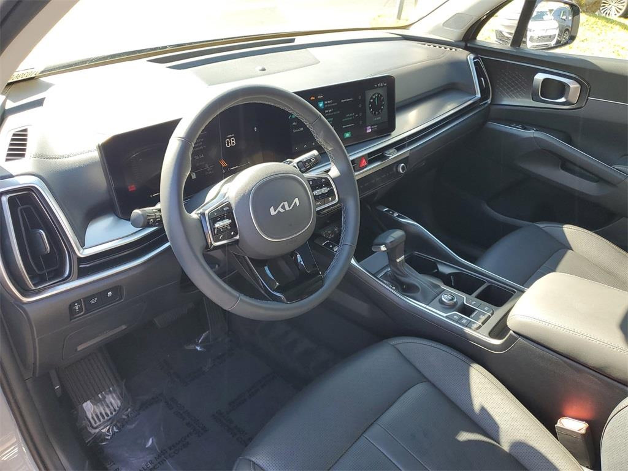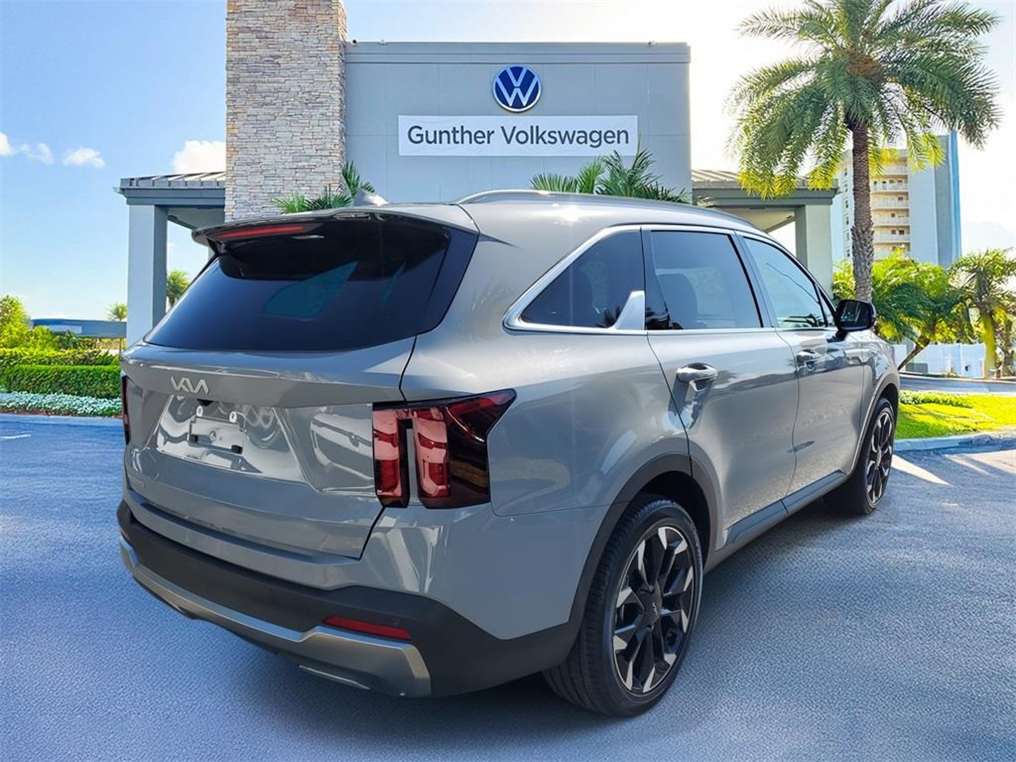 Recent Arrival! Wolf Gray 2025 Kia Sorento EX Odometer is 4382 miles below market average! 20/29 City/Highway MPG Equipped with Panoramic Sunroof Package (LED Interior Lighting and Panoramic Power Sunroof w/Power Sunshade), 3rd row seats: split-bench, 4-Wheel Disc Brakes, 6 Speakers, ABS brakes, Air Conditioning, Alloy wheels, AM/FM radio: SiriusXM, Apple CarPlay & Android Auto, Auto High-beam Headlights, Auto-dimming Rear-View mirror, Automatic temperature control, Brake assist, Bumpers: body-color, Carpeted Floor Mats, Delay-off headlights, Driver door bin, Driver vanity mirror, Dual front impact airbags, Dual front side impact airbags, Electronic Stability Control, Emergency communication system: 911 Connect, Exterior Parking Camera Rear, Four wheel independent suspension, Front anti-roll bar, Front Bucket Seats, Front Center Armrest, Front dual zone A/C, Front fog lights, Front reading lights, Fully automatic headlights, Heated door mirrors, Heated Front Bucket Seats, Heated front seats, Illuminated entry, Knee airbag, Leather Shift Knob, Leather steering wheel, Low tire pressure warning, Navigation System, Occupant sensing airbag, Outside temperature display, Overhead airbag, Overhead console, Panic alarm, Passenger door bin, Passenger vanity mirror, Power door mirrors, Power driver seat, Power Liftgate, Power passenger seat, Power steering, Power windows, Radio data system, Radio: AM/FM Standard Sound System, Rear anti-roll bar, Rear reading lights, Rear side impact airbag, Rear window defroster, Rear window wiper, Remote keyless entry, Security system, Speed control, Speed-sensing steering, Split folding rear seat, Spoiler, Steering wheel mounted audio controls, SynTex Artificial Leather Seat Trim, Tachometer, Telescoping steering wheel, Tilt steering wheel, Traction control, Trip computer, Turn signal indicator mirrors, Variably intermittent wipers, and Wheels: 20 Machine-Finished Gloss Black Alloy. Sale price shown excludes $989.00 Predelivery Service Charge, $395.00 Electronic Registration Filing Fee, all government fees, registration fees, titling fees, and Sales Tax VAUTO USED.