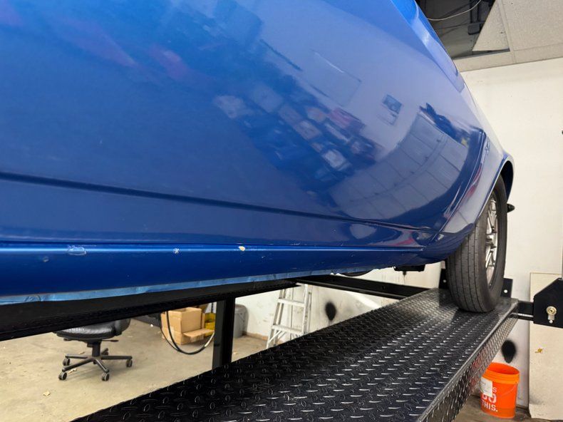 And it is that front end that gets your attention first, not because it's that of a '72 split bumper, but the blacked out trim, dark set LED headlights, and massive, arching cowl hood. While the entire car glistens with two stage medium blue metallic, the hood presents in a more matte blue with multiple dzus pins around the perimeter. In profile, intentions are clear with heavily staggered 15-inch Race Star Industries wheels wrapped in tires no older than mid 2020. The raked stance and the obvious plexiglass side windows plus the bump on the nose just look bad to the bone. Other than the power shut off, fat meats, and visible fuel pump lines, the back is otherwise pedestrian '78 Camaro with of course, the three part wing. Imperfections include chipping on the fiberglass hood, cracking paint by the door handle, various scratches, paint chips and rock chips, and paint runs on rockers.