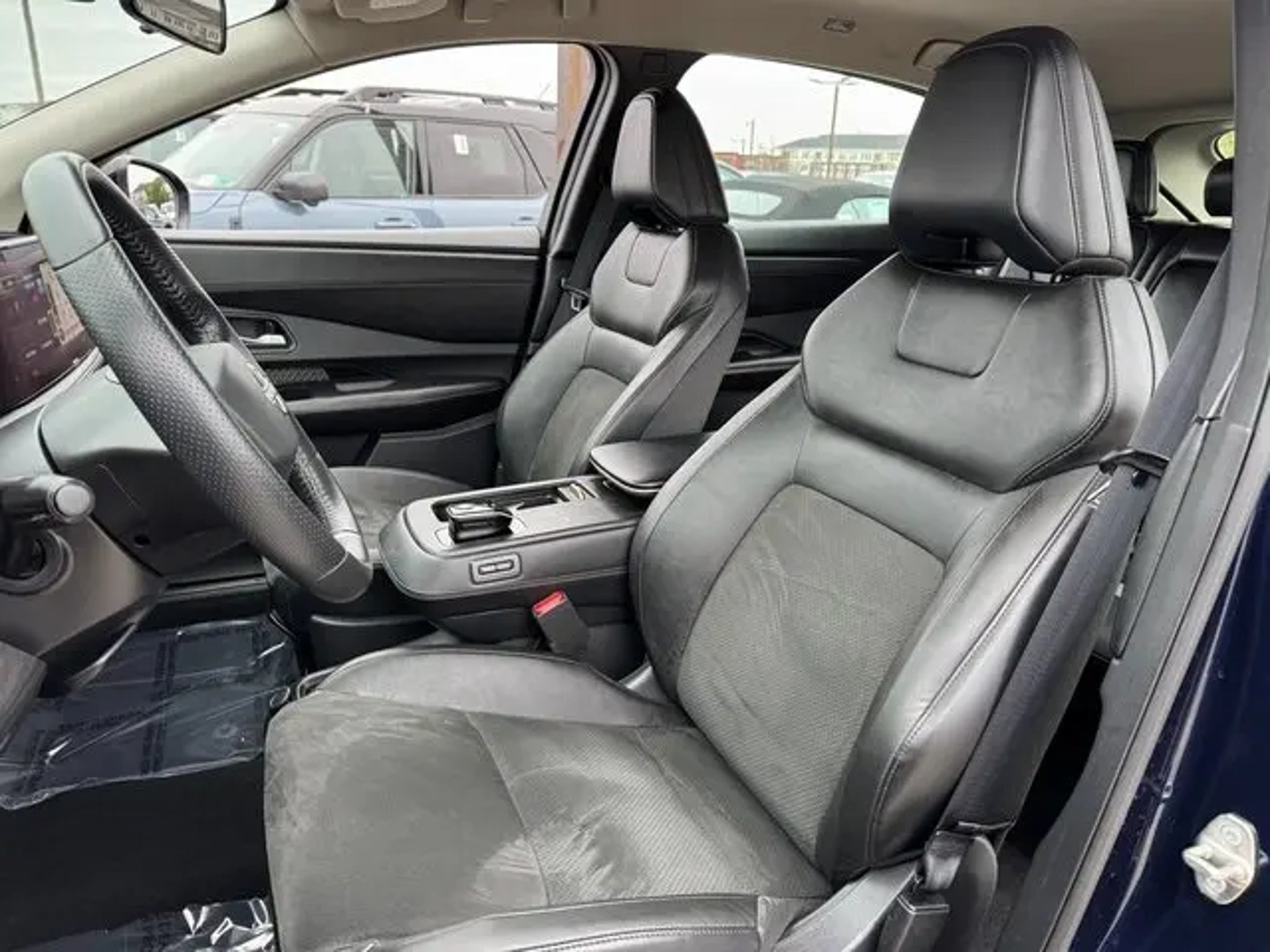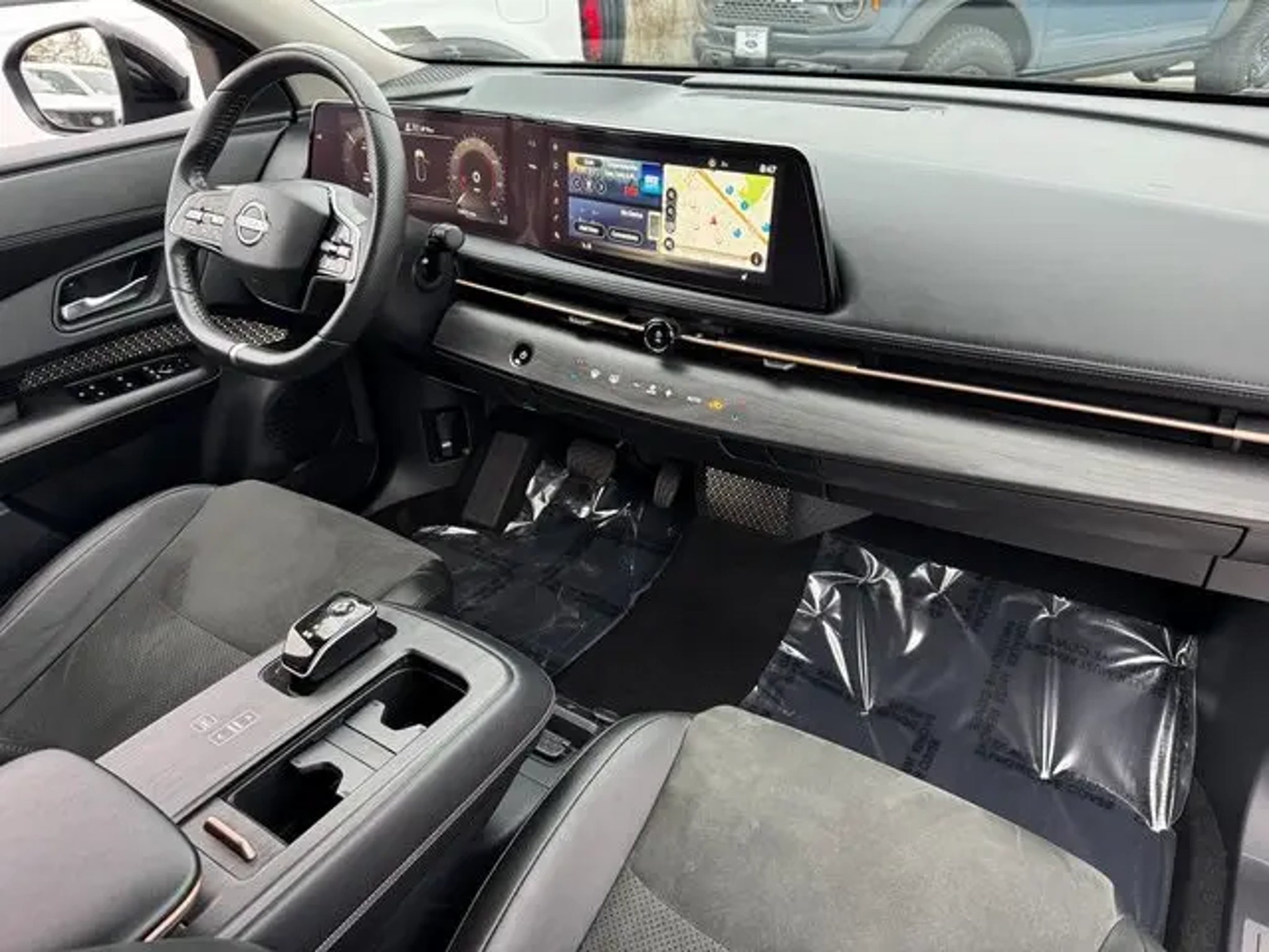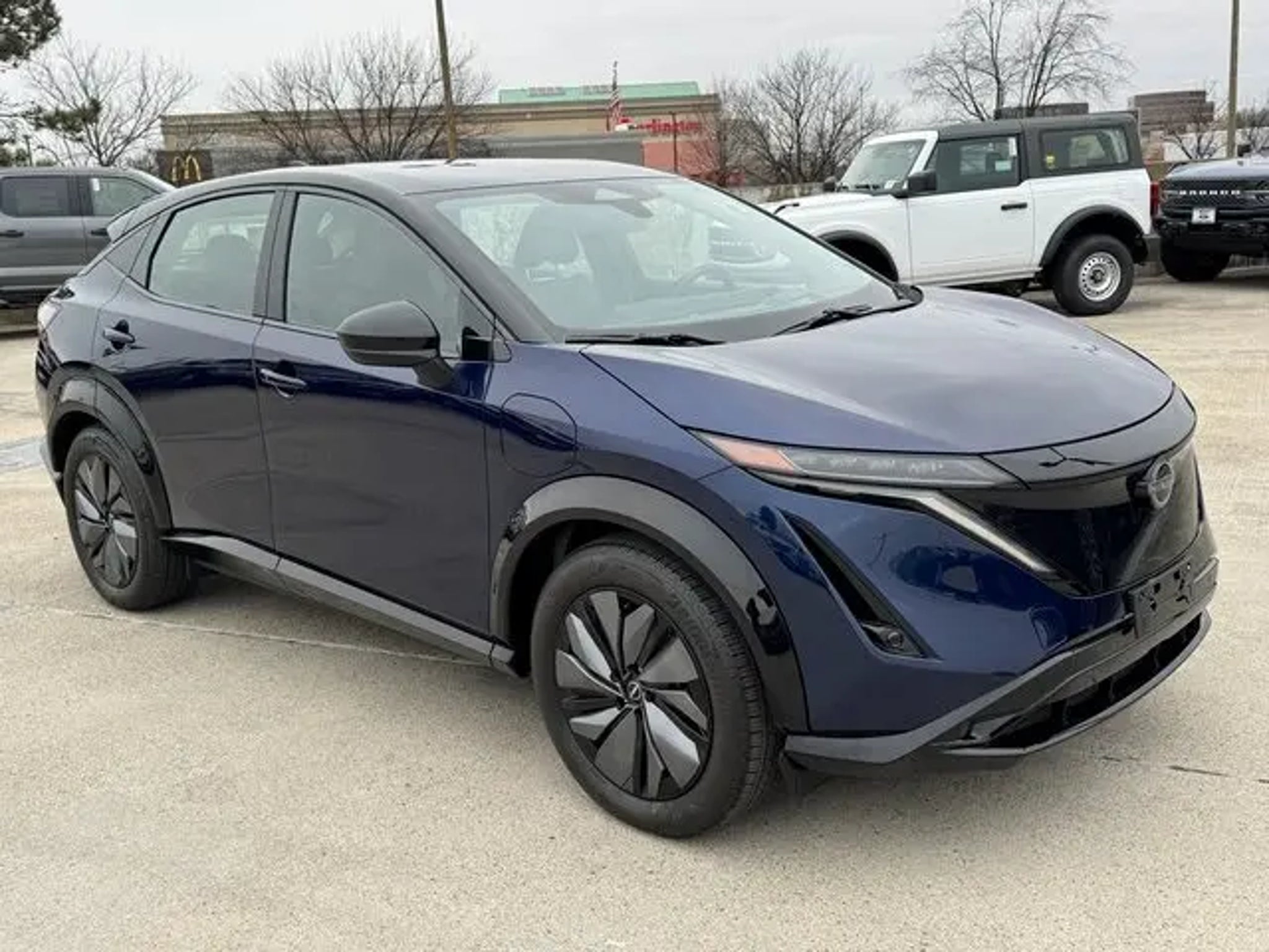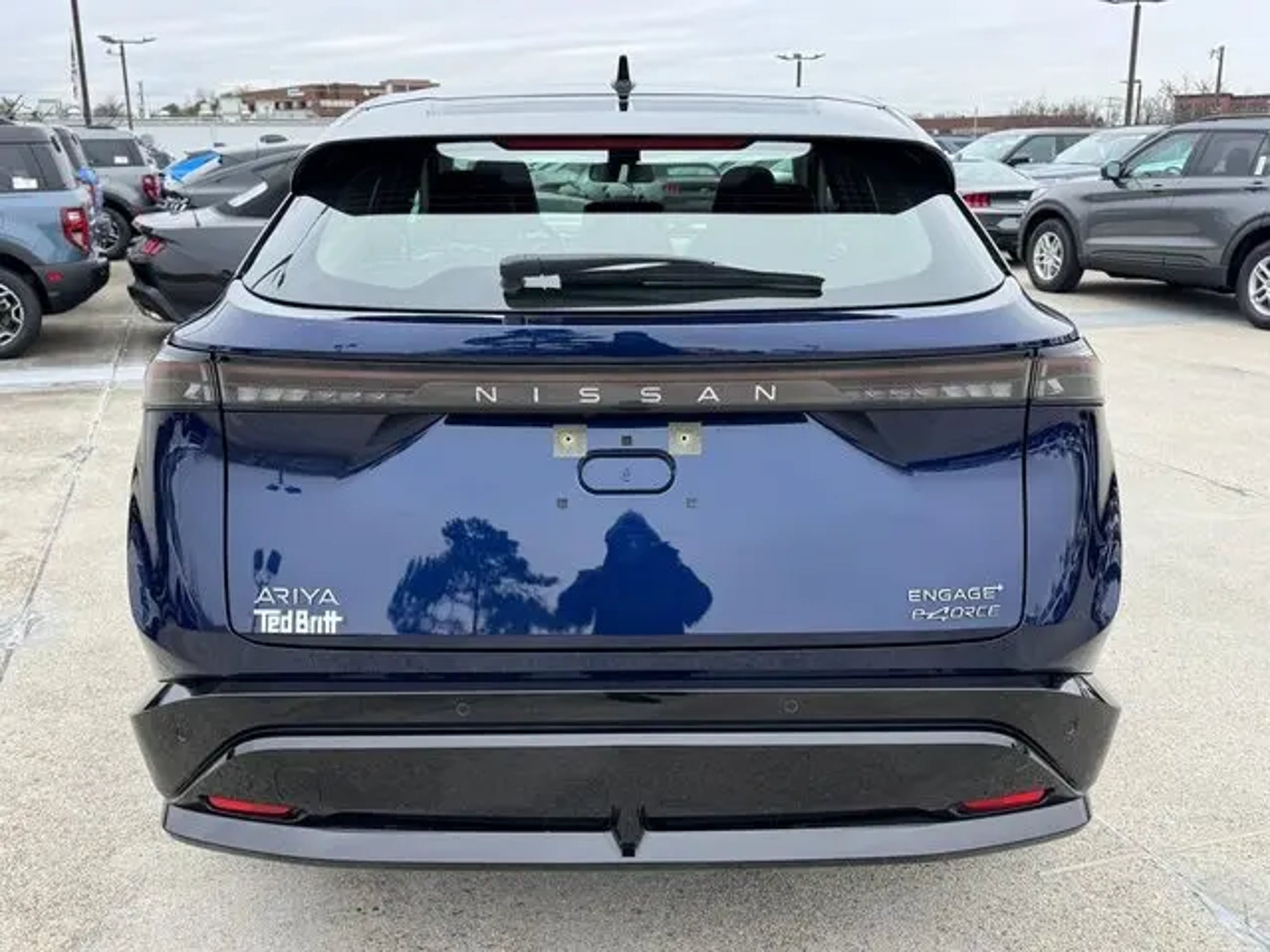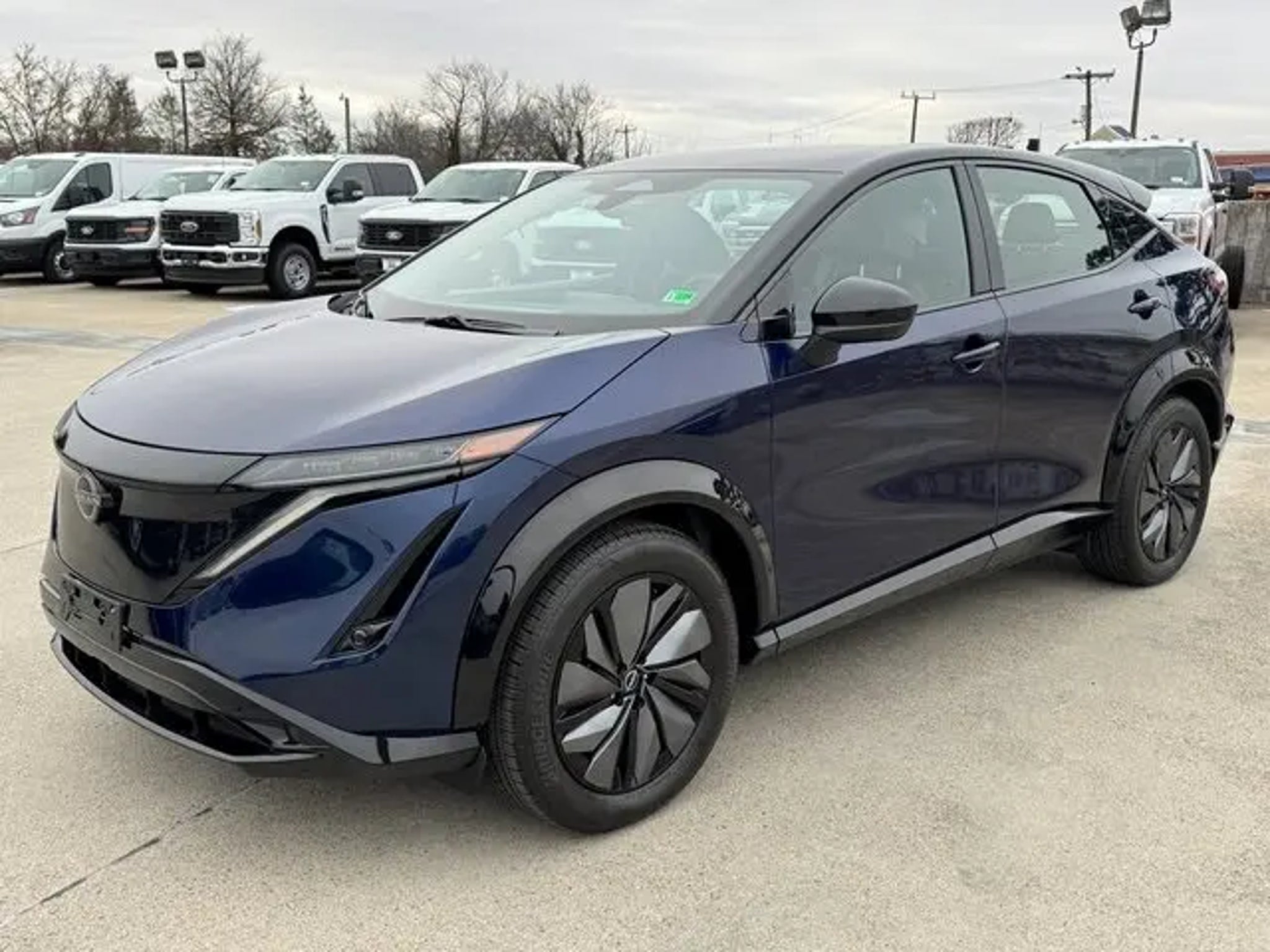 2023 Nissan Ariya Deep Ocean Blue Pearl/Black Diamond Pearl ENGAGE e-4ORCE, AWD**, WIRELESS APPLE CARPLAY/ANDROID AUTO**, NAVIGATION**, FRONT/REAR HEATED SEATS**, CLEAN CARFAX**, 19 Alloy Wheels, 4-Wheel Disc Brakes, 6 Speakers, 8.896/7.679 Final Drive Ratio, ABS brakes, Air Conditioning, Alloy wheels, AM/FM radio: SiriusXM, Auto High-beam Headlights, Automatic temperature control, Brake assist, Bumpers: body-color, Carpeted Floor Mats & First Aid Kit, Delay-off headlights, Driver door bin, Driver vanity mirror, Dual front impact airbags, Dual front side impact airbags, Electronic Stability Control, Emergency communication system: NissanConnect EV & Services, Four wheel independent suspension, Front anti-roll bar, Front Bucket Seats, Front Center Armrest, Front dual zone A/C, Front reading lights, Heads-Up Display, Heated door mirrors, Heated Front Bucket Seats, Heated front seats, Heated rear seats, Heated steering wheel, Illuminated entry, Illuminated Kick Plates, Knee airbag, Leather steering wheel, Leatherette Seating Surfaces, Low tire pressure warning, Memory seat, Navigation system: Nissan Door to Door Connected Navigation, Occupant sensing airbag, Outside temperature display, Overhead airbag, Panic alarm, Passenger door bin, Passenger vanity mirror, Power door mirrors, Power driver seat, Power steering, Power windows, Radio: AM/FM Audio System, Rear anti-roll bar, Rear reading lights, Rear seat center armrest, Rear side impact airbag, Rear window defroster, Rear window wiper, Remote keyless entry, Security system, Speed control, Speed-sensing steering, Speed-Sensitive Wipers, Split folding rear seat, Spoiler, Steering wheel mounted audio controls, Telescoping steering wheel, Tilt steering wheel, Traction control, Trip computer, Variably intermittent wipers. Clean CARFAX. AWD CVT Electric Motor Recent Arrival! Odometer is 3777 miles below market average! 97/86 City/Highway MPG PLEASE CALL TED BRITT FORD FAIRFAX USED SALES NOW at 703.659.8415 for appt and come see why Ted Britt Ford of Fairfax is one of the top Ford dealers in the country!! This vehicle is at the Fairfax location. Now offering Ted Britt 4 Life! Lifetime Vehicle Coverage! Powertrain4Life, Nitro4Life,VAInspection4Life, Battery4Life, and Loaner4Life. See Dealer for details.