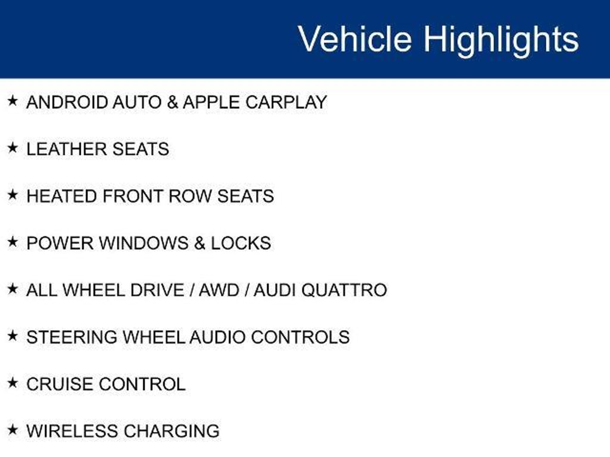 POWER MOONROOF / SUNROOF / POWER TILT SLIDING ROOF, VOICE ACTIVATED NAVIGATION, NAVIGATION / GPS / NAV, DYNAMIC RADAR CRUISE CONTROL / ADAPTIVE CRUISE CONTROL / SMART CRUISE CONTROL, LANE DEPARTURE WARNING, LANE DEPARTURE ALERT / LANE KEEPING ALERT, REARVIEW CAMERA / BACK UP CAMERA / REVERSE CAMERA, REAR VIEW CAMERA WDYNAMIC GUIDELINES, ANDROID AUTO & APPLE CARPLAY, LEATHER SEATS, HEATED FRONT ROW SEATS, POWER WINDOWS & LOCKS, ALL WHEEL DRIVE / AWD / AUDI QUATTRO, STEERING WHEEL AUDIO CONTROLS, CRUISE CONTROL, WIRELESS CHARGING, REMOTE START, PUSH-BUTTON START, BLUETOOTH AUDIO STREAMING, PADDLE SHIFTERS / COMMANDER SWITCH, HEATED STEERING WHEEL, DUAL ZONE A/C CONTROLS, BLUETOOTH, BACK UP SENSORS, AUTO HIGH BEAMS, 10 Speakers, 2 Rear USB Charge Ports, 4-Wheel Disc Brakes, ABS brakes, Air Conditioning, Alarm System w/Motion Sensor, Alloy wheels, AM/FM radio, Audi Advanced Key, Audi Connect NAV & PLUS, Audi Side Assist w/Pre Sense Rear, Audi Virtual Cockpit Plus, Auto-Dimming Exterior Mirrors w/Memory, Automatic temperature control, Bang & Olufsen Sound System w/3D Sound, Brake assist, Bumpers: body-color, Compass, Convenience Package, Driver Seat Memory, Exterior Parking Camera Rear, Four wheel independent suspension, Front Bucket Seats, Front Center Armrest, Front dual zone A/C, Front fog lights, Front reading lights, Heated front seats, Heated steering wheel, Leather Shift Knob, Leather steering wheel, Leather/Dinamica Seating Surfaces, Leatherette Covered Center Console & Door Armrests, Low tire pressure warning, MMI Navigation Plus, Navigation Package, Navigation System, Panic alarm, Passenger door bin, Power driver seat, Power Folding Exterior Mirrors, Power Liftgate, Power moonroof, Power steering, Power windows, Premium Plus Package, Radio data system, Radio: Audi Sound System, Rain sensing wipers, Rear air conditioning, Rear reading lights, Rear seat center armrest, Rear window defroster, Remote keyless entry, SiriusXM w/360L, Speed control, Speed-sensing steering, Speed-Sensitive Wipers, Split folding rear seat, Steering wheel mounted audio controls, Top View Camera System, Traction control, Traffic Sign Recognition, Variably intermittent wipers, Wheels: 19 5-Double-Arm Design Bi-Color Finish, Wireless Phone Charging Pad. 2024 Audi S5 Sportback Premium Plus quattro quattro Chronos Gray Metallic 3.0L TFSI
