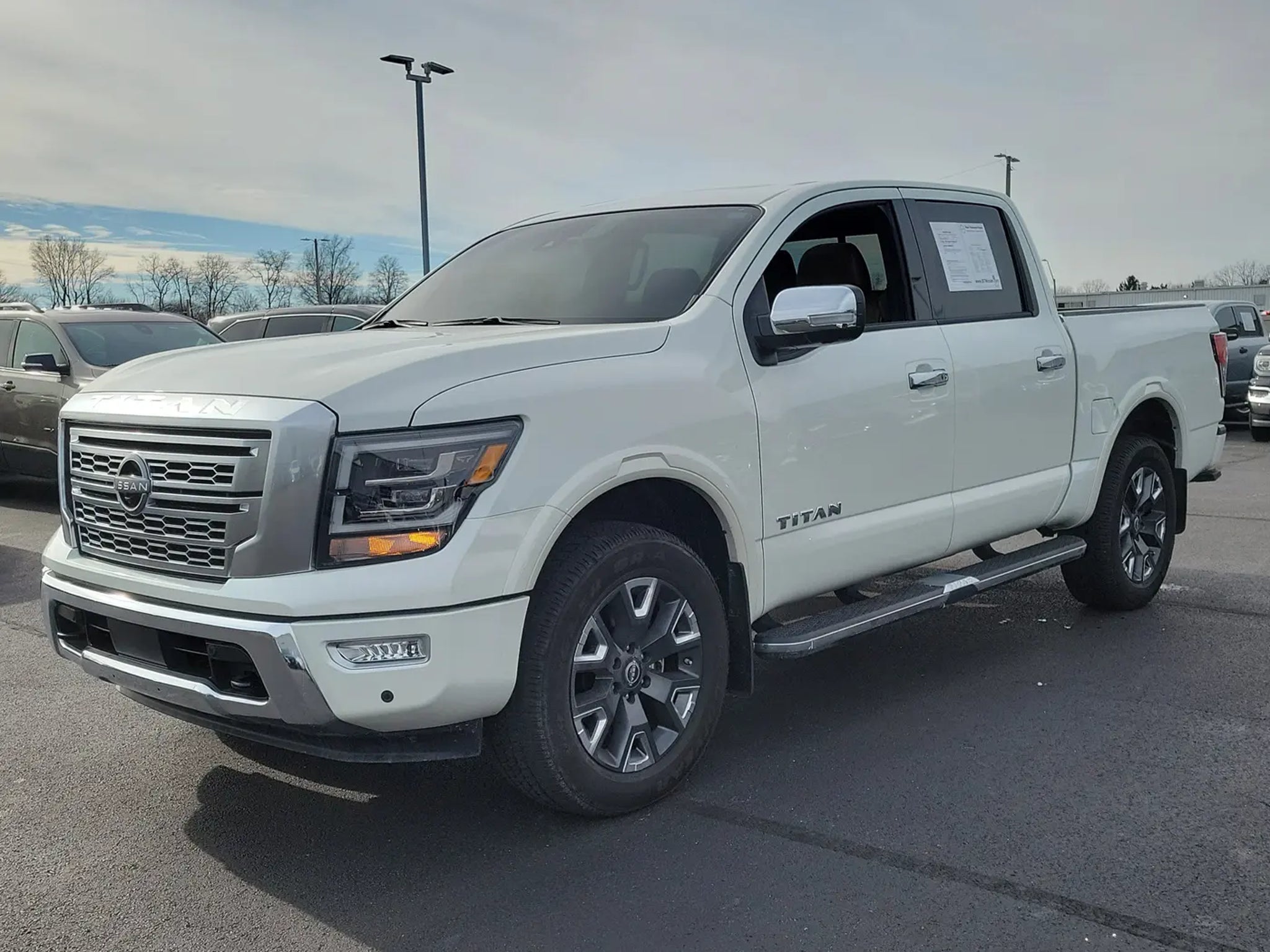 (Beau Townsend Nissan) is proud to present you with another True Market Priced Pre-Owned Vehicle. This 2024 Nissan Titan Platinum Reserve is loaded with the following Factory Options:Monotone Paint Package (Body Color Front Bumper, Body Color Overfenders, and Body Color Rear Bumper), Moonroof Package, Platinum Reserve Utility Package, Platinum Utility Package (TITAN Box), Nissan Certified, 4WD, 12 Speakers, 3.692 Axle Ratio, 4-Wheel Disc Brakes, ABS brakes, Air Conditioning, Alloy wheels, AM/FM radio: SiriusXM, Apple CarPlay/Android Auto, Auto High-beam Headlights, Auto tilt-away steering wheel, Auto-dimming door mirrors, Auto-dimming Rear-View mirror, Automatic temperature control, Bed Assist Grip, Blind Spot Warning, Brake assist, Chrome Running Boards, Compass, Delay-off headlights, Door Sill Kick Plates, Driver door bin, Driver vanity mirror, Dual front impact airbags, Dual front side impact airbags, Electronic Stability Control, Emergency communication system: NissanConnect Services, Front anti-roll bar, Front Bucket Seats, Front Center Armrest, Front dual zone A/C, Front fog lights, Front reading lights, Front wheel independent suspension, Fully automatic headlights, Garage door transmitter: HomeLink, Genuine wood dashboard insert, Genuine wood door panel insert, Heated & Cooled Front Captain's Seats, Heated door mirrors, Heated front seats, Heated rear seats, Heated steering wheel, Illuminated entry, Knee airbag, Leather Shift Knob, Leather steering wheel, Logo Light, Low tire pressure warning, Memory seat, Navigation system: NissanConnect with Navigation and Services, NissanConnect Services Powered By SiriusXM, Occupant sensing airbag, Outside temperature display, Overhead airbag, Overhead console, Panic alarm, Passenger door bin, Passenger vanity mirror, Platinum Illuminated Kick Plate, Platinum Reserve Mud Flaps, Power door mirrors, Power driver seat, Power passenger seat, Power steering, Power windows, Premium Leather-Appointed Seat Trim, Radio data system, Radio: NissanConnect w/Navigation, Rain sensing wipers, Rear anti-roll bar, Rear reading lights, Rear seat center armrest, Rear step bumper, Rear window defroster, Remote keyless entry, Security system, Speed control, Speed-sensing steering, Speed-Sensitive Wipers, Split folding rear seat, Steering wheel memory, Steering wheel mounted audio controls, Tachometer, Telescoping steering wheel, Tilt steering wheel, Traction control, Trip computer, Turn signal indicator mirrors, Variably intermittent wipers, Ventilated front seats, Voltmeter, and Wheels: 20 x 8 Dark Painted & Machined Clad. Certified. 4WD. Pearl White Metallic 2024 Nissan Titan Platinum Reserve 4WD 9-Speed Automatic 5.6L V8 DOHC 32V LEV3-ULEV70 400hp Odometer is 2087 miles below market average! Nissan Details: * 167 Point Inspection (for Nissan Certified program), 84 Point Inspection (for Certified Select program), 139 Point Inspection (for EV Certified program) * Transferable Warranty (for Nissan Certified program), Transferable Warranty (for Certified Select program) * Vehicle History (for Nissan Certified program) * Limited Warranty: 12 Month/12,000 Mile (whichever occurs first) (for Certified Select program), 84 Month/100,000 Mile (whichever occurs first) (for EV Certified program), 84 Month/100,000 Mile (whichever occurs first) (for Nissan Certified program) * Warranty Deductible: $100 (for Nissan Certified program), $100 (for Certified Select program) * 7 Year/100,000 Mile Limited Warranty, 24/7 Hour Roadside Assistance, Carfax Vehicle History Report, Plus 1 Year Pre-Paid Maintenance Included. Gas Powered Nissan Models Only. (for Nissan Certified program), 12-Months/12,000 Mile Limited Warranty, 24/7 Hour Roadside Assistance, Carfax Vehicle History Report, Plus 1 Complimentary Service Visit During the First Year of Ownership or First 15,000 Miles, Whichever Comes First. (for Certified Select program), 7-Year/100,000 Mile Limited Warranty, 1 Year P