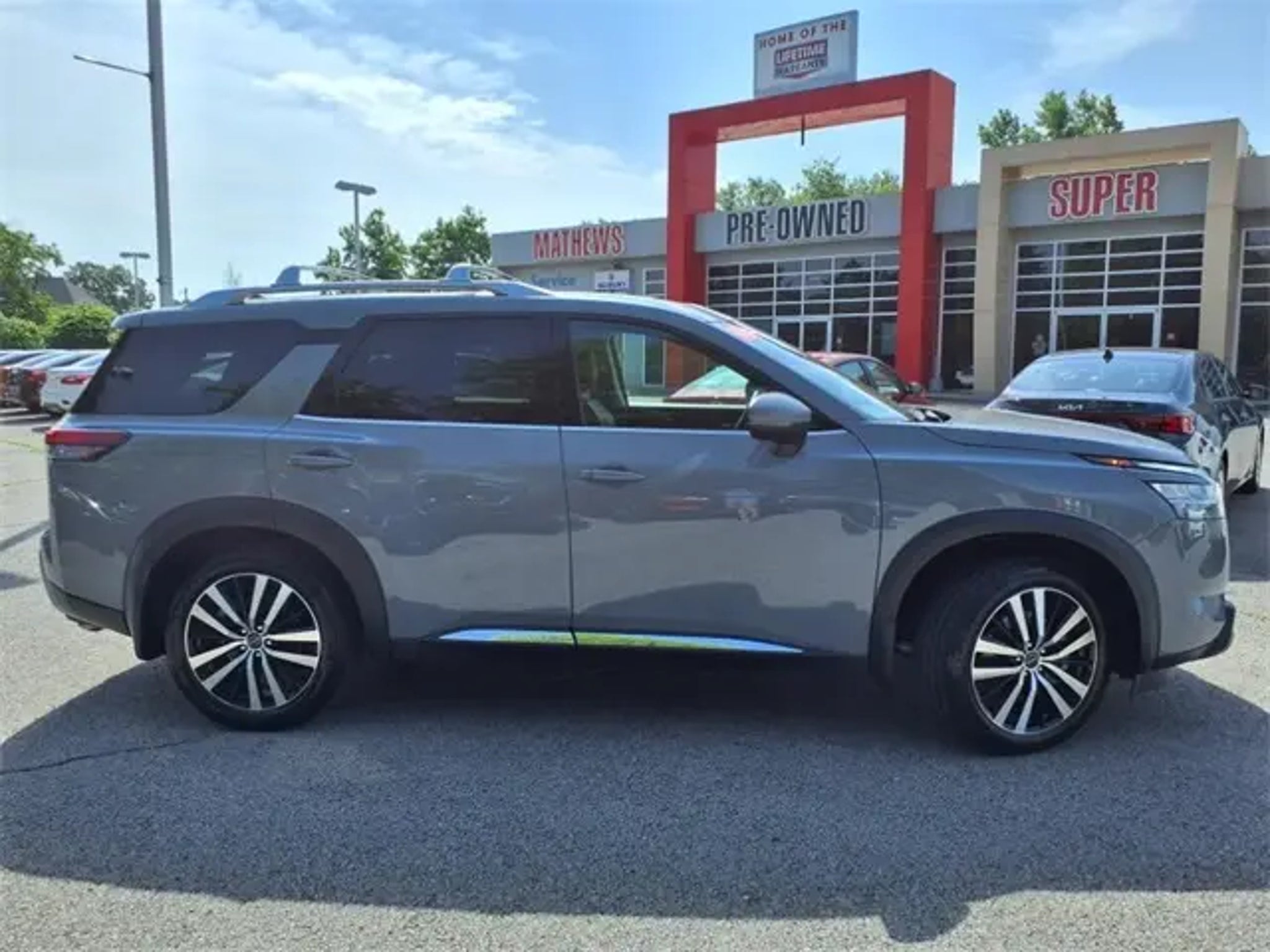 The 2024 Nissan Pathfinder comes equipped with the following Nissan Certified Certified, 4WD, Navigation system: NissanConnect with Navigation and Services, 13 Speakers, 3rd row seats: bench, 4-Wheel Disc Brakes, ABS brakes, Air Conditioning, Alloy wheels, AM/FM radio: SiriusXM, Auto High-beam Headlights, Auto tilt-away steering wheel, Auto-dimming Rear-View mirror, Automatic temperature control, Axle Ratio: 4.334, Bodyside moldings, Bose Premium Audio System, Brake assist, Bumpers: body-color, Cargo Area Protector, Cargo Net, Delay-off headlights, Driver door bin, Driver vanity mirror, Dual front impact airbags, Dual front side impact airbags, Electronic Stability Control, Emergency communication system, Exterior Parking Camera Rear, First Aid Kit, Four wheel independent suspension, Front anti-roll bar, Front Bucket Seats, Front Center Armrest, Front dual zone A/C, Front reading lights, Fully automatic headlights, Garage door transmitter: HomeLink, Heads-Up Display, Heated & Cooled Front Bucket Seats, Heated door mirrors, Heated front seats, Heated rear seats, Heated steering wheel, Illuminated entry, Knee airbag, Leather steering wheel, Low tire pressure warning, Memory seat, NissanConnect featuring Apple CarPlay and Android Auto, NissanConnect w/Navigation & Services, Occupant sensing airbag, Outside temperature display, Overhead airbag, Overhead console, Panic alarm, Passenger door bin, Passenger vanity mirror, Power door mirrors, Power driver seat, Power Liftgate, Power moonroof, Power passenger seat, Power steering, Power windows, Premium Paint - Pearl White Tricoat, Radio data system, Radio: AM/FM Audio System, Rain sensing wipers, Rear air conditioning, Rear anti-roll bar, Rear reading lights, Rear seat center armrest, Rear side impact airbag, Rear window defroster, Rear window wiper, Reclining 3rd row seat, Remote keyless entry, Security system, Semi-Aniline Leather-Appointed Seating Surfaces, Speed control, Speed-sensing steering, Speed-Sensitive Wipers, Split folding rear seat, Spoiler, Steering wheel memory, Steering wheel mounted audio controls, Tachometer, Telescoping steering wheel, Tilt steering wheel, Traction control, Trip computer, Turn signal indicator mirrors, Variably intermittent wipers, Ventilated front seats, and Wheels: 20 x 8J Machined Alloy. 2024 Nissan Pathfinder Navigation, Bluetooth, Sunroof/ Mooroof, Heated Seats, Cooled Seats, 3rd Row Seat, Backup Camera, Power Driver Seat, Extended Warranty Available, Remote Start, Rear View Camera, Satellite Radio/ XM, Push Button Start, Leather Seats, 4WD, Local Trade, All Maintenance Up To Date, ONE OWNER, 4WD, Navigation system: NissanConnect with Navigation and Services. Clean CARFAX. CARFAX One-Owner. Certified. Boulder Gray 2024 Nissan Pathfinder Platinum 4WD 9-Speed Automatic 3.5L V6 DOHC Odometer is 3594 miles below market average! Priced below KBB Fair Purchase Price! Nissan Certified Details: * Limited Warranty: 84 Month/100,000 Mile (whichever occurs first) * 7 Year/100,000 Mile Limited Warranty, 24/7 Hour Roadside Assistance, Carfax Vehicle History Report, Plus 1 Year Pre-Paid Maintenance Included. Gas Powered Nissan Models Only. * Warranty Deductible: $100 * Transferable Warranty * 167 Point Inspection * Roadside Assistance * Vehicle History Call us today to schedule your VIP test drive!