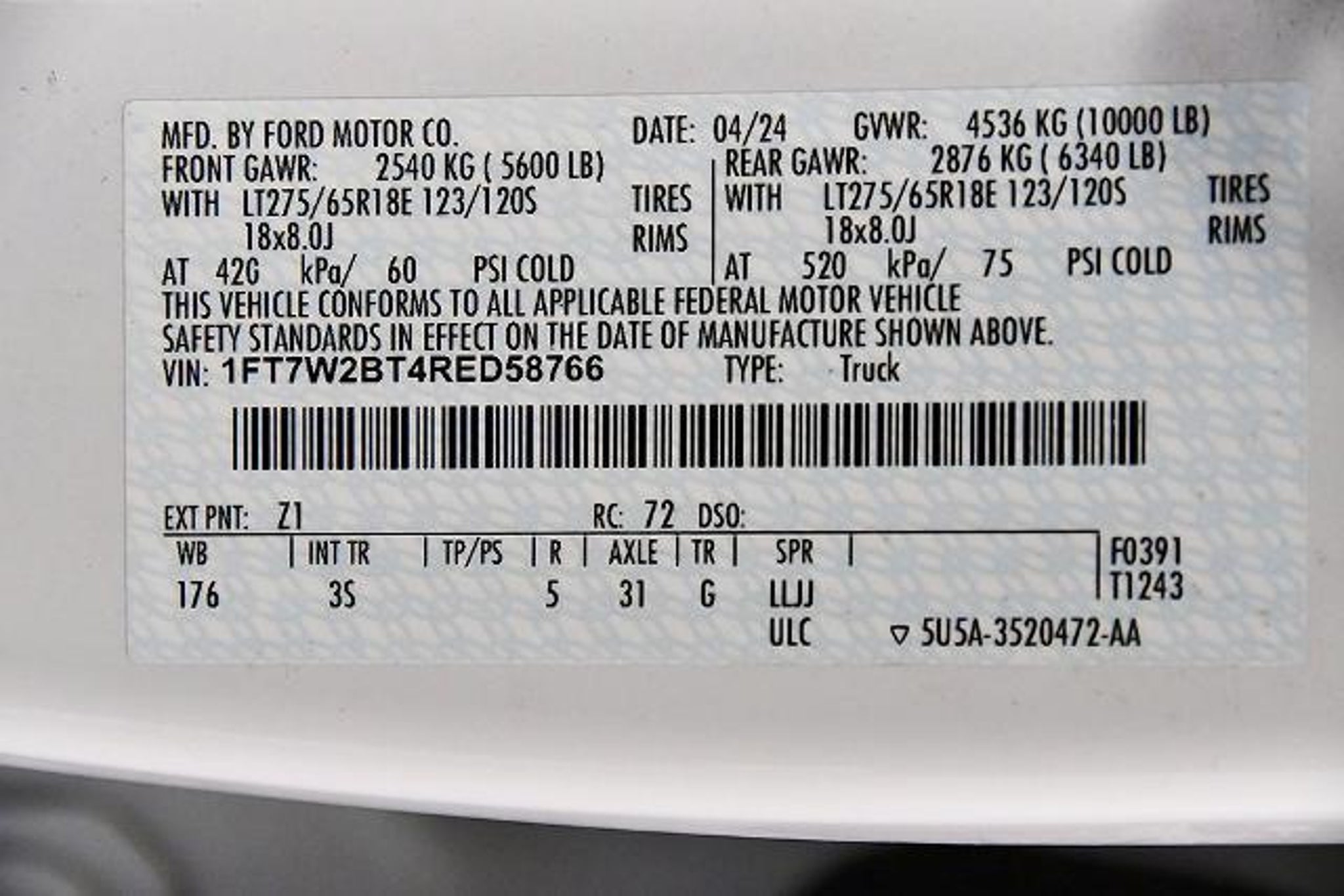 Details > 2024 Ford F-250 Super Duty 4X4 XLT 4DR Crew Cab 6.8 FT. SB Pickup For Sale in Medina, NY Private Party Sellers Click here to place your ad now! You auta tell them you saw the ad in AutaBuy when you call or email. 1/33 2/33 3/33 4/33 5/33 6/33 7/33 8/33 9/33 10/33 11/33 12/33 13/33 14/33 15/33 16/33 17/33 18/33 19/33 20/33 21/33 22/33 23/33 24/33 25/33 26/33 27/33 28/33 29/33 30/33 31/33 32/33 33/33 View 33 Photos View All Add to My Garage Parked in Your Garage! Orleans Ford Contact Seller: I would like to: Make Offer Check Availability Ask A Question Request More Photos Check Financing Options Send a copy of this message to me Add this listing to my garage Send to Mobile Mileage 61,816 Exterior Color White Doors 4 Engine 6.7L V8 Transmission 10 Speed Auto Stock # W1275 VIN 1FT7W2BT4RED58766 Estimated Monthly Payment $870 mo Apply Now J.J. Best Banc & Co. 2024 Ford F-250 Super Duty 4X4 XLT 4DR Crew Cab 6.8 FT. SB Pickup Description: Recent Arrival! CARFAX One-Owner. Oxford White 2024 Ford F-250SD XLT 4WD 10-Speed Automatic This 2024 Ford F-250SD XLT in Oxford White features: 3.31 Axle Ratio, GVWR: 10,000 lb Payload Package, Wheels: 18 Sparkle Silver Painted Cast Aluminum. · Mileage: 61,816 · Color: White Price: $50,000. Mileage 61,816 Exterior Color White Doors 4 Engine 6.7L V8 Transmission 10 Speed Auto Stock # W1275 VIN 1FT7W2BT4RED58766 Estimated Monthly Payment $870 mo Apply Now J.J. Best Banc & Co. Add to My Garage Parked in Your Garage! Message Seller Orleans Ford Contact Seller: I would like to: Make Offer Check Availability Ask A Question Request More Photos Check Financing Options Send a copy of this message to me Add this listing to my garage Offered for sale by Orleans Ford MEDINA, NY Price: $50,000. Offered for sale by Orleans Ford MEDINA, NY [entire inventory] Ask Auta Intelligence The first collector-car AI built directly into a classic car marketplace Tell me the history on this model What does this VIN number tell me? What transmission options did these offer? What trim levels were available for this model? How many of these were produced? What engine options did these come with? What kind of mileage do these get? What size tires does this run from the factory? Where is this located? How easy are parts to find for this model? Can you show me more pickups/trucks for a similar price? What factory options were available on this model? What's the typical towing capacity in this configuration? What colors did these come in? How far is this from me? When was this model first introduced? How many F-250 Super Dutys were produced in White? Do you have a similar car to sell? List It Now! Questions about this car? Ask Auta Intelligence for production numbers, available options, etc. · Subscribe to AutaBuy! · Send a Gift Subscription Notice to a Friend