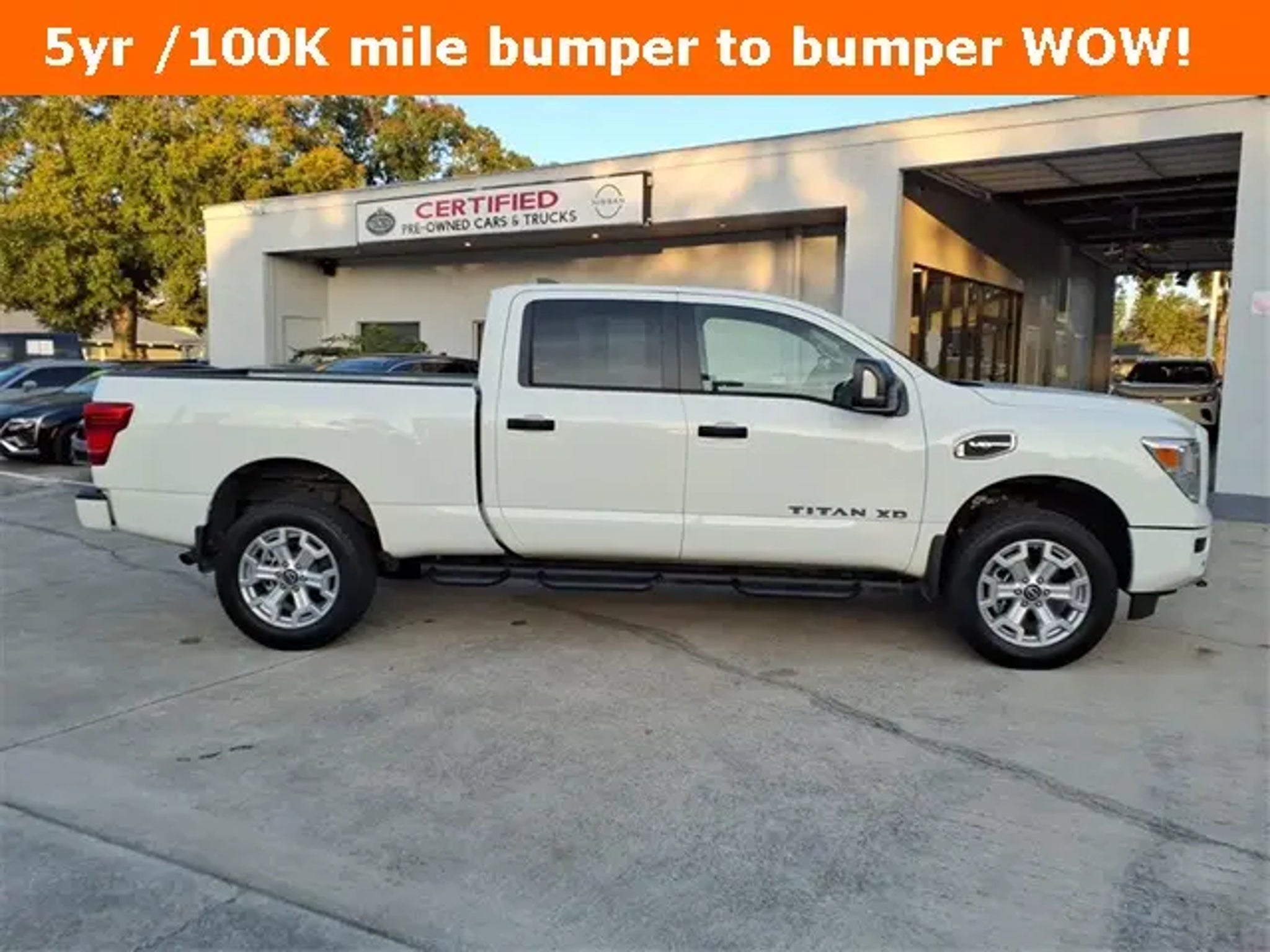 2024 Nissan Titan XD SV ***Glacier White***Factory 5 year /100k miles bumper to bumper warranty -BEST in the business peace of mind!! **Powerful v-8 gas 5.6L / 400hp 9-Speed Automatic 4WD** 1/3 ton towing and hauling crew cab with longbed and tow package** HARD TO FIND Our Nissan, factory trained, Master technician perform a 167 point inspection and completed routine maintenance. Serving the central Florida area since 1971 and continuing a wonderful history with our new and long time customers, today. We are conveniently located in Titusville, FL just 35 minutes from Orlando Int'l airport, off I-95 exit 220. East 2.7M to US1, turn right on US1- to 1128 S Hopkins Ave Titusville, FL 32780. SV Convenience Package (120V/12V Outlets In Back Of Center Console, 2 Illuminated USB-A Ports In Back Of Center Console, 20 Painted Alloy Wheels, Auto Dual Zone HVAC, Auto-Dimming Rear-View Mirror, Dedicated Configurable Cell Phone Holder, Dual Illuminated Vanity Mirrors, Front & Rear Parking Sensors, Gooseneck Hitch, Heated Front Captain's Chairs, Intelligent Key System, Leather-Wrapped Steering Wheel, LED Mood Light, NissanConnect Services, Overhead Console w/Sunglass Holder, Power Sliding Rear Window w/Defogger, Proximity Activation, Rear HVAC Vents, and Wi-Fi Hotspot), 17 x 7.5 Styled Steel Wheels, 4-Wheel Disc Brakes, 4.083 Axle Ratio, 6 Speakers, ABS brakes, Air Conditioning, AM/FM radio: SiriusXM, Auto High-beam Headlights, Blind Spot Warning, Brake assist, Bumpers: chrome, Carpet Floor Mats, Cloth Seat Trim, Driver door bin, Dual front impact airbags, Dual front side impact airbags, Electronic Stability Control, Front anti-roll bar, Front Center Armrest w/Storage, Front Manual Split Bench Seat (40/20/40), Front reading lights, Front wheel independent suspension, Fully automatic headlights, Heated door mirrors, Illuminated entry, Knee airbag, Loop Side Steps, Low tire pressure warning, NissanConnect featuring Apple CarPlay and Android Auto, Occupant sensing airbag, Outside temperature display, Overhead airbag, Overhead console, Panic alarm, Passenger door bin, Passenger vanity mirror, Power door mirrors, Power steering, Power windows, Radio data system, Radio: NissanConnect AM/FM, Rear anti-roll bar, Rear Parking Sensors, Rear seat center armrest, Rear step bumper, Rear window defroster, Remote keyless entry, Security system, Speed control, Speed-sensing steering, Speed-Sensitive Wipers, Splash Guards, Split folding rear seat, Steering wheel mounted audio controls, Tachometer, Telescoping steering wheel, Tilt steering wheel, Traction control, Turn signal indicator mirrors, Variably intermittent wipers, and Voltmeter.