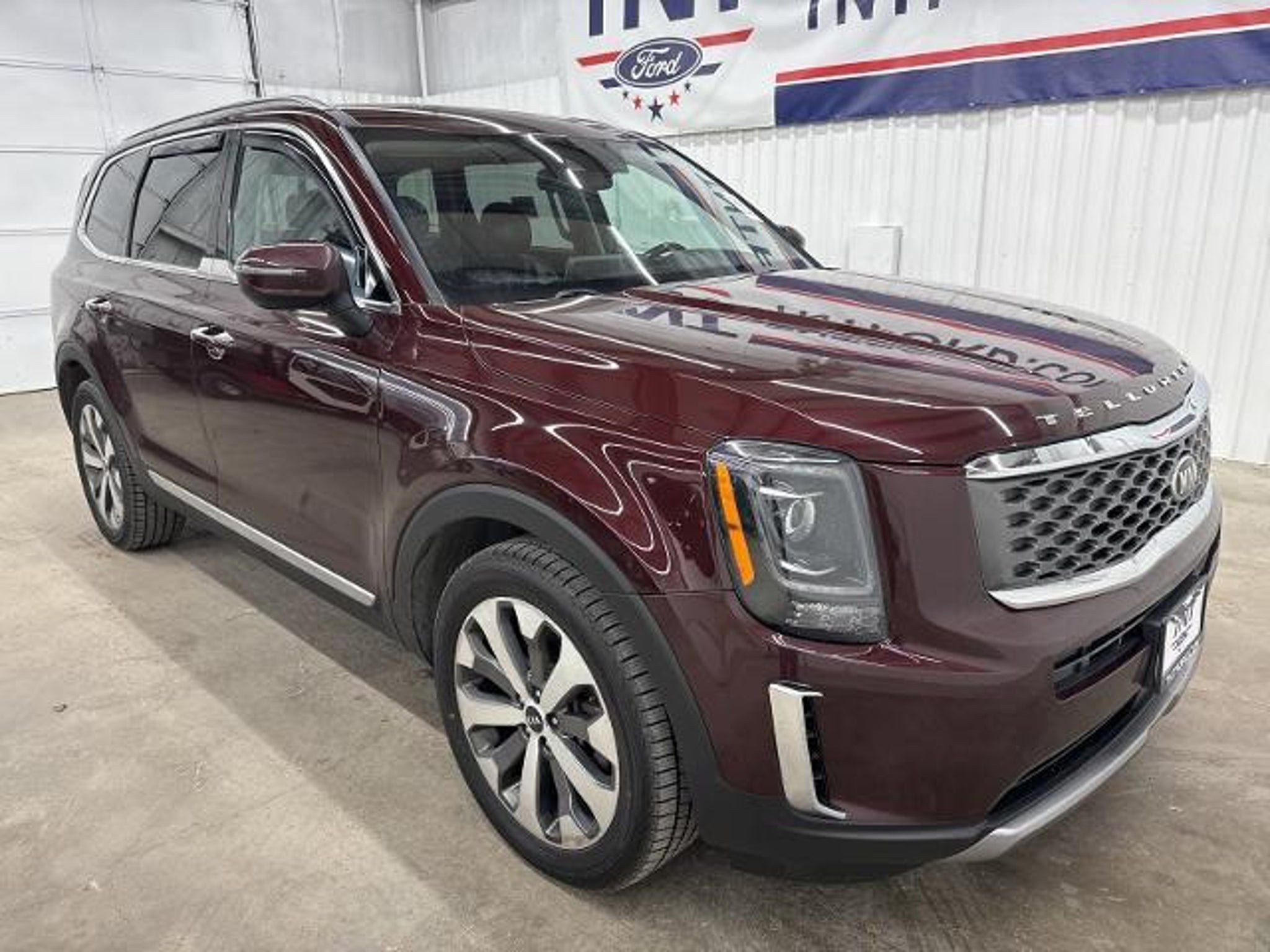 Our One Owner 2020 Kia Telluride S AWD is a fantastic family fun machine in Sangria! Powered by a 3.8 Liter V6 that delivers 291hp matched to an 8 Speed Automatic transmission for modern performance and capability. This All Wheel Drive SUV has a sure-footed ride for when the going gets tough, and it also scores nearly 24mpg on the highway. Designed with guts and grace, our Telluride turns heads with LED lighting, a power sunroof, aggressive 20-inch alloy wheels, dual exhaust outlets, black fender moldings/side sills, and a silver-painted skid plate with matching roof rails. Prepare to get pampered in our S cabin. It features luxurious heated Sofino front seats with eight-way power for the driver, second-row captain's chairs, a leather-wrapped steering wheel, air conditioning, pushbutton ignition, keyless access, and plenty of cargo space. Enjoy on-demand digital convenience with an 8-inch touchscreen, Android Auto, Apple CarPlay, Bluetooth, voice recognition, and premium audio. To protect you and your loved ones, Kia combines robust Iso-Structure construction with smart Drive Wise safety systems, including adaptive cruise control, blind-spot monitoring, backup camera, automatic braking, forward-collision warning, lane-keeping assistance, a driver attention monitor, and more. Our Telluride S tells the world you're driving with style and confidence! Save this Page and Call for Availability. We Know You Will Enjoy Your TNT Ford Test Drive Towards Ownership! This Vehicle Has Been Fully Serviced and Safety Inspected By Our Factory Trained Service Technicians! We Have Many Financing Options available with your approved credit, plus we offer complimentary vehicle delivery within 100 miles of our store. Buying a car should be a fun, worry-free experience. Our new management offers upfront pricing, a relaxed, low-pressure environment, and friendly sales staff to help you with the buying process. A different way to buy a car - TNT Ford.