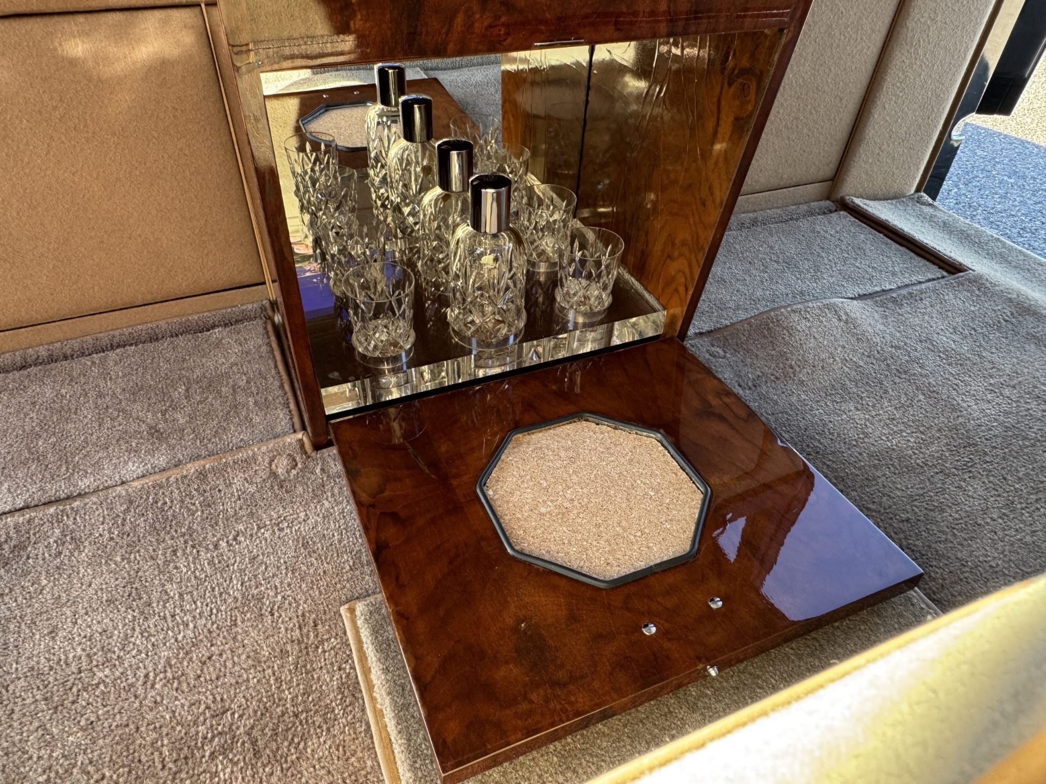 This 1960 Rolls-Royce Phantom V James Young Touring Limousine is a rare US delivery LHD example that has benefitted from a $100,000 mechanical and cosmetic restoration that was completed in January 2026. This Phantom V was specifically built as the 1959 Earls Court Show Car for James Young Ltd, ensuring that it is well optioned and received their top attention to detail. James Young Design No. PV22 is considered one of the most gorgeous designs on a Phantom V, with its beautifully sculpted and curvaceous lines. These are rarely found as a rust free, air conditioned US delivered car from new. Chassis 5LAS11 was ordered new through J.S. Inskip of NY through Jack Barclay, Ltd by Major-General Robert K Robertson for his home on Manhattan, NY. The Major-General agreed for the Phantom V to be used by James Young for the Earls Court Show as a pre-condition to its purchase. The Phantom was delivered on June 10, 1960, and was retained by him until his passing. The next documented owner was Garland Shell of Monroe, Louisiana, who acquired 5LAS11 on July, 21, 1978 and retained it for the next 24 years. Mr. Shell had a successful advertising firm and was a member of the RROC. The Phantom V was then part of a large Rolls-Royce collection until acquired by Harry Clark and Classic Promenade in 2023. Mr. Clark, through the specialists at Classic Promenade, invested over $100,000 in a comprehensive sympathetic cosmetic and mechanical restoration, keeping as much originality as possible. The results are a gorgeous James Young Phantom V that can be shown at almost any concours event, or enjoyed on tours as well as for personal use. The livery is formal and stately in its original Black paint with complementary tan pinstripes. The paint is about one-third original and two-thirds repainted and the shine and luster are excellent. The stainless steel and chrome trim are overall in excellent condition. The Lucas driving lights and rear mounted color matched TV antenna accessorizes the Phantoms stunning exterior. The Rolls originally was ordered with white walled tires and is presently fitted with blackwalled bias ply tires. The next owner can decide to update it with radials, add whitewall tires or keep it as it is. The interior is in overall beautiful condition. All of the burl walnut trim has been painstakingly restored to showroom condition. The chauffers compartment is finished in Black leather that is very soft and supple with normal creases with age. The stereo has been updated with a more modern system. The rear passenger compartment is all original tan wool broadcloth with complementary tan leather piping. The upholstery is in excellent original condition with no soiling. The two rear facing jump seats allow for a total of seven passengers. The tan Wilton wool carpeting is also in very nice condition. The center mirrored cocktail cabinet contains an original crystal decanter and two crystal glasses. Above the cocktail cabinet is a separate compartment holding the Television. Twin reading lamps, twin vanities and a Seth clock complete the amenities. James Young coachbuilt Rolls-Royces always exhibit the most extraordinary book matched burlwood finishes. This example, being built for their Earls Court exhibition, is just gorgeous. The engine compartment and chassis have been detailed and painted as needed. Great care was invested into making this a wonderful driving Rolls-Royce. The 145-inch wheelbase make for a wonderfully smooth ride, while the venerable 6.23 liter V8 is quiet and powerful. This Phantom V comes complete with extensive factory records, ownership history, an Owners Handbook, large and small tools, jack and spare wheel. Also included in the sale are the extensive restoration receipts. For more information and details, please call or text Kendi Brown at 1.623.404.9042 or email us at sales@classicpromenade.com . This 1960 Rolls-Royce Phantom V Limousine by James Young is available for inspection at our showroom in Phoenix. We are pleased to offer FaceTime or WhatsApp live video inspections, and we help coordinate shipping worldwide. We also have financing partners if you are interested in financing.