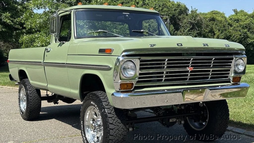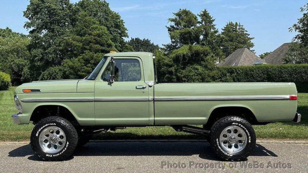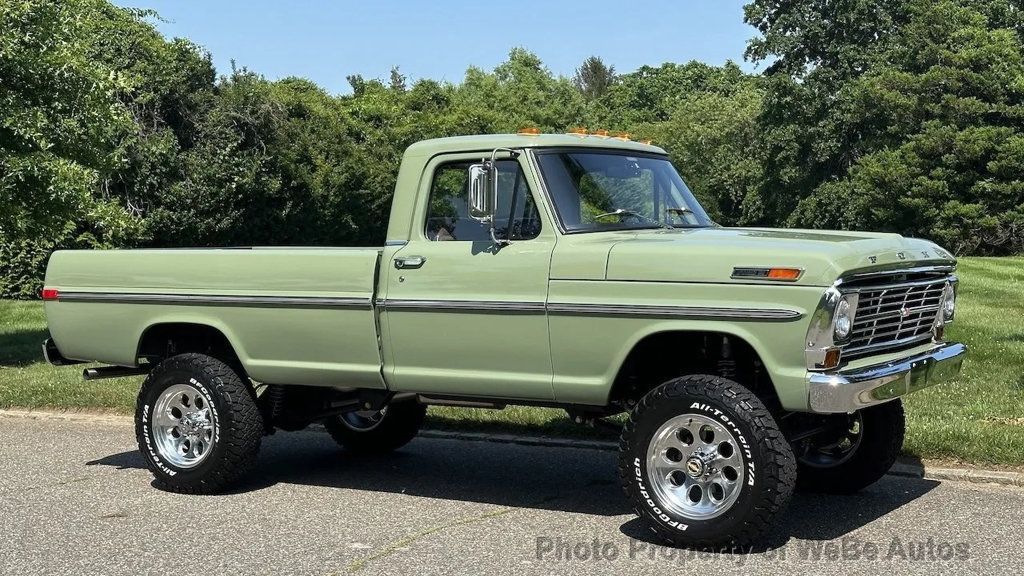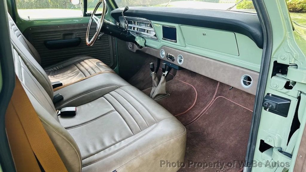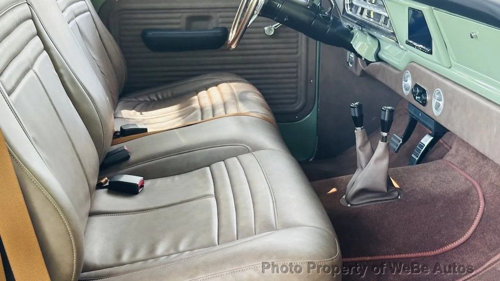 1972 Ford F-250 Highboy 4x4 pickup by Velocity Recreations For Sale The Boxwood Green body is affixed to a Roadster Shop chassis with Dana axles and an Atlas twin-stick transfer case. It is powered by a Coyote 5.0-liter V8 paired to a 10-speed automatic transmission. Truck has Fox Racing coilovers and bullet-style Mickey Thompson/Pacer wheels with 33? BFGoodrich tires. The cabin is outfitted with Vintage Air climate control, custom instrumentation, an Alpine head unit, high-performance audio components, a rearview camera display, and distressed tan marine-grade vinyl upholstery. Additional details include hydro boosted Wilwood disc brakes, 4.55:1 gears, chrome beltline trim, custom headers, and power-retractable side steps. $304,000 MSRP F-250-Style Build Roadster Shop Chassis 1,178 Miles Since Build Completion 5.0-Liter Coyote V8 10-Speed 10R80 Overdrive Automatic Transmission Atlas Twin-Stick Transfer Case Dana Axles with 4.55:1 Gears Boxwood Green Paint Tan Vinyl Upholstery Classic Bullet-Style Mickey Thompson/Pacer Wheels Fox Racing Coilovers Wilwood Disc Brakes Power-Retractable Side Steps Vintage Air Climate Control Alpine Head Unit Performance Audio Components Rearview Camera Build Sheet Located in Southampton, NY 11968 WeBe Autos Specializes in Marketing and Advertising Muscle, Classic, Vintage and Specialty Cars. We offer Professional Photography, HD Movies, and Staging that Sells Cars. Let us showcase and sell your specialty car. Please visit our website for more details. Keep in Touch, Michael Runnalls Specialty Car Marketing & Media WeBe Autos Ltd. Long Island, NY 11780 Michael@WeBeAutos.com www.WeBeAutos.com (O)631-339-0399 (C)516-729-2003 Skype: webeautos (F)631-389-2605 - - Four Wheel Drive - Contact Michael Runnalls at 631-339-0399 or Michael@WeBeAutos.com for more information. -