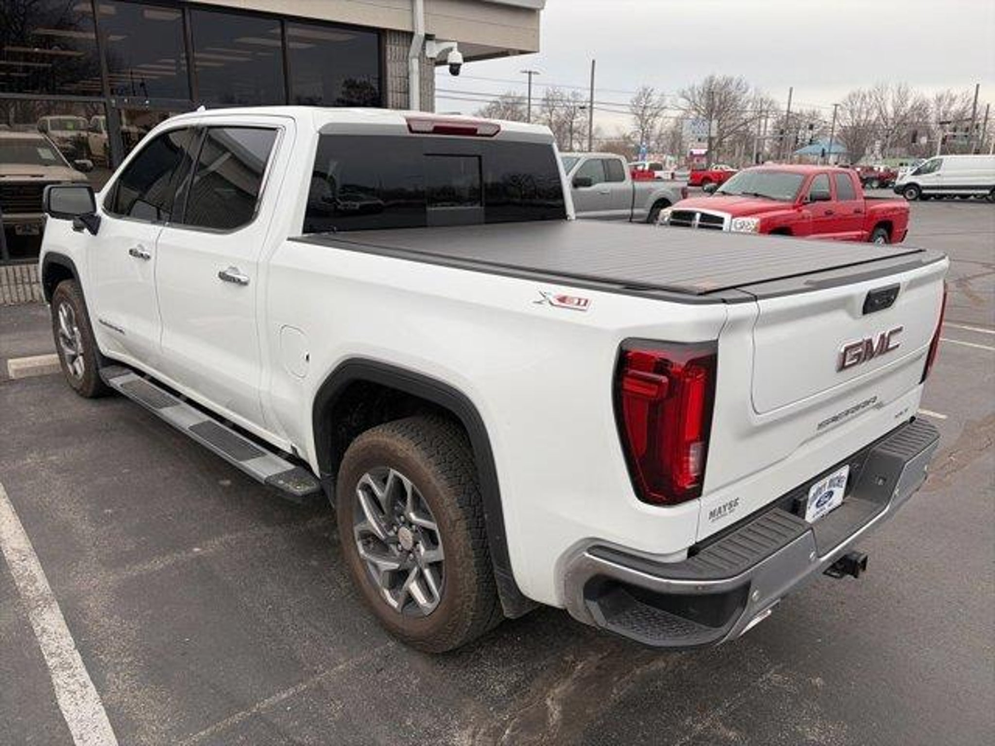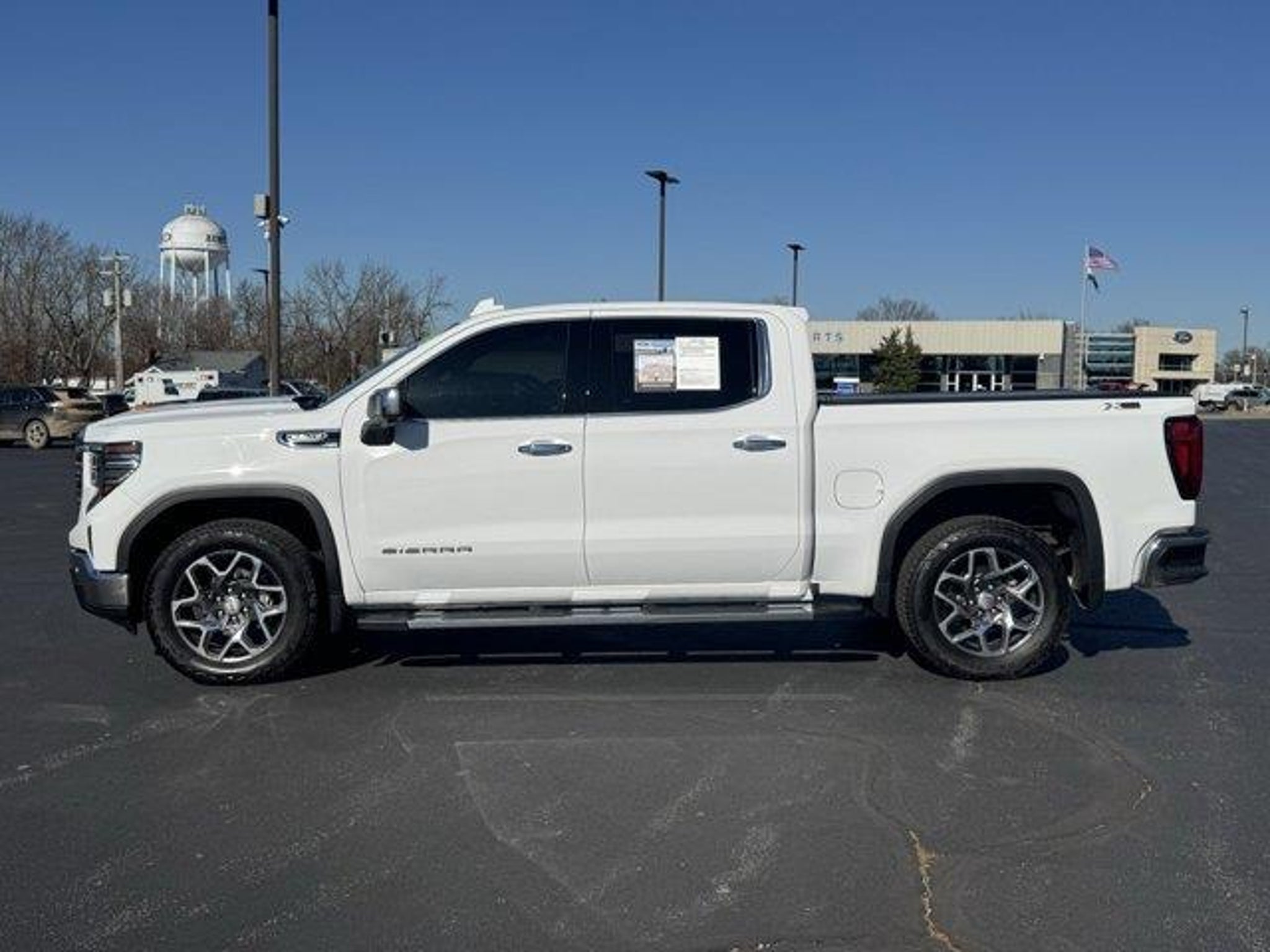 2025 GMC Sierra 1500 SLT 4D Crew Cab 10-Speed Automatic, 4WD, Black Leather, 10-Way Power Driver Seat Adjuster w/Lumbar, 10-Way Power Passenger Seat Adjuster w/Lumbar, 120-Volt Bed Mounted Power Outlet, 120-Volt Interior Power Outlet, 170 Amp Alternator, 2 Charge/Data USB Ports, 2 Charge/Data USB Ports Inside Center Console, 2 Type-C Charge-Only Rear USB Ports, 20 Polished Aluminum Wheels, 3.23 Rear Axle Ratio, 4-Wheel Disc Brakes, 6 Speakers, 6-Speaker Audio System Feature, ABS brakes, Adaptive Cruise Control, Air Conditioning, All-Weather Floor Liner (LPO), Alloy wheels, AM/FM radio: SiriusXM with 360L, Apple CarPlay/Android Auto, Auto High-beam Headlights, Auto-dimming door mirrors, Auto-dimming Rear-View mirror, Auto-Locking Rear Differential, Automatic Emergency Braking, Automatic temperature control, Auxiliary External Transmission Oil Cooler, Brake assist, Buckle to Drive, Bumpers: chrome, Chrome Header & Chrome Grille Insert Bars, Chrome Wheel To Wheel Assist Steps, Color-Keyed Carpeting Floor Covering, Compass, Deep-Tinted Glass, Delay-off headlights, Driver door bin, Driver Memory, Driver vanity mirror, Dual Exhaust System, Dual front impact airbags, Dual front side impact airbags, Electric Rear-Window Defogger, Electronic Precision Shift, Electronic Stability Control, Emergency communication system: OnStar, Floor-Mounted Center Console, Following Distance Indicator, Forward Collision Alert, Front 40/20/40 Split-Bench Seat, Front anti-roll bar, Front Bucket Seats, Front Center Armrest w/Storage, Front dual zone A/C, Front fog lights, Front Frame-Mounted Black Recovery Hooks, Front License Plate Kit, Front Pedestrian Braking, Front Rain-Sensing Wipers, Front reading lights, Front wheel independent suspension, Fully automatic headlights, HD Rear Vision Camera, HD Surround Vision, Heated 2nd Row Outboard Seats, Heated door mirrors, Heated Driver & Front Outboard Passenger Seating, Heated front seats, Heated steering wheel, Heavy-Duty Air Filter, High Capacity Suspension Package, Hill Descent Control, Hitch Guidance, Hitch View, Illuminated entry, In-Vehicle Trailering System App, Integrated Trailer Brake Controller, IntelliBeam Automatic High Beam On/Off, Keyless Open & Start, Lane Keep Assist w/Lane Departure Warning, LED Cargo Area Lighting, Low tire pressure warning, Manual Tilt-Wheel & Telescoping Steering Column, Memory seat, Navigation System, Occupant sensing airbag, Off-Road Suspension, OnStar Services Capable, Outside temperature display, Overhead airbag, Overhead console, Panic alarm, Pas