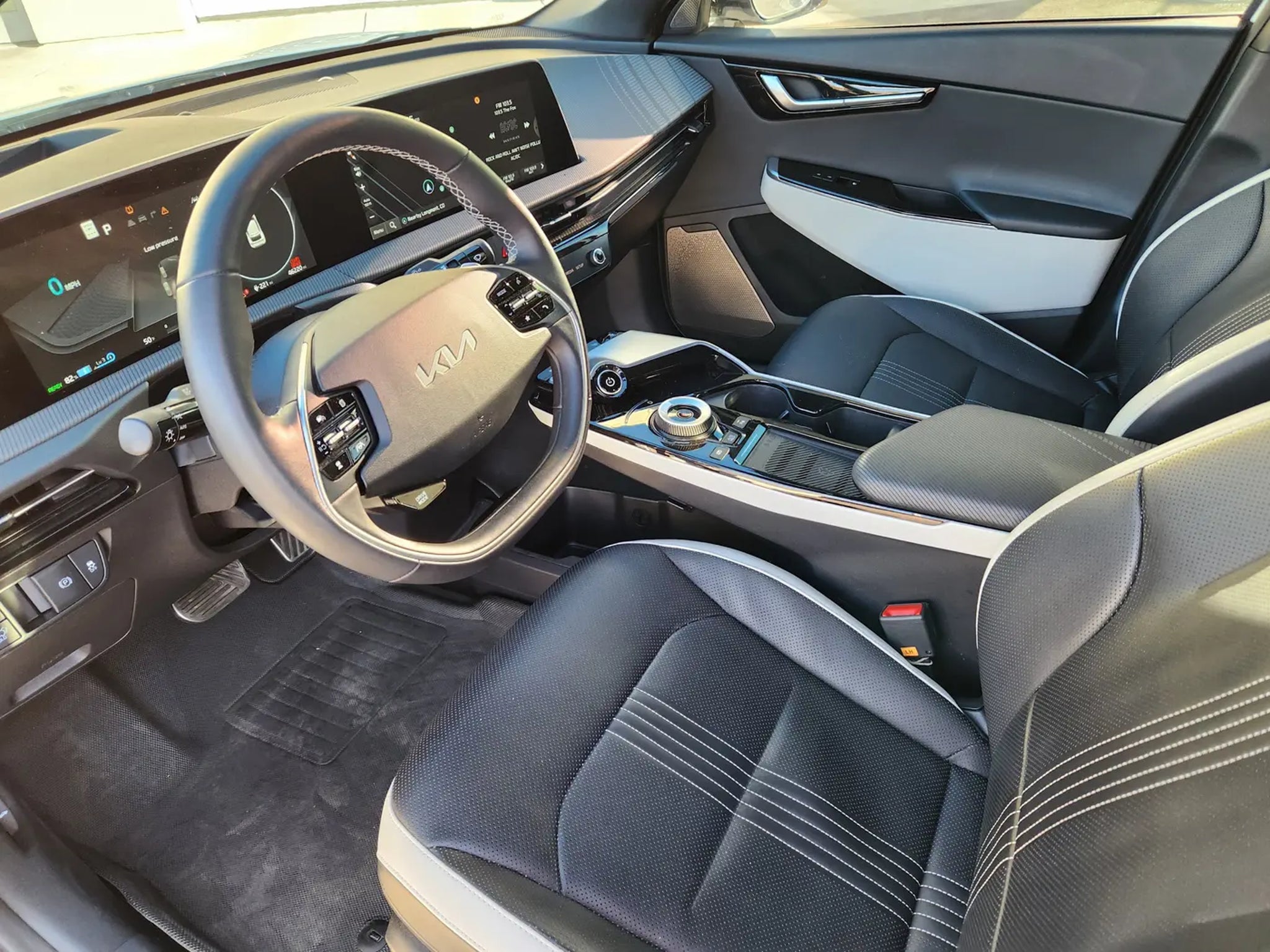 RECALL NOTICE: Some vehicles offered for sale may be subject to unrepaired manufacturer safety recalls. To determine the recall status of a vehicle, visit https:// Kia EV6 GT-Line Snow White Pearl 1-Speed Automatic Electric Motor Clean CARFAX. AWD, REAR BACK UP CAMERA, SUNROOF/MOONROOF, REMOTE START, LEATHER, HEATED SEATS, APPLE I-PLAY/ANDROID AUTO EQUIPPED! Have a smart phone? you have navigation!!!, CARFAX CERTIFIED!!!, 14 Speakers, Air Conditioning, Apple CarPlay & Android Auto, Auto High-beam Headlights, Auto-dimming Rear-View mirror, Brake assist, Driver door bin, Driver vanity mirror, Front dual zone A/C, Front reading lights, Garage door transmitter: HomeLink, Heads-Up Display, Heated door mirrors, Heated front seats, Heated rear seats, Heated steering wheel, Illuminated entry, Memory seat, Navigation system: AVN 5.0 Navigation System, Outside temperature display, Overhead console, Panic alarm, Passenger door bin, Passenger vanity mirror, Power door mirrors, Power driver seat, Power Liftgate, Power moonroof, Power steering, Power windows, Radio: Meridian Premium Audio System, Rear seat center armrest, Remote keyless entry, Security system, Spoiler, Sport steering wheel, Steering wheel mounted audio controls, Telescoping steering wheel, Tilt steering wheel, Trip computer, Variably intermittent wipers, Ventilated front seats, Wheels: 8.0J x 20 Black Painted Alloy. 14 Speakers, Air Conditioning, Apple CarPlay & Android Auto, Auto High-beam Headlights, Auto-dimming Rear-View mirror, Brake assist, Driver door bin, Driver vanity mirror, Front dual zone A/C, Front reading lights, Garage door transmitter: HomeLink, Heads-Up Display, Heated door mirrors, Heated front seats, Heated rear seats, Heated steering wheel, Illuminated entry, Memory seat, Navigation system: AVN 5.0 Navigation System, Outside temperature display, Overhead console, Panic alarm, Passenger door bin, Passenger vanity mirror, Power door mirrors, Power driver seat, Power Liftgate, Power moonroof, Power steering, Power windows, Radio: Meridian Premium Audio System, Rear seat center armrest, Remote keyless entry, Security system, Spoiler, Sport steering wheel, Steering wheel mounted audio controls, Telescoping steering wheel, Tilt steering wheel, Trip computer, Variably intermittent wipers, Ventilated front seats, Wheels: 8.0J x 20 Black Painted Alloy, 4-Wheel Disc Brakes, ABS brakes, Alloy wheels, AM/FM radio: SiriusXM, Automatic temperature control, Axle Ratio: 10.650, Bumpers: body-color, Delay-off headlights, Dual front impact airbags, Dual front side impact airbags, Electronic Stability Control, Emergency communication system, Floor Cargo Net, Four wheel independent suspension, Front anti-roll bar, Front Bucket Seats, Front Center Armrest, Fully automatic headlights, Heated & Ventilated Front Bucket Seats, Knee airbag, Low tire pressure warning, Occupant sensing airbag, Overhead airbag, Power passenger seat, Rain sensing wipers, Rear anti-roll bar, Rear window defroster, Speed control, Speed-sensing steering, Split folding rear seat, Traction control, Turn signal indicator mirrors, and Vegan Leather Seat Trim.CARFAX One-Owner.We're located in Longmont CO, but also serving the greater Denver area, including, Boulder, Loveland, Greeley, Ft. Collins, Cheyenne, Broomfield, and Northern CO. Please call .
