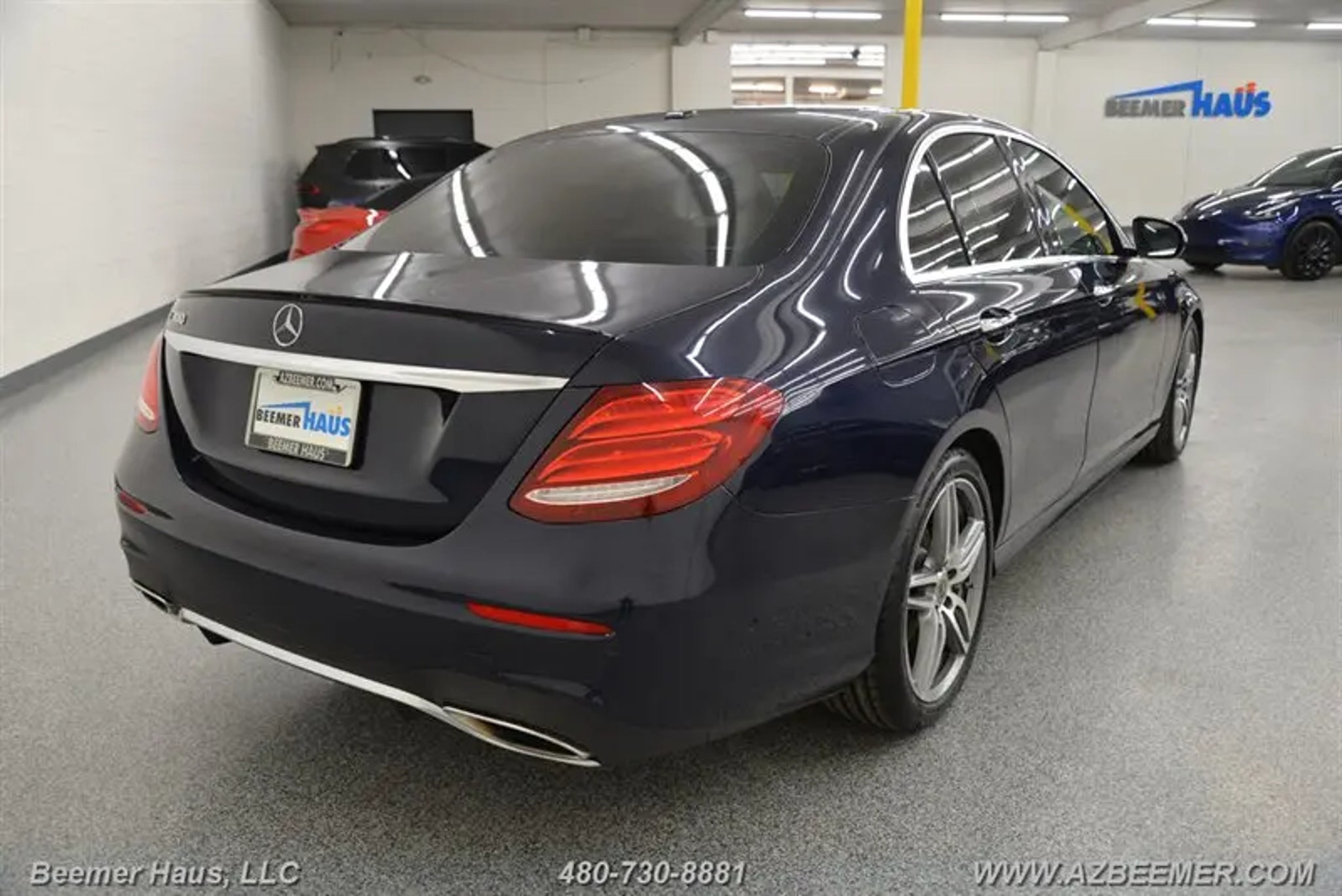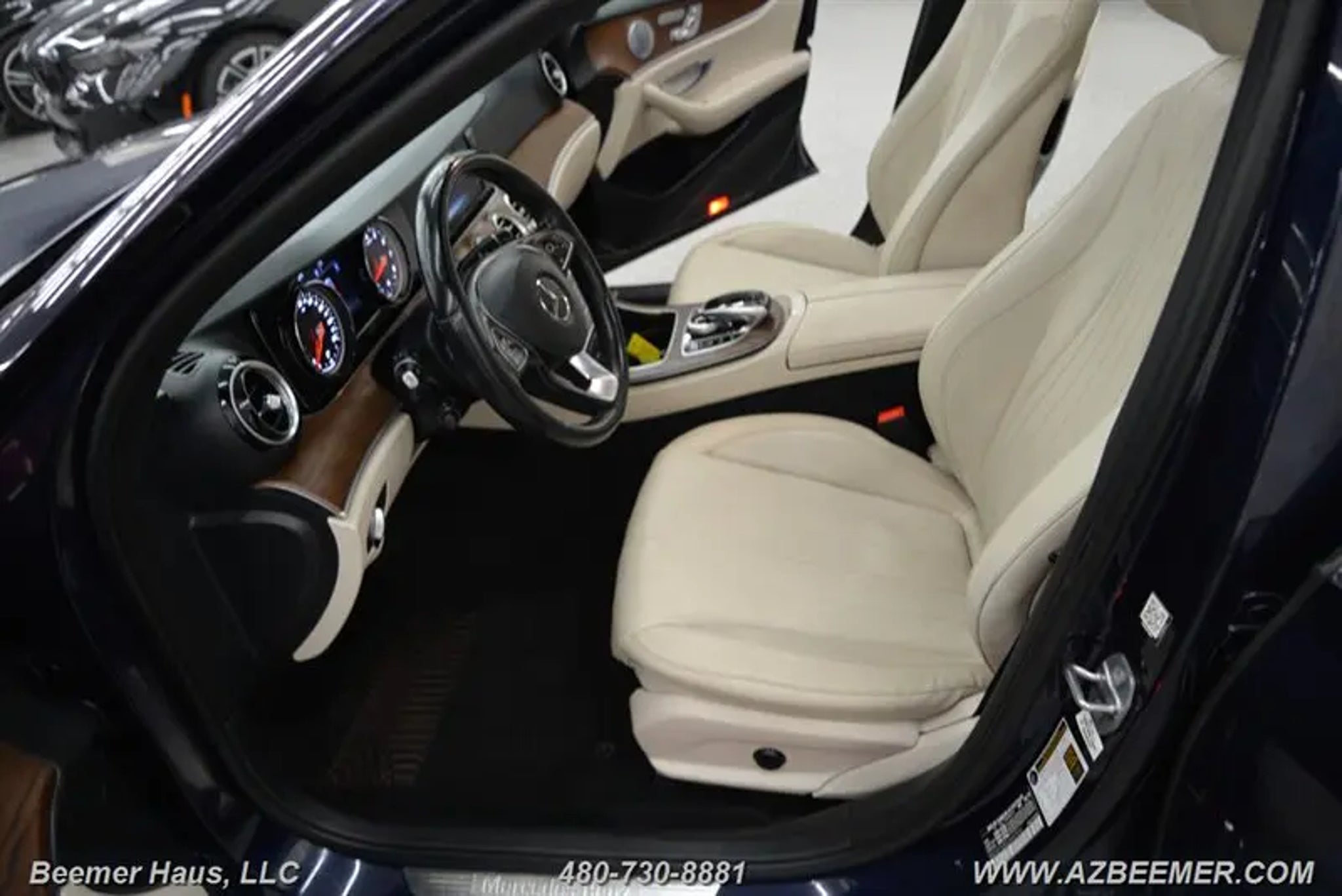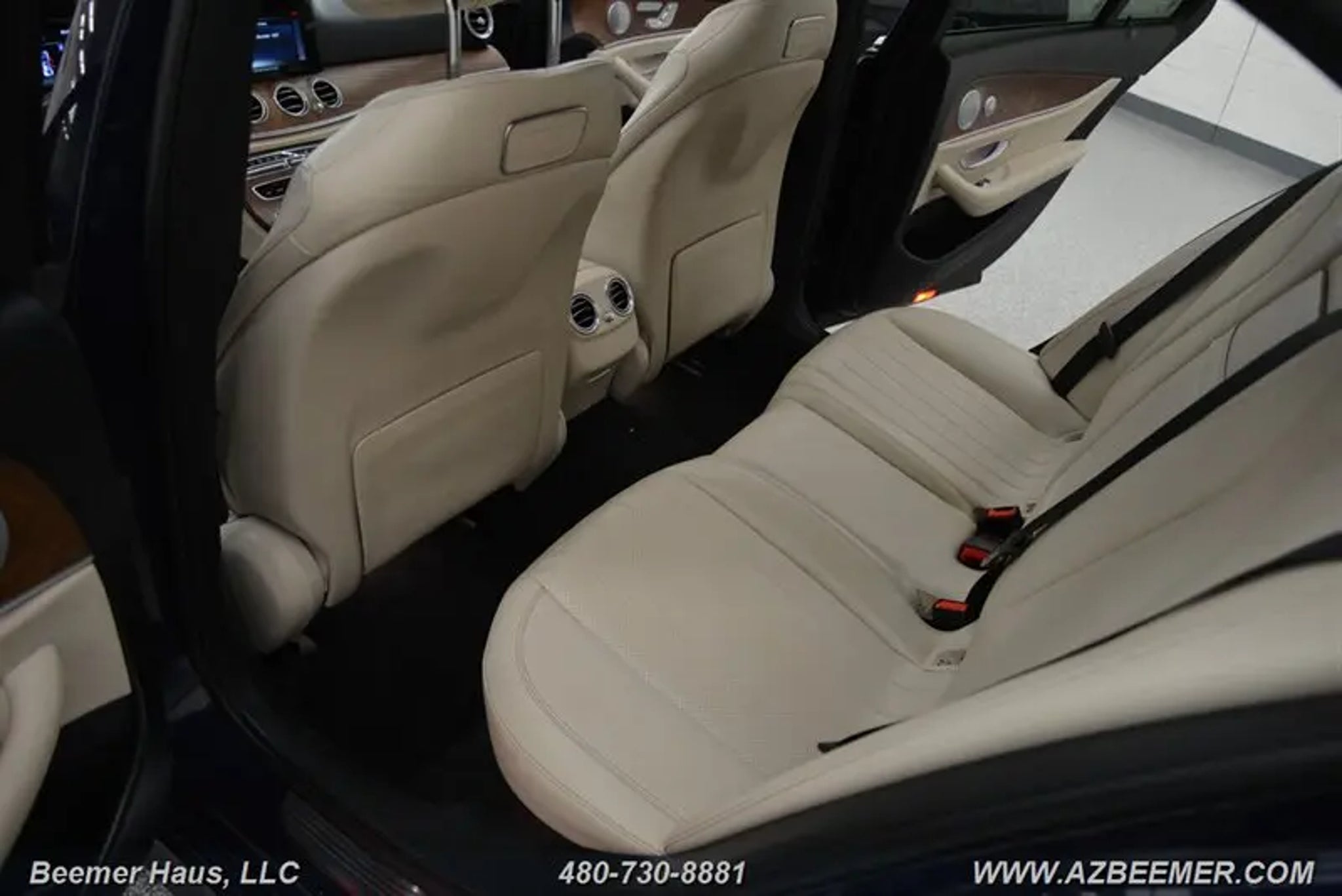 AMG LINE EXTERIOR, PREMIUM 1 PACKAGE. AMG LINE EXTERIOR includes: Sport Interior, AMG Body Styling, Sport Interior (P15), Perforated Front Brake Discs & Fr Brake Calipers. PREMIUM 1 PACKAGE includes: Electric Trunk Closer, Parking Assist Package Code, Hands-Free Access, Blind Spot Assist, Active Parking Assist, Heated Front Seats, NFC Wireless Charging, KEYLESS GO Comfort Package Code, SiriusXM Radio, free trial period, KEYLESS GO. Equipment LED LOGO PROJECTORS, LOWERED SUSPENSION W/SELECTIVE DAMPING SYSTEM, BURMESTER SURROUND SOUND SYSTEM, WHEEL LOCKS, REAR SEAT ENTERTAINMENT AND COMFORT ADAPTER, MACCHIATO BEIGE / BLACK, MB-TEX UPHOLSTERY, BLACK HEADLINER, WHEELS: 19 AMG TWIN 5-SPOKE, REAR SPOILER, NATURAL GRAIN BROWN ASH WOOD TRIM. -- INSTALLED FEATURES: Air filtration: active charcoal, Front air conditioning: automatic climate control, Front air conditioning zones: dual, Rear vents: second row, Airbag deactivation: occupant sensing passenger, Front airbags: dual, Knee airbags: driver, Side airbags: front, Side curtain airbags: front / rear, Antenna type: diversity / element, Auxiliary audio input: Bluetooth / iPod/iPhone / jack / memory card slot / USB, Radio: AM/FM / HD radio / voice operated, Radio data system, Satellite radio: SiriusXM, Speed sensitive volume control, Total speakers: 8, ABS: 4-wheel, Brake drying, Braking assist, Cornering brake control, Electronic brakeforce distribution, Electronic parking brake: auto off, Emergency braking preparation, Front brake type: ventilated disc, Power brakes, Rear brake type: ventilated disc, Armrests: rear center with cupholders, Cargo area floor mat: carpet, Center console trim: wood, Dash trim: wood, Door trim: wood, Floor mat material: carpet, Floor material: carpet, Floor mats: front / rear, Foot pedal trim: aluminum, Interior accents: wood-tone, Steering wheel trim: leather, Ambient lighting: color-adjustable, Assist handle: front / rear, Cargo area light, Center console: front console with armrest and storage, Cruise control, Cupholders: front / rear, Memorized settings: 3 driver / driver seat / passenger seat / side mirrors / steering wheel, Multi-function remote: keyless entry / panic alarm / trunk release, One-touch windows: 4, Power outlet(s): 12V cargo area / 12V front / 12V rear, Power steering: variable/speed-proportional, Power windows: lockout button, Push-button start, Reading lights: front, Rearview mirror: auto-dimming, Steering wheel: power tilt and telescopic, Steering wheel mounted controls: audio / cruise control / multi-function / paddle shifter / phone / voice control, Storage: cargo net / door pockets / front seatback / organizer, Touch-sensitive controls, Universal remote transmitter: Homelink - garage door opener, Vanity mirrors: dual illuminating, Door handle color: body-color, Exhaust: dual tip, Exhaust tip color: chrome, Front bumper color: body-color, Grille color: chrome, Mirror color: body-color, Rear bumper color: body-color, Window trim: chrome, Connected