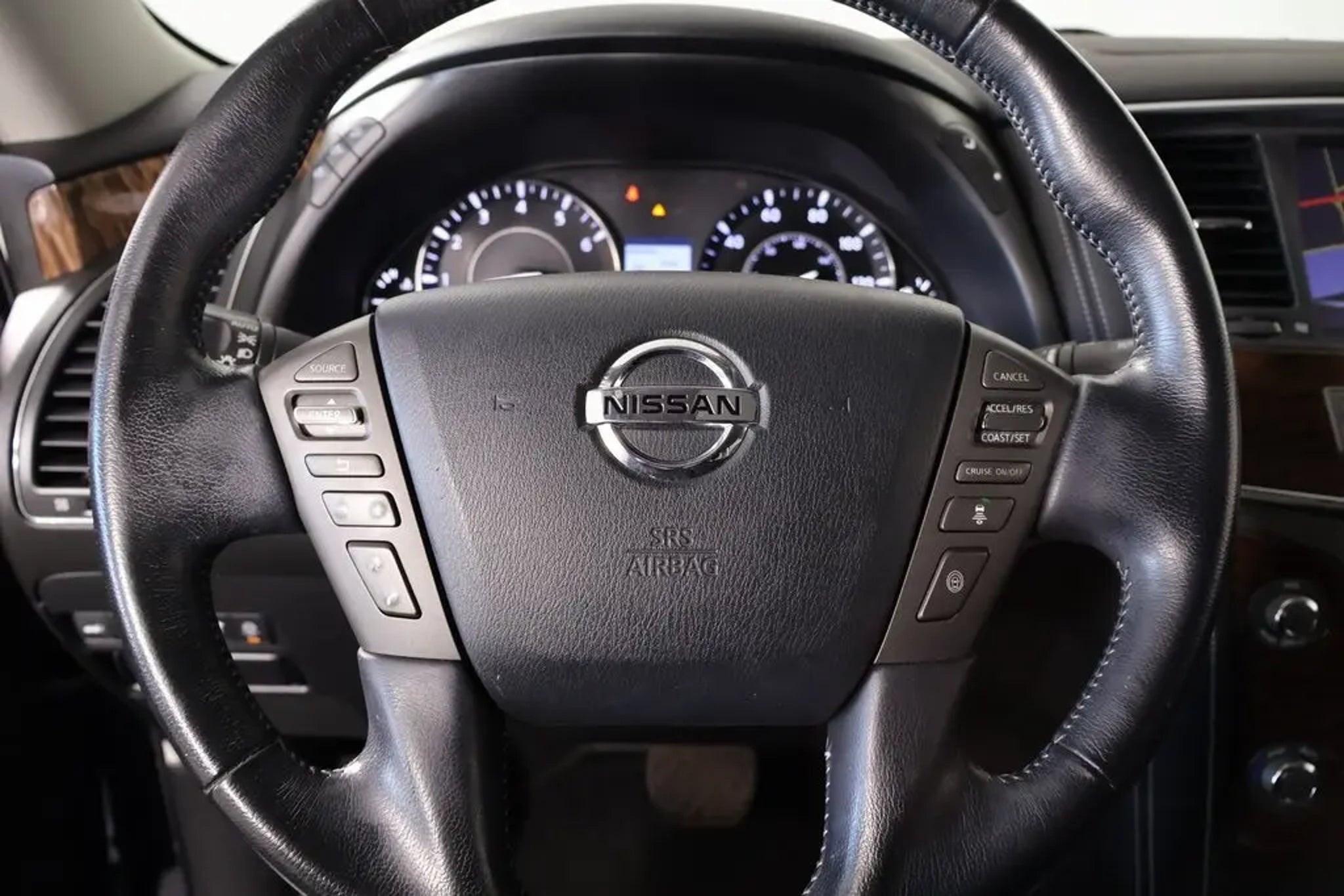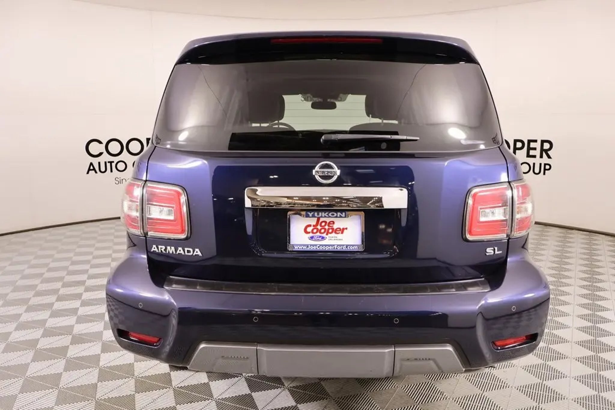 Joe Cooper Ford Yukon** ** Hermosa Blue Pearl 2019 Nissan Armada SL 4WD 5.6L V8 DOHC 32V Endurance Recent Arrival! Cooper Certified, 4WD. THIS VEHICLE COMES EQUIPPED WITH THE FOLLOWING OPTIONS AND FEATURES: Captain's Chairs Package (2nd Row Captain's Chairs and 2nd Row Center Console w/ Padded Armrest), Carpeted Floor Mats w/ Captain Seat Package, Premium Package (Blind Spot Warning, Intelligent Back-Up Intervention (I-BI), Intelligent Distance Control (I-DC), Power Sliding Moonroof w/Front Tilt & Rear Slide, and Rear Cross Traffic Alert (RCTA)), Cooper Certified Certified, 4WD, 13 Speakers, 2.937 Axle Ratio, 3rd row seats: split-bench, 4-Wheel Disc Brakes, ABS brakes, Air Conditioning, Alloy wheels, AM/FM radio: SiriusXM, Anti-whiplash front head restraints, Auto tilt-away steering wheel, Auto-dimming door mirrors, Auto-dimming Rear-View mirror, Auto-leveling suspension, Automatic temperature control, Brake assist, Bumpers: body-color, CD player, Delay-off headlights, Driver door bin, Driver vanity mirror, Dual front impact airbags, Dual front side impact airbags, Electronic Stability Control, Emergency communication system: NissanConnect Services, Four wheel independent suspension, Front anti-roll bar, Front Bucket Seats, Front Center Armrest, Front dual zone A/C, Front fog lights, Front reading lights, Fully automatic headlights, Garage door transmitter: HomeLink, Heated door mirrors, Heated Front Bucket Seats w/Driver Memory, Heated front seats, Illuminated entry, Leather Shift Knob, Leather-Appointed Seat Trim, Low tire pressure warning, Memory seat, Navigation System, Occupant sensing airbag, Outside temperature display, Overhead airbag, Overhead console, Panic alarm, Passenger door bin, Passenger vanity mirror, Power door mirrors, Power driver seat, Power Liftgate, Power passenger seat, Power steering, Power windows, Radio data system, Radio: AM/FM/SXM/CD/MP3/HD, Rain sensing wipers, Rear air conditioning, Rear anti-roll bar, Rear reading lights, Rear seat center armrest, Rear window defroster, Rear window wiper, Reclining 3rd row seat, Remote keyless entry, Roof rack: rails only, Security system, Speed control, Speed-sensing steering, Speed-Sensitive Wipers, Split folding rear seat, Spoiler, Steering wheel memory, Steering wheel mounted audio controls, Tachometer, Telescoping steering wheel, Tilt steering wheel, Traction control, Trip computer, Turn signal indicator mirrors, Variably intermittent wipers, Voltmeter, and Wheels: 20 Machined Finish Painted Alloy. Clean CARFAX. Priced below KBB Fair Purchase Price! Odometer is 35919 miles below market average! Certification Program Details: Cooper Certified Pre-Owned vehicles have gone through a multi-point vehicle inspection and been reconditioned to our high standards. Every Cooper Certified comes with a 3 month 3,000 mile Limited Warranty. We offer a complimentary Carfax report and have home delivery available. Buy with the name Oklahoman's have trusted since 1946. Awards: * 2019 KBB.com 5-Year Cost to Own Awards