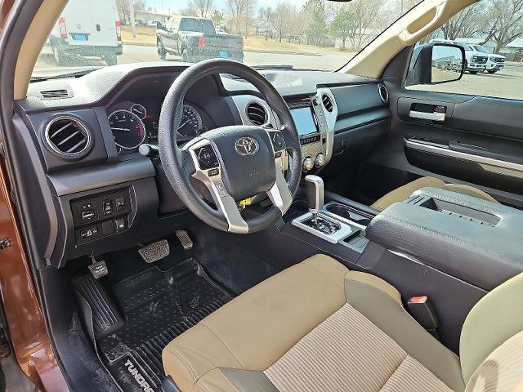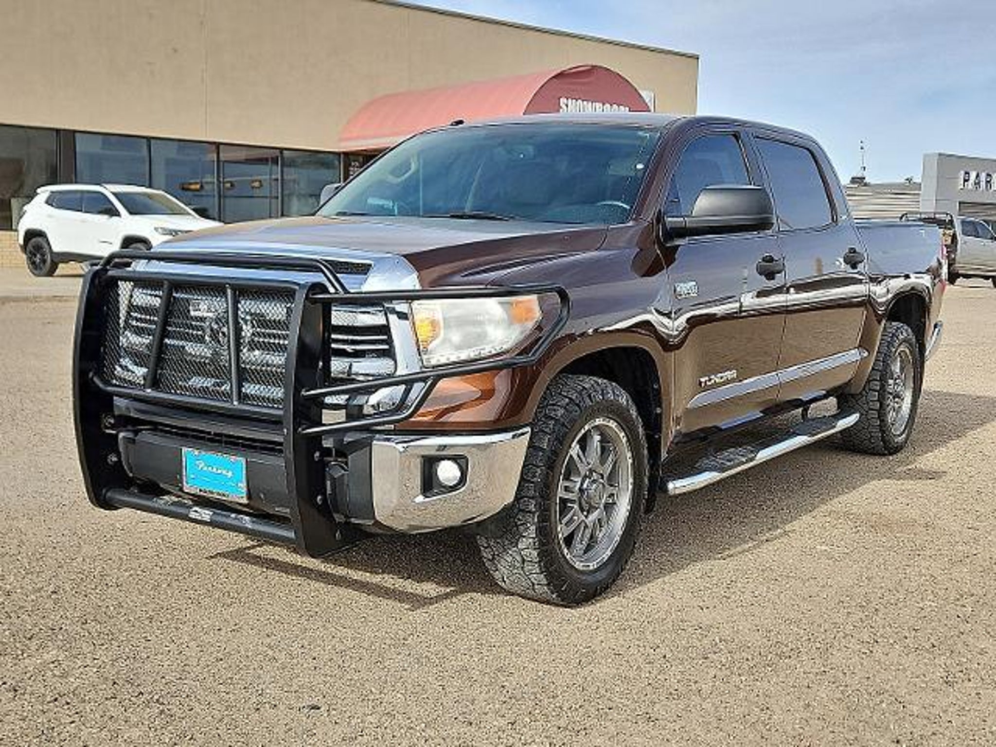 Recent Arrival! Vehicle has been through a multi-point inspection by a Parkway Family ASE Certified Mechanic. Oil & Filter changed. All fluids topped off. Get Pre-Approved today at -ford.com or This vehicle is for sale in Borger Wheeler McLean Panhandle Amarillo Dumas Stinnett and Pampa Texas. Parkway Family Ford and Parkway Family CDJR is located at 123 N Hobart St Pampa TX 79065. We are Family Owned and Operated. Quit clicking and call now! Our Internet Team is Available now to answer all of your questions. This 2017 Toyota Tundra SR5 CrewMax in comes with the following features: i-Force 5.7L V8 Flex Fuel DOHC 32V LEV 6-Speed Automatic Electronic with Overdrive 4WD 18 x 8J Styled Steel Wheels 3-Passenger Front Bench Seat 38 Gallon Fuel Tank Capacity 4-Wheel Disc Brakes 4.30 Axle Ratio 6 Speakers ABS brakes Air Conditioning AM/FM radio: SiriusXM Anti-Theft Immobilizer w/Alarm Auto-Dimming Rear-View Mirror Brake assist CD player Compass Deck Rail System Driver door bin Driver vanity mirror Dual front impact airbags Dual front side impact airbags Electronic Stability Control Exterior Parking Camera Rear Fabric Seat Trim Front anti-roll bar Front Bucket Seats Front Center Armrest w/Storage Front fog lights Front reading lights Front wheel independent suspension Heated door mirrors HomeLink Universal Transceiver Illuminated entry Knee airbag Low tire pressure warning Occupant sensing airbag Outside temperature display Overhead airbag Overhead console Panic alarm Passenger door bin Passenger vanity mirror Power door mirrors Power steering Power windows Radio: Entune AM/FM/HD w/CD Player Radio: Entune Audio Display AM/FM/HD w/CD Player Rear reading lights Rear seat center armrest Rear step bumper Rear window defroster Remote keyless entry Speed control Speed-sensing steering Split folding rear seat Steering wheel mounted audio controls Tachometer Tilt steering wheel Traction control Trip computer Variably intermittent wipers and Voltmeter.