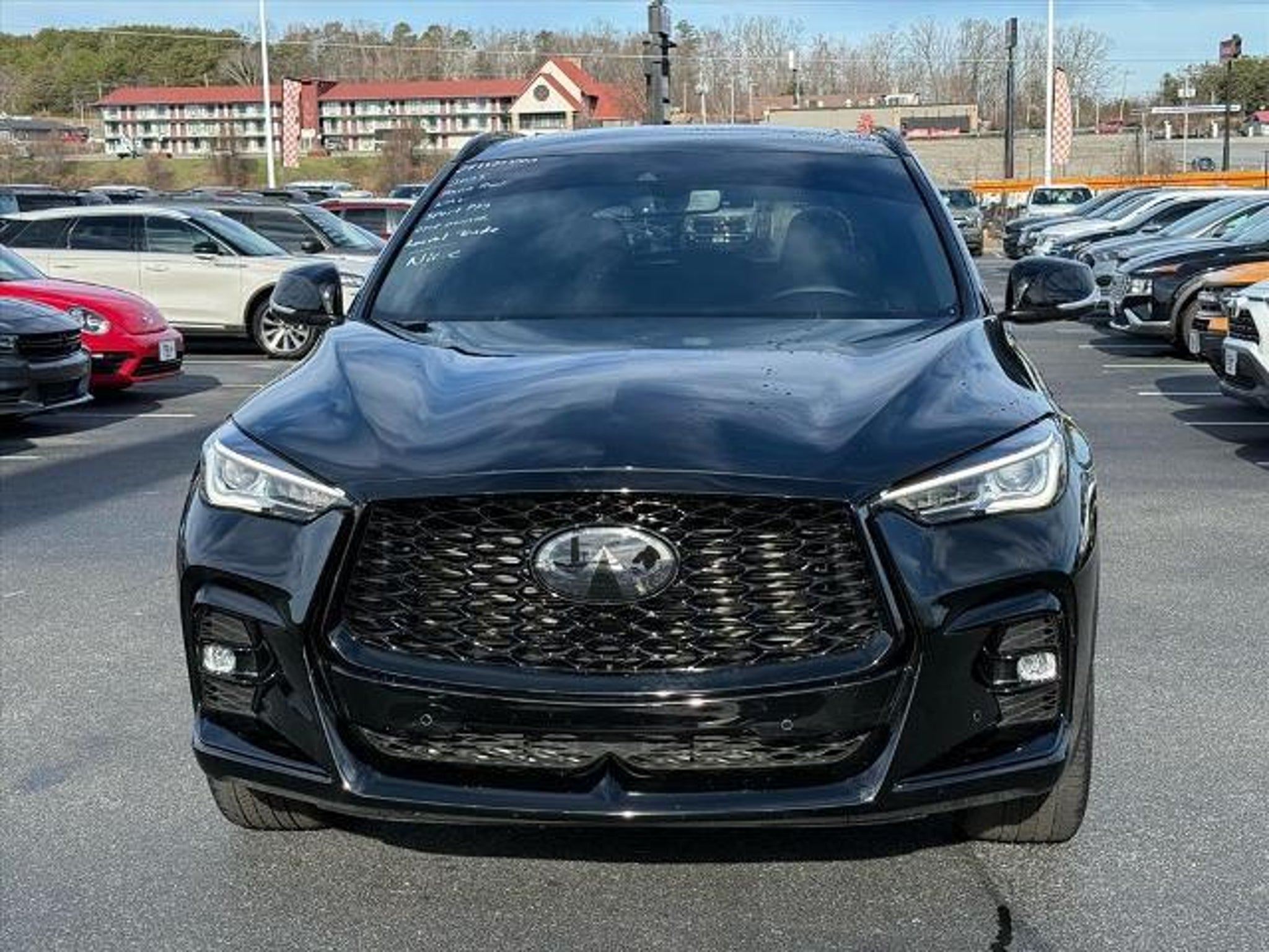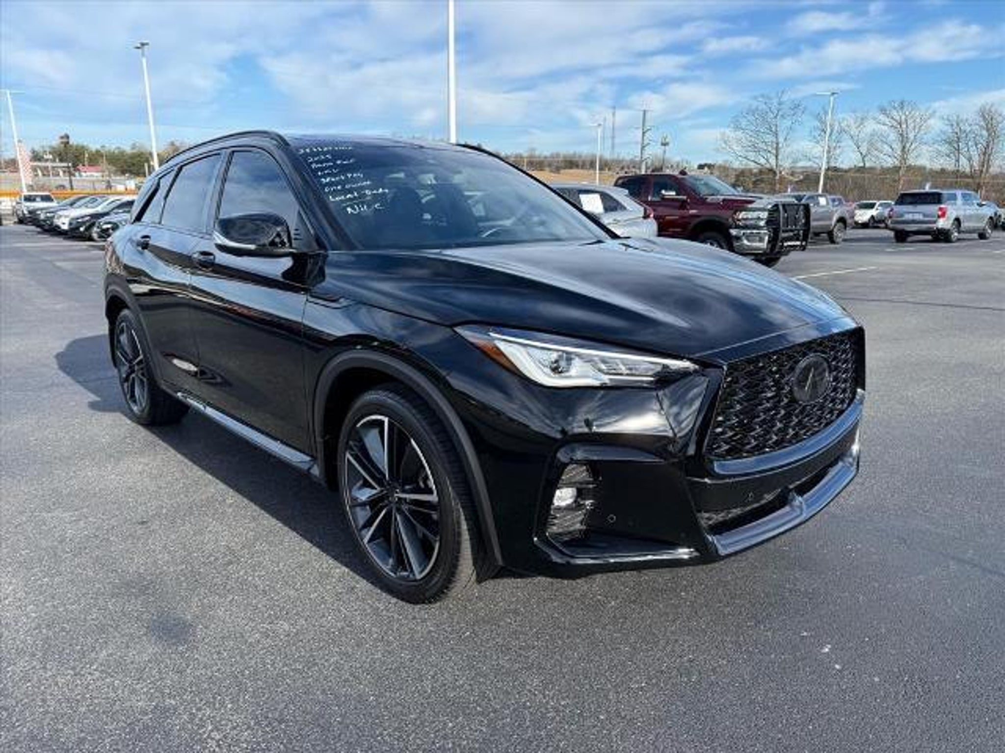 Black Obsidian 2025 INFINITI QX50 SPORT AWD CVT I4 Local Trade, Fully Detailed, ONE OWNER!!, LOW MILES!!, Navigation system: INFINITI InTouch Navigation, Power moonroof, Wheels: 20 Dark-Painted Machine-Finished Alloy.Recent Arrival! 22/28 City/Highway MPG