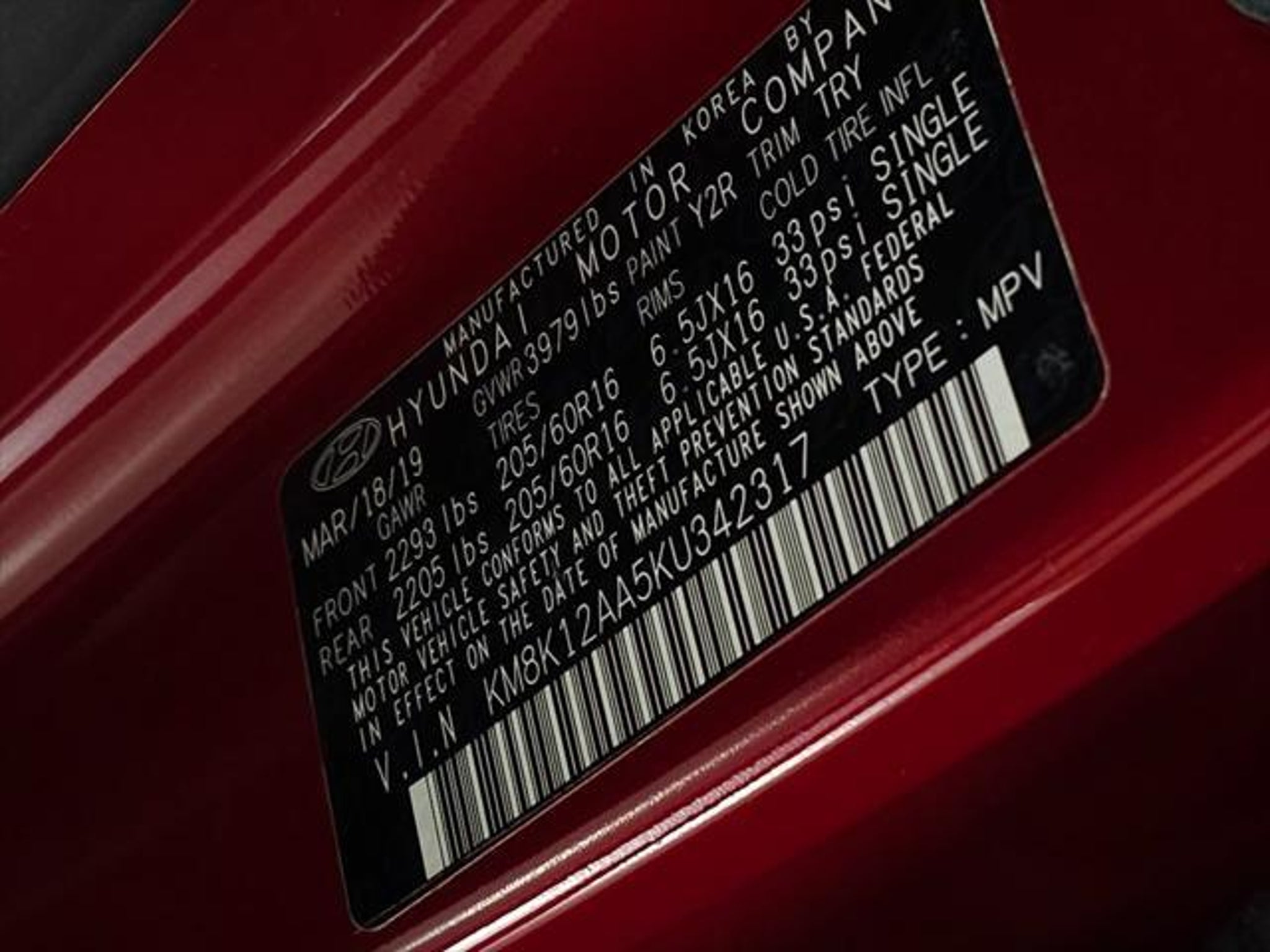VIN KM8K12AA5KU342317