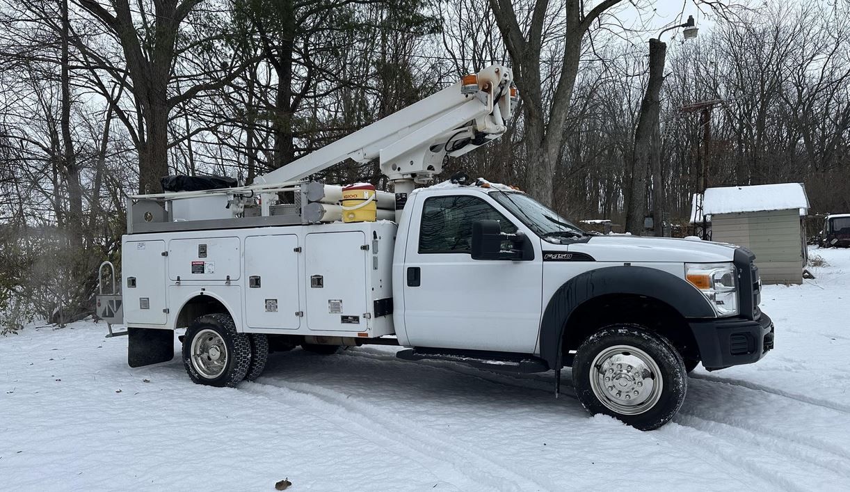 This 2012 Ford F-450 Super Duty bucket utility truck is equipped with an Altec AT-200A boom offering a 34' work height, making it a dependable choice for utility, maintenance, and light construction work. Powered by a 6.8 Triton V-10 with 109,000 miles, it also features a Cummins Onan generator with 1,009 hours, and everything works perfectly. The truck runs and drives well, with hot heat, cold A/C, zero dash lights, a reverse camera, locking toolboxes, and tires with tons of life left. It is rust-free except for very minor surface rust and has been very well maintained, showing only mild use throughout its life. This non-CDL unit comes ready for work and includes flexible payment options such as cash, wire, certified check (verified), or Cranetrader financing. Priced to sellfeel free to make an offer. Snow in the photos is from a storm during listing.