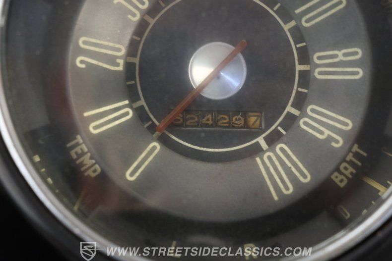 Step inside and you'll find a well-preserved interior that stays true to the car's roots. The original-style split bench seats, finished in durable vinyl, are free from rips or tears and offer a comfortable perch for long drives or local cruises. Classic touches like the factory speedometer, original AM radio, and tastefully added aftermarket gauges on the center dash blend vintage charm with practical upgrades. The dash-mounted turn signal stalk and clean presentation make this cabin a welcoming, stylish retreat.