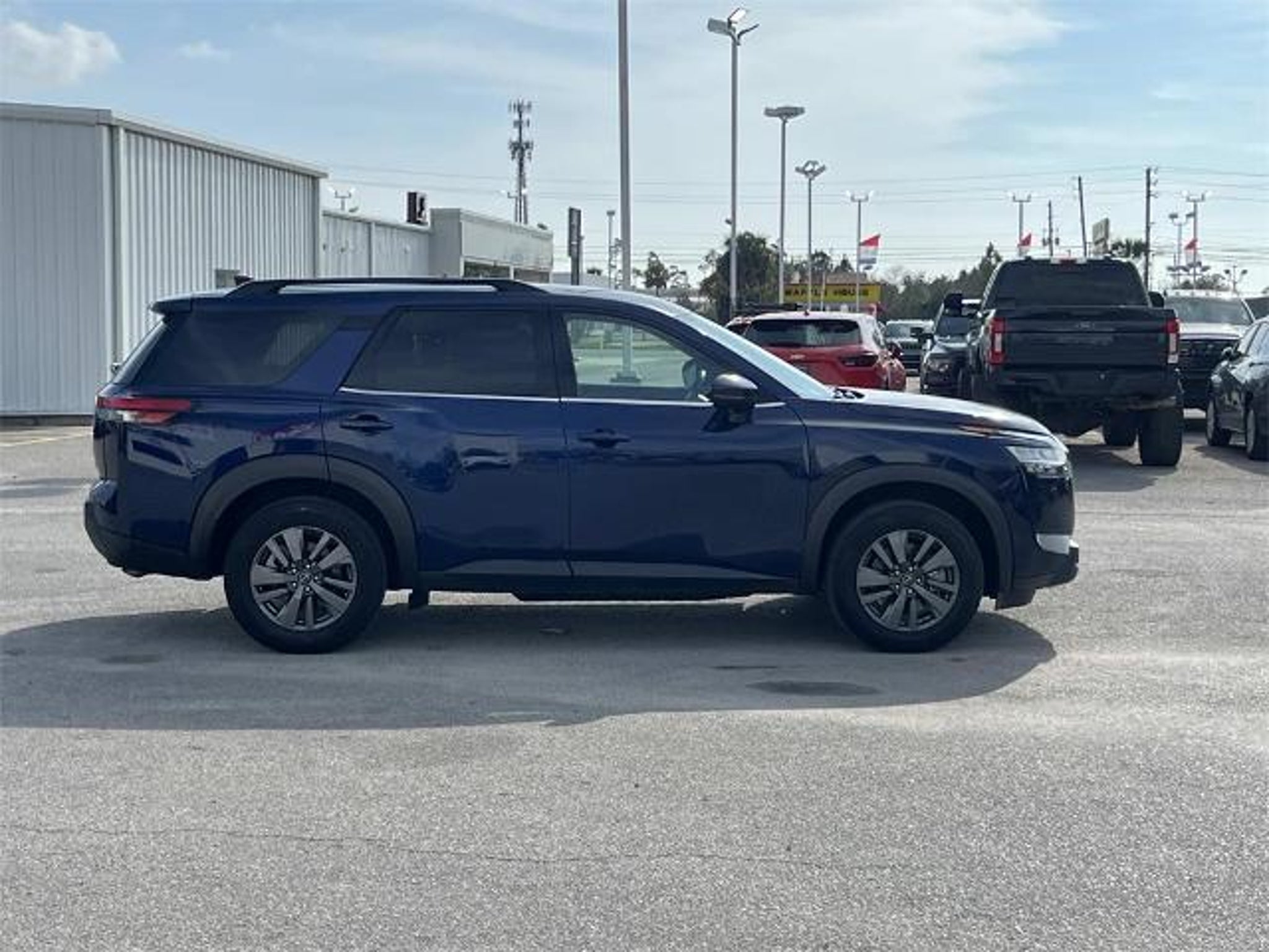 Recent Arrival! Odometer is 4593 miles below market average! 3rd row seats: bench, Heated Front Bucket Seats, Power driver seat, Rear air conditioning, Rear Parking Sensors, Reclining 3rd row seat, Wheels: 18 x 8J Painted Alloy, 4-Wheel Disc Brakes, 6 Speakers, ABS brakes, Air Conditioning, Alloy wheels, AM/FM radio: SiriusXM, Auto High-beam Headlights, Automatic temperature control, Axle Ratio: 4.334, Brake assist, Bumpers: body-color, Cloth Seating Surfaces, Delay-off headlights, Driver door bin, Driver vanity mirror, Dual front impact airbags, Dual front side impact airbags, Electronic Stability Control, Emergency communication system, Four wheel independent suspension, Front anti-roll bar, Front Bucket Seats, Front Center Armrest, Front dual zone A/C, Front reading lights, Fully automatic headlights, Heated door mirrors, Heated front seats, Illuminated entry, Knee airbag, Leather steering wheel, Low tire pressure warning, NissanConnect featuring Apple CarPlay and Android Auto, Occupant sensing airbag, Outside temperature display, Overhead airbag, Overhead console, Panic alarm, Passenger door bin, Passenger vanity mirror, Power door mirrors, Power steering, Power windows, Radio data system, Radio: AM/FM Audio System w/NissanConnect, Rear anti-roll bar, Rear reading lights, Rear seat center armrest, Rear side impact airbag, Rear window defroster, Rear window wiper, Remote keyless entry, Security system, Speed control, Speed-sensing steering, Split folding rear seat, Spoiler, Steering wheel mounted audio controls, Tachometer, Telescoping steering wheel, Tilt steering wheel, Traction control, Trip computer, Turn signal indicator mirrors, Variably intermittent wipers, 3rd row seats: bench, Heated Front Bucket Seats, Power driver seat, Rear air conditioning, Rear Parking Sensors, Reclining 3rd row seat, Wheels: 18 x 8J Painted Alloy. Deep Ocean Blue Pearl 2024 Nissan Pathfinder SV FWD 9-Speed Automatic 3.5L V6 DOHC