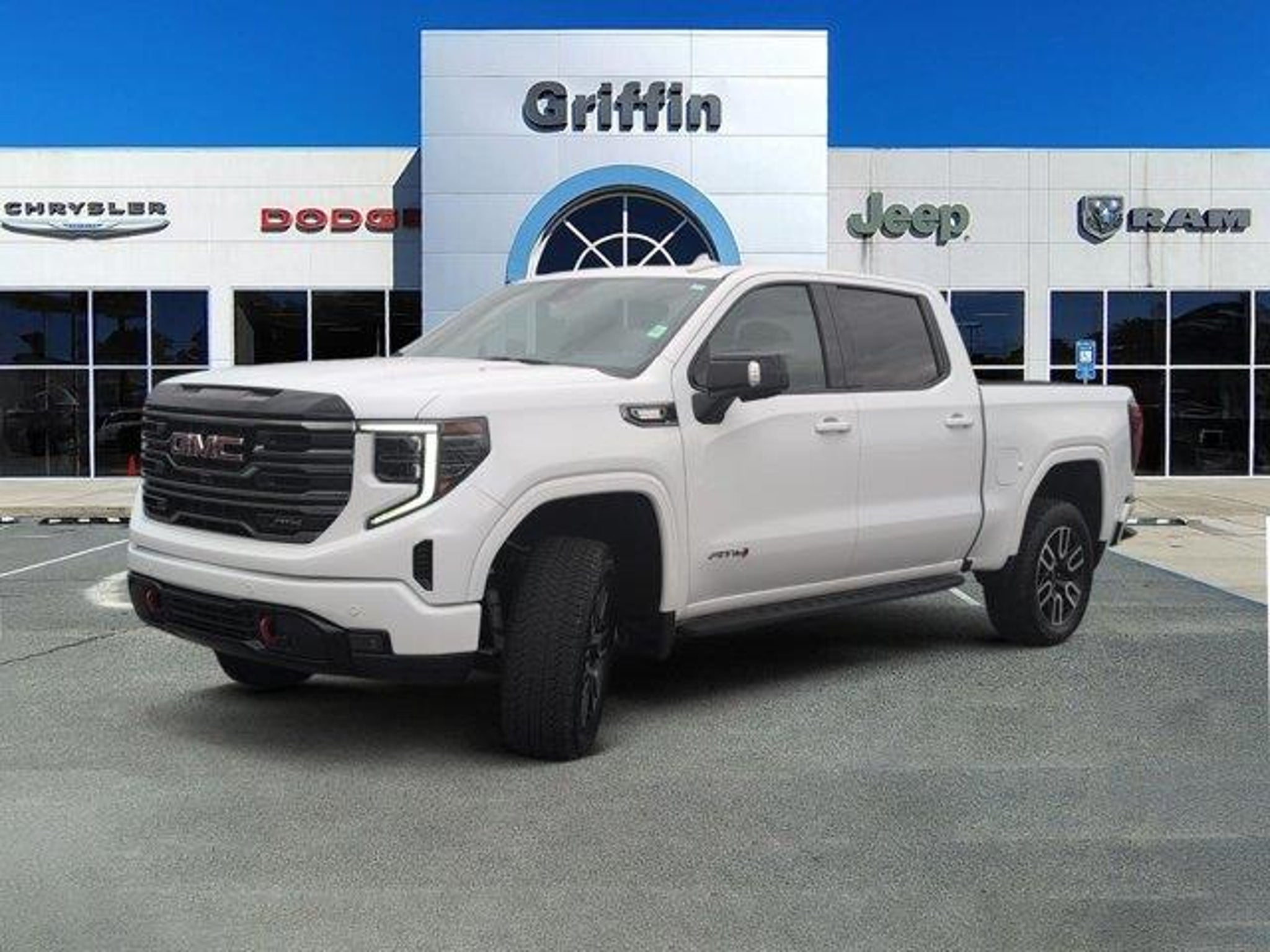 Summit White 2025 GMC Sierra 1500 AT4 4WD 10-Speed Automatic 3.0L I6 Bluetooth Smart technology, Hands Free Calling, Navigation, Back Up Camera, Clean Carfax, Heated and Cooled Seats, Power Sunroof, Sirius XM Satellite Radio, Remote Start, Keyless Entry, Automatic Climate Control, 10-Speed Automatic, 4WD, Jet Black With Kalahari Accents Leather, 120-Volt Bed Mounted Power Outlet, 120-Volt Interior Power Outlet, 2 Charge/Data USB Ports Inside Center Console, 2 Type-C Charge-Only Rear USB Ports, 2 USB Ports, 220 Amp Alternator, AT4 Preferred Package, AT4 Premium Package, Auto-Locking Rear Differential, Black Chrome Grille Insert Bars, Color-Keyed Carpeting Floor Covering, Deep-Tinted Glass, Electric Rear-Window Defogger, Floor-Mounted Center Console, Front Prem Floor Liners w/Removable Carpet Insert, Front Rain-Sensing Wipers, HD Surround Vision, Heated 2nd Row Outboard Seats, Heated Driver & Front Outboard Passenger Seating, Heavy-Duty Air Filter, Hill Descent Control, Hitch Guidance, Hitch View, In-Vehicle Trailering System App, Integrated Trailer Brake Controller, Keyless Open & Start, LED Cargo Area Lighting, Navigation System, Off-Road High Clearance Step (LPO), OnStar Services Capable, Perimeter Lighting, Power Door Locks, Power Front Passenger Windows w/Express Up/Down, Power Front Windows w/Driver Express Up/Down, Power Rake & Telescoping Steering Column, Power Rear Windows w/Express Down, Power Sliding Rear Window w/Rear Defogger, Preferred Equipment Group 4SB, Premium Bose 7-Speaker Sound System, Push Button Start, Rear Cross Traffic Braking, Rear Pedestrian Detection, Rear Prem Floor Liners w/Removable Carpet Insert, Rear Wheelhouse Liners, Red Recovery Hooks, Remote Vehicle Starter System, SiriusXM w/360L Trial Subscription, Spray-On Pickup Bedliner w/GMC Logo, Steering Wheel Audio Controls, Theft Deterrent System (Unauthorized Entry), Trailer Camera Provisions, Trailer Side Blind Zone Alert, Trailering Package, Ultrasonic Front & Rear Park Assist, Universal Home Remote, Ventilated Driver & Front Passenger Seats, Wi-Fi Hotspot Capable, Wireless Charging.Griffin Chrysler Dodge Jeep Ram is delighted to offer this terrific-looking 2025 GMC Sierra 1500 AT4 In Summit White. This vehicle is beautifully equipped with AT4 Preferred Package (Power Sliding Rear Window w/Rear Defogger and Universal Home Remote), AT4 Premium Package (Off-Road High Clearance Step (LPO)), Preferred Equipment Group 4SB (120-Volt Bed Mounted Power Outlet, 120-Volt Interior Power Outlet, 2 Charge/Data USB Ports Inside Center Con