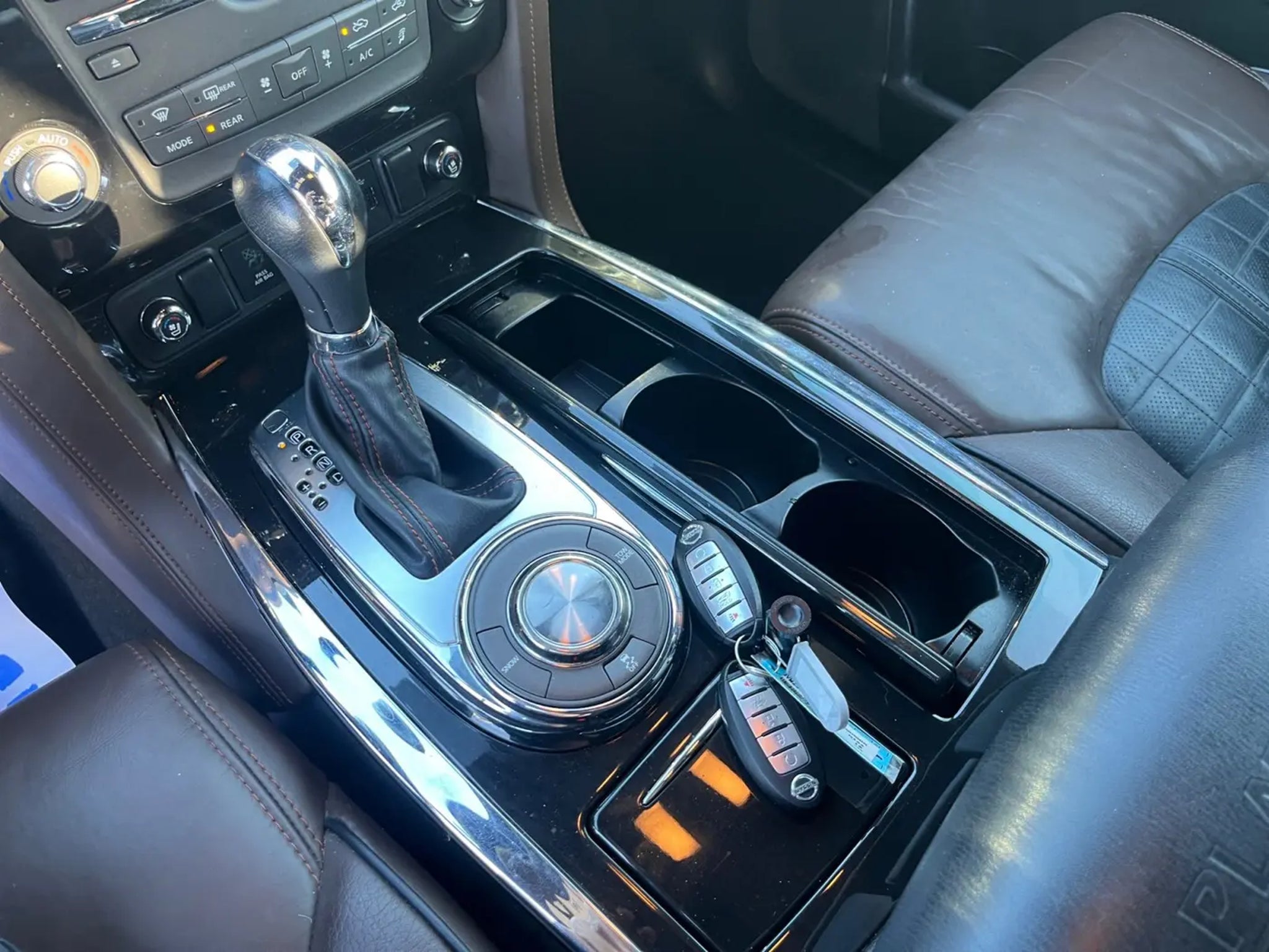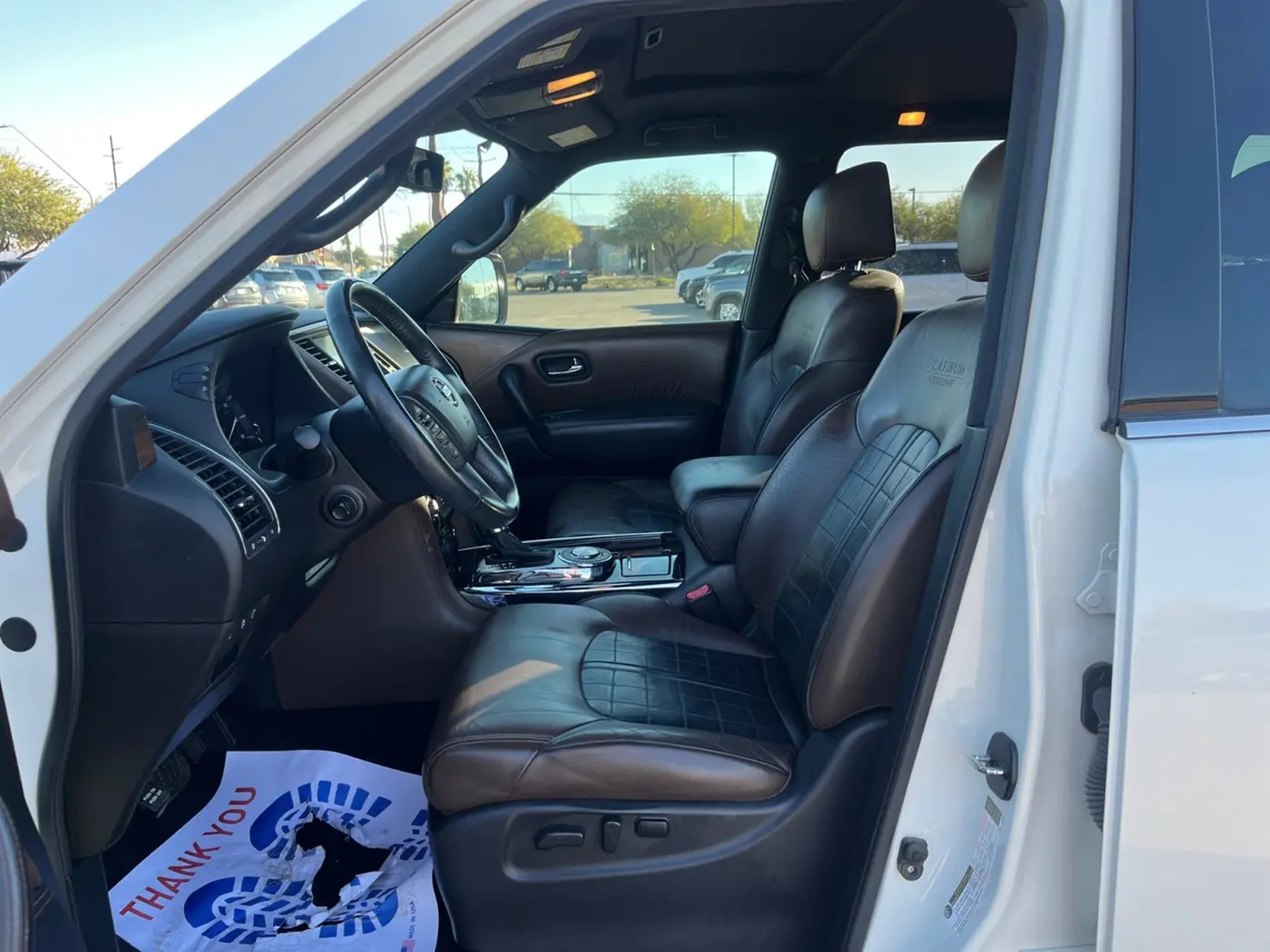 This 2018 Pearl White Nissan Armada Platinum RWD is well equipped and includes these features and benefits: Captain Seat Package (Second Row Captain's Chairs and Second Row Center Console w/ Padded Armrest), Platinum Reserve Package (20 Dark Chrome Wheels), 13 Speakers, 2.937 Axle Ratio, 3rd row seats: split-bench, 4-Wheel Disc Brakes, A/V remote, ABS brakes, Air Conditioning, Alloy wheels, AM/FM radio: SiriusXM, Anti-whiplash front head restraints, Auto tilt-away steering wheel, Auto-dimming door mirrors, Auto-dimming Rear-View mirror, Auto-leveling suspension, Automatic temperature control, Brake assist, Bumpers: body-color, CD player, Delay-off headlights, Driver door bin, Driver vanity mirror, Dual front impact airbags, Dual front side impact airbags, Electronic Stability Control, Emergency communication system: NissanConnect Services, Four wheel independent suspension, Front anti-roll bar, Front Bucket Seats, Front Center Armrest, Front dual zone A/C, Front fog lights, Front reading lights, Fully automatic headlights, Garage door transmitter: HomeLink, Headphones, Heated & Cooled Front Bucket Seats w/Driver Memory, Heated door mirrors, Heated front seats, Heated rear seats, Heated steering wheel, Illuminated entry, Lane Departure Warning System, Leather Shift Knob, Leather-Appointed Seat Trim, Low tire pressure warning, Memory seat, Navigation System, Occupant sensing airbag, Outside temperature display, Overhead airbag, Overhead console, Panic alarm, Passenger door bin, Passenger vanity mirror, Power door mirrors, Power driver seat, Power Liftgate, Power moonroof, Power passenger seat, Power steering, Power windows, Radio data system, Radio: Bose AM/FM/SXM/CD/MP3/HD Radio, Rain sensing wipers, Rear air conditioning, Rear anti-roll bar, Rear reading lights, Rear seat center armrest, Rear window defroster, Rear window wiper, Reclining 3rd row seat, Remote keyless entry, Roof rack: rails only, Security system, Speed control, Speed-sensing steering, Speed-Sensitive Wipers, Split folding rear seat, Spoiler, Steering wheel memory, Steering wheel mounted audio controls, Tachometer, Telescoping steering wheel, Tilt steering wheel, Traction control, Trip computer, Turn signal indicator mirrors, Variably intermittent wipers, Ventilated front seats, Voltmeter, and Wheels: 20 Machine-Faced Chrome w/Tinted CC. 13 Speakers, 2.937 Axle Ratio, 20 Dark Chrome Wheels, 3rd row seats: split-bench, 4-Wheel Disc Brakes, A/V remote, ABS brakes, Air Conditioning, Alloy wheels, AM/FM radio: SiriusXM, Anti-whiplash front head restraints, Auto tilt-away steering wheel, Auto-dimming door mirrors, Auto-dimming Rear-View mirror, Auto-leveling suspension, Automatic temperature control, Brake assist, Bumpers: body-color, Captain Seat Package, CD player, Delay-off headlights, Driver door bin, Driver vanity mirror, Dual front impact airbags, Dual front side impact airbags, Electronic Stability Control, Emergency communication system: NissanConnect Services, Four wheel independent suspension, Front anti-roll bar, Front Bucket Seats, Front Center Armrest, Front dual zone A/C, Front fog lights, Front reading lights, Fully automatic headlights, Garage door transmitter: HomeLink, Headphones, Heated & Cooled Front Bucket Seats w/Driver Memory, Heated door mirrors, Heated front seats, Heated rear seats, Heated steering wheel, Illuminated entry, Lane Departure Warning System, Leather Shift Knob, Leather-Appointed Seat Trim, Low tire pressure warning, Memory seat, Navigation System, Occupant sensing airbag, Outside temperature display, Overhead airbag, Overhead console, Panic alarm, Passenger door bin, Passenger vanity mirror, Platinum Reserve Package, Power door mirrors, Power driver seat, Power Liftgate, Power moonroof, Power passenger seat, Power steering, Power windows, Radio data system, Radio: Bose AM/FM/SXM/CD/MP3/HD Radio, Rain sensing wipers, Rear air conditioning, Rear anti-roll bar, Rear reading lights, Rear seat center armrest, Rear window defroste