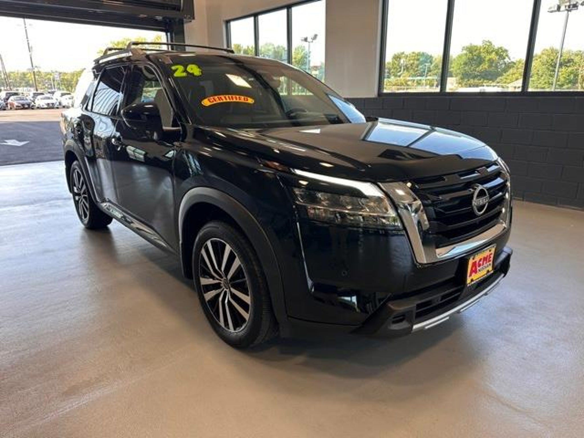 NISSAN CERTIFIED, 4WD. Acme Nissan is proud to present you with another True Market Priced Pre-Owned Vehicle. This 2024 Nissan Pathfinder Platinum Nissan Certified is loaded with the following Factory Options: 4WD Cargo Package (Cargo Area Protector, Cargo Net, and First Aid Kit), Nissan Certified Certified, 4WD, 13 Speakers, 3rd row seats: bench, 4-Wheel Disc Brakes, ABS brakes, Air Conditioning, Alloy wheels, AM/FM radio: SiriusXM, Auto High-beam Headlights, Auto tilt-away steering wheel, Auto-dimming Rear-View mirror, Automatic temperature control, Axle Ratio: 4.334, Bench Seat Carpeted Floor Mats (Set of 4), Black Splash Guards (Set of 4), Bodyside moldings, Bose Premium Audio System, Brake assist, Bumpers: body-color, Cross Bars, Delay-off headlights, Driver door bin, Driver vanity mirror, Dual front impact airbags, Dual front side impact airbags, Electronic Stability Control, Emergency communication system, Exterior Parking Camera Rear, Four wheel independent suspension, Front anti-roll bar, Front Bucket Seats, Front Center Armrest, Front dual zone A/C, Front reading lights, Fully automatic headlights, Garage door transmitter: HomeLink, Heads-Up Display, Heated & Cooled Front Bucket Seats, Heated door mirrors, Heated front seats, Heated rear seats, Heated steering wheel, Illuminated entry, Knee airbag, Leather steering wheel, Low tire pressure warning, Memory seat, Navigation system: NissanConnect with Navigation and Services, NissanConnect featuring Apple CarPlay and Android Auto, NissanConnect w/Navigation & Services, Occupant sensing airbag, Outside temperature display, Overhead airbag, Overhead console, Panic alarm, Passenger door bin, Passenger vanity mirror, Power door mirrors, Power driver seat, Power Liftgate, Power moonroof, Power passenger seat, Power steering, Power windows, Radio data system, Radio: AM/FM Audio System, Rain sensing wipers, Rear air conditioning, Rear anti-roll bar, Rear reading lights, Rear seat center armrest, Rear side impact airbag, Rear window defroster, Rear window wiper, Reclining 3rd row seat, Remote keyless entry, Security system, Semi-Aniline Leather-Appointed Seating Surfaces, Speed control, Speed-sensing steering, Speed-Sensitive Wipers, Split folding rear seat, Spoiler, Steering wheel memory, Steering wheel mounted audio controls, Tachometer, Telescoping steering wheel, Tilt steering wheel, Traction control, Trip computer, Turn signal indicator mirrors, Variably intermittent wipers, Ventilated front seats, and Wheels: 20 x 8J Machined Alloy!! 2024 Nissan Pathfinder Platinum Certified. CARFAX One-Owner. Clean CARFAX. 3 Years of Basic Scheduled Maintenance Includes 6 Oil Services and 6 Tire Rotations in the first 36 months of ownership. Valid on new and preowned Nissan vehicles only. All services to be performed at Acme Nissan. Excludes diesel engines. No Cash Value. Dealership employees ineligible. NJ residents only. Pricing on this website includes all costs to be paid by consumer except for Licensing Costs, Sales Taxes, Motor Vehicle Fees, and Documentation Fee of $589.00. Advertised price is before any additional dealer installed options or accessories. Not valid on prior sales or offers. All prices, specifications and availability are subject to change without notice. Contact dealer for most current information. * Some Rebates may not be combined with Special APR and other offers. See Dealer for complete details.