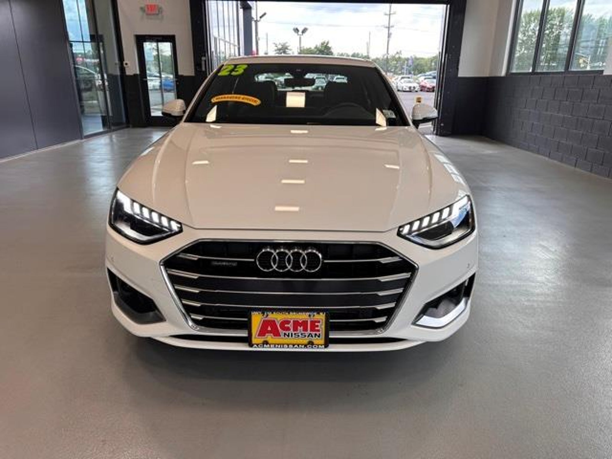 7-Speed Automatic S tronic, quattro, Brown Leather. Acme Nissan is proud to present you with another True Market Priced Pre-Owned Vehicle. This 2023 Audi A4 40 Premium quattro is loaded with the following Factory Options: 7-Speed Automatic S tronic, quattro, and Brown Leather 18 Wheel Package (Wheels: 18 10-Spoke-Dynamic Design Bi-Color Finish), Convenience Package (Adaptive Cruise Control, Alarm System w/Motion Sensor, Audi Advanced Key, Audi Side Assist w/Pre Sense Rear, Heated Steering Wheel, Memory for Driver's Seat, Parking System Plus, and SiriusXM w/360L), 7-Speed Automatic S tronic, quattro, Brown Leather, 10 Speakers, 4-Wheel Disc Brakes, ABS brakes, Air Conditioning, Alloy wheels, AM/FM radio, Anti-whiplash front head restraints, Audi Beam-Rings, Audi Guard Protection Kit, Audi smartphone interface (Apple CarPlay/Android Auto), Auto High-beam Headlights, Auto-dimming Rear-View mirror, Automatic temperature control, Brake assist, Bumpers: body-color, Compass, Delay-off headlights, Driver door bin, Driver vanity mirror, Dual front impact airbags, Dual front side impact airbags, Electronic Stability Control, Emergency communication system: Audi connect CARE, Exterior Parking Camera Rear, Four wheel independent suspension, Front anti-roll bar, Front Bucket Seats, Front Center Armrest, Front dual zone A/C, Front fog lights, Front reading lights, Garage door transmitter: HomeLink, Genuine wood dashboard insert, Genuine wood door panel insert, Heated door mirrors, Heated Front Bucket Seats, Heated front seats, Illuminated entry, Integrated Toll Module Delete (DISC), Knee airbag, Leather Seating Surfaces, Leather Shift Knob, Leather steering wheel, Low tire pressure warning, Occupant sensing airbag, Outside temperature display, Overhead airbag, Overhead console, Panic alarm, Passenger door bin, Passenger vanity mirror, Power door mirrors, Power driver seat, Power Folding Exterior Mirrors, Power moonroof, Power passenger seat, Power steering, Power windows, Radio data system, Radio: Audi Sound System, Rain sensing wipers, Rear air conditioning, Rear anti-roll bar, Rear reading lights, Rear seat center armrest, Rear window defroster, Remote keyless entry, Speed control, Speed-sensing steering, Speed-Sensitive Wipers, Split folding rear seat, Steering wheel mounted audio controls, Tachometer, Telescoping steering wheel, Tilt steering wheel, Traction control, Trip computer, Turn signal indicator mirrors, Variably intermittent wipers, and Wheels: 17 10-Spoke Design Forged!! 2023 Audi A4 40 Premium CARFAX One-Owner. Clean CARFAX. 24/33 City/Highway MPG 3 Years of Basic Scheduled Maintenance Includes 6 Oil Services and 6 Tire Rotations in the first 36 months of ownership. Valid on new and preowned Nissan vehicles only. All services to be performed at Acme Nissan. Excludes diesel engines. No Cash Value. Dealership employees ineligible. NJ residents only. Pricing on this website includes all costs to be paid by consumer except for Licensing Costs, Sales Taxes, Motor Vehicle Fees, and Documentation Fee of $589.00. Advertised price is before any additional dealer installed options or accessories. Not valid on prior sales or offers. All prices, specifications and availability are subject to change without notice. Contact dealer for most current information. * Some Rebates may not be combined with Special APR and other offers. See Dealer for complete details.
