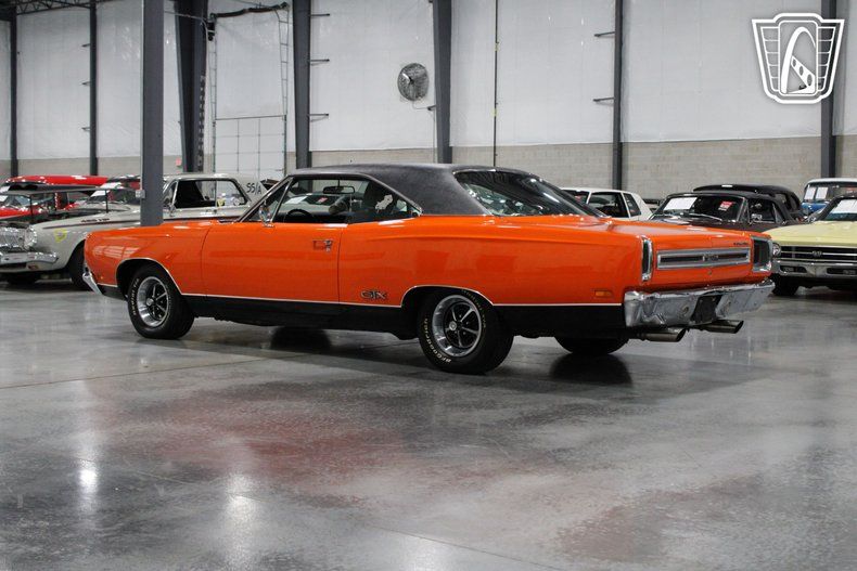 In summary, the 1969 Plymouth GTX with its striking orange exterior, powerful V8 engine, and well-appointed features, represents a remarkable blend of performance and classic design. This vehicle is a testament to the golden era of American muscle cars, offering a driving experience that is both exhilarating and timeless.
