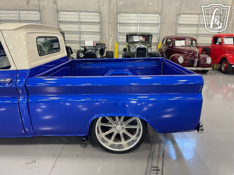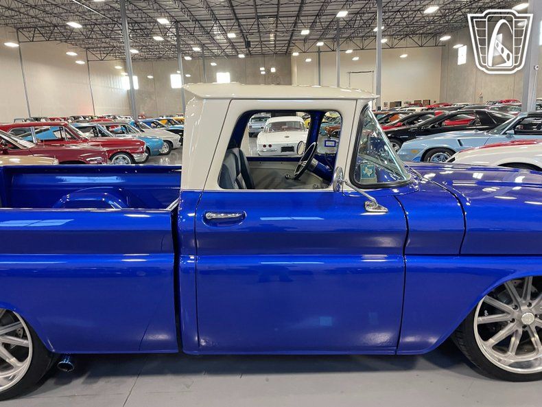 Gateway Classic Cars of San Antonio/Austin is excited to present this 1963 Chevrolet C10 which seamlessly blends timeless appeal with contemporary upgrades. This remarkable pickup is an eye-catching masterpiece, featuring a striking blue exterior that commands attention wherever it goes. Stepping inside, you'll find beautifully paired blue leather with plaid cloth centers that create a cohesive and inviting atmosphere. Under the hood lies a powerful 5.3 L V8 engine with long tube headers, matched with a 4L60 automatic transmission, delivering a smooth and engaging driving experience. This impressive powertrain ensures that this classic truck is a beauty to behold but also a thrill to drive. Complementing its dynamic performance are US Mag aluminum wheels and performance tires, enhancing both its aesthetic appeal and road-handling capabilities. This Chevrolet C10 comes equipped with an array of features designed to offer comfort and convenience. The air conditioning system ensures a pleasant cabin environment, regardless of the weather outside. A fully adjustable air ride system allows for the look you want. Power windows and power locks add a touch of modern practicality, while power steering and power brakes contribute to an effortless driving experience. The inclusion of a tilt steering wheel allows for a customized driving position, enhancing comfort during long journeys. For entertainment, the truck is fitted with an Pioneer AM/FM/Bluetooth radio and a CD player, providing a variety of listening options to suit your preferences. With its unique combination of style, performance, and comfort features, this 1963 Chevrolet C10 is ready to make a statement on the road.