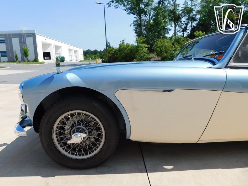 Gateway Classic Cars of Charlotte is proudly to digitally present, a classic icon of British motoring heritage, the 1961 Austin-Healey 3000 BT7, showcasing a striking blue and white exterior that captures attention and admiration on every journey. This automobile is a quintessential example of timeless design and engineering, embodying the spirit of the golden era of roadsters. The sophisticated exterior color combination is complemented by a sleek blue interior, creating a harmonious blend of style and elegance. Under the hood, this Austin-Healey is powered by a robust 2.9L inline-six engine, paired with a 4-speed overdrive manual transmission. This powertrain configuration offers drivers a dynamic and engaging driving experience, reminiscent of the open roads and spirited drives of the 1960s. The manual convertible top provides the flexibility to enjoy the sunshine and fresh air with ease, enhancing the overall driving experience. Inside, the blue vinyl interior presents a classic yet durable finish, maintaining the authentic look and feel that enthusiasts appreciate. The car is equipped with wire wheels, adding a touch of classic sophistication while contributing to the vehicle's distinctive and appealing profile. Each of these elements works in concert to provide an authentic and enjoyable driving experience that recalls the charm and thrill of a bygone era. This 1961 Austin-Healey 3000 BT7 stands as a testament to the enduring allure of vintage British sports cars, offering a unique opportunity to own a piece of automotive history. Whether for leisurely drives or as a prized addition to a collection, this vehicle promises a timeless connection to the elegance and excitement of classic motoring.