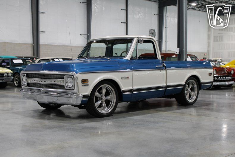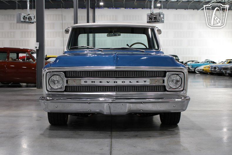 Gateway Classic Cars of Philadelphia is proud to digitally present the 1971 Chevrolet C10. This iconic pickup truck is beautifully presented in a striking blue and white exterior color scheme, capturing the essence of vintage style with a modern touch. Under the hood, it boasts a robust 454 V8 engine paired with an automatic transmission, offering a powerful and smooth driving experience that is sure to impress enthusiasts and collectors alike.