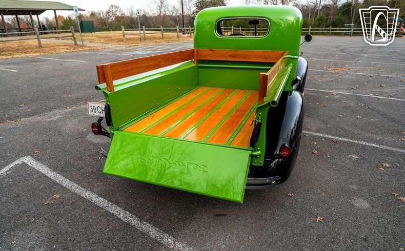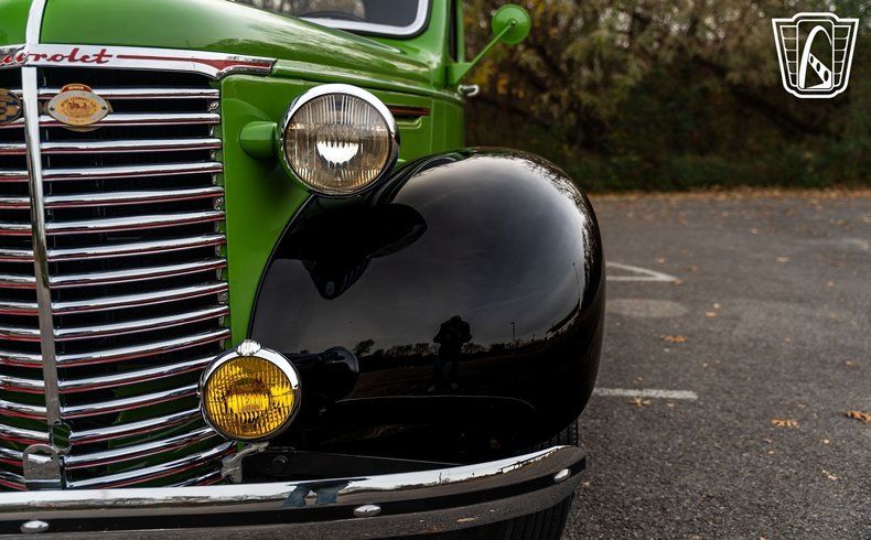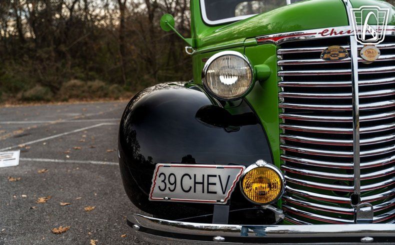 Introducing a classic piece of automotive history, the 1939 Chevrolet Pickup Master, a stunning example of vintage craftsmanship and timeless design. This remarkable vehicle boasts a striking green and black exterior that captures the essence of its era, exuding a sense of nostalgia and elegance.
