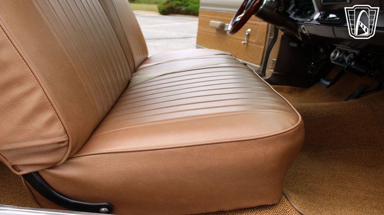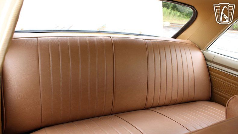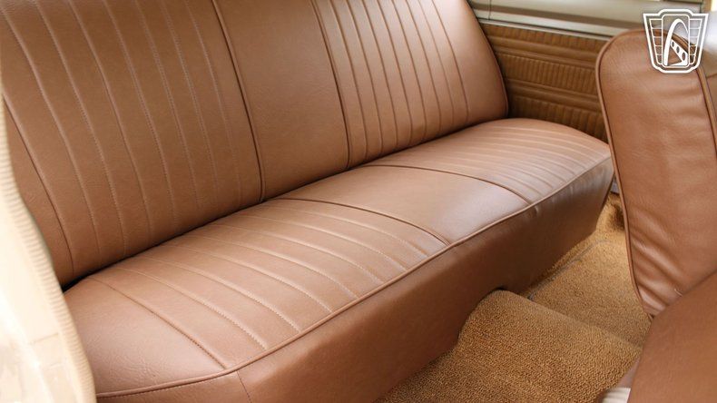 This particular model features a striking tan exterior that complements its era-appropriate brown vinyl interior, creating a sophisticated and cohesive look that is sure to turn heads wherever you go.