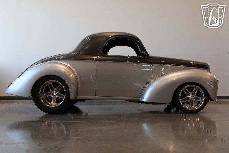 Gateway Classic Cars of Scottsdale is excited to digitally present this stunning example of classic American automotive design, the 1941 Willys Coupe, featuring a striking dark gray metallic and silver metallic exterior. There are 1446 miles on this Custom build, A stout powerful V8 Crate Motor adds to the incredible performance and looks of this Custom Built 1941 Willys Coupe. This beauty sits on One Off Billet Specialties rims boasting 18" wide rear tires.