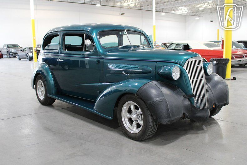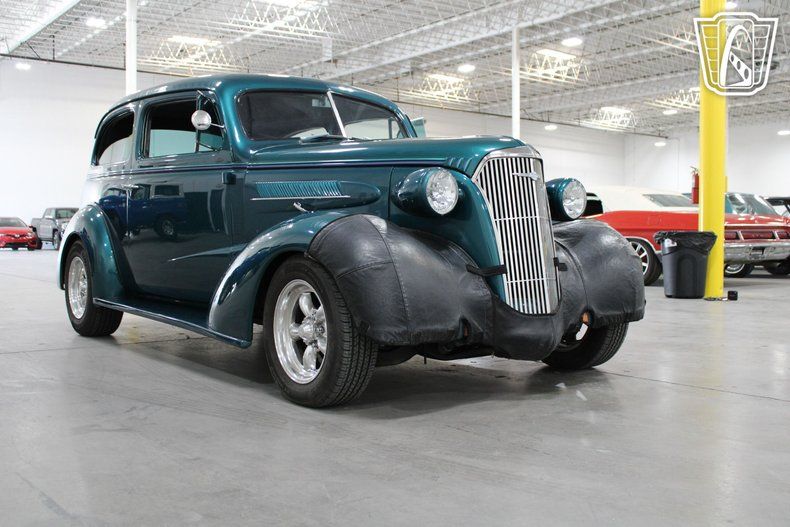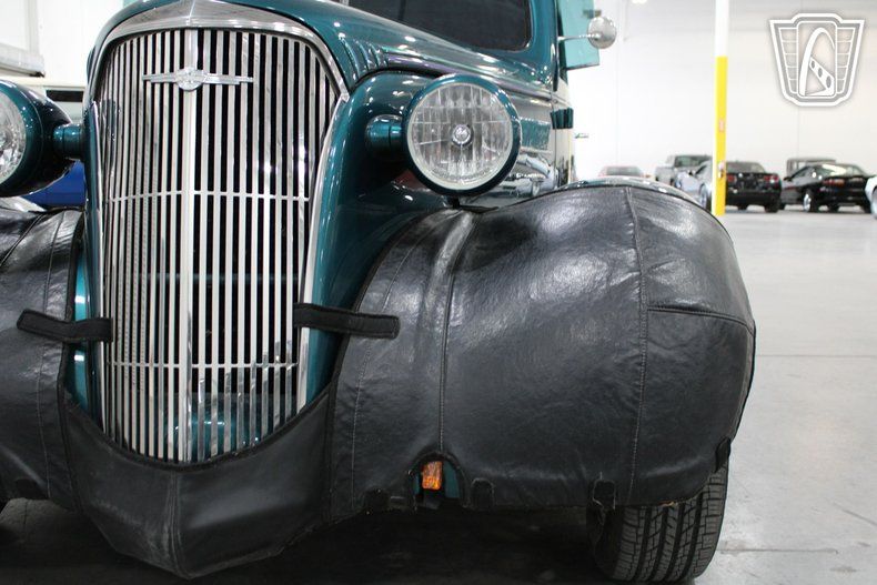 Equipped with modern conveniences, this 1937 Chevrolet Master & Standard ensures a comfortable journey with features such as air conditioning to keep you cool on warm days. The am/fm radio and CD player offer entertainment options for every drive, allowing you to enjoy your favorite tunes as you travel. The custom wheels add a touch of personal flair, enhancing the vehicle's overall aesthetic appeal.