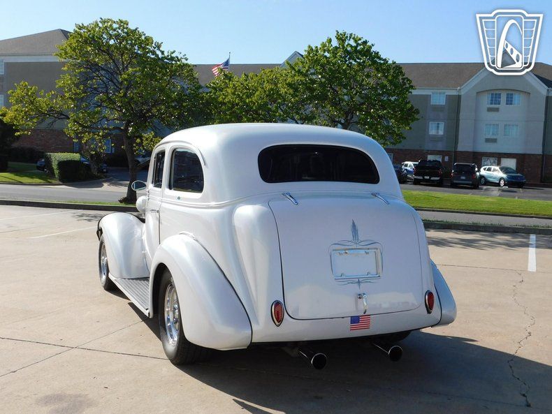 Gateway Classic Cars of Tulsa is proud to represent this slick 1938 Chevrolet Master Deluxe, a stunning example of vintage automotive craftsmanship. This vehicle boasts a pristine pearl white exterior that exudes elegance and sophistication, making it a head-turner wherever it goes. Complementing the exterior is a luxurious blue and white faux leather interior that is incredibly soft, offering a striking contrast that enhances the overall aesthetic appeal.