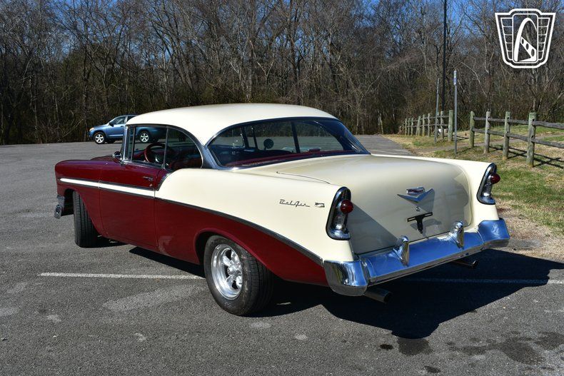 Gateway Classic Cars of Nashville is proud to introduce a classic icon of American automotive history, the 1956 Chevrolet Bel Air. This timeless beauty boasts a striking cream exterior that complements its vibrant red cloth interior, offering a nostalgic yet stylish driving experience. Under the hood, you'll find a robust V8 engine paired with a manual transmission, providing a driving experience that is both engaging and authentic to the era.