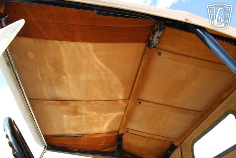 Inside, the roadster's brown leather interior creates a warm and inviting atmosphere, blending comfort with classic style. The inclusion of seatbelts adds a thoughtful touch to this timeless vehicle, providing an added layer of security for those spirited drives. Enhancing the roadster's vintage charm is the tan soft top, which offers versatility and protection from the elements, while the brown rumble seat in the rear adds a distinctive feature and extra seating for passengers looking to enjoy the open road.