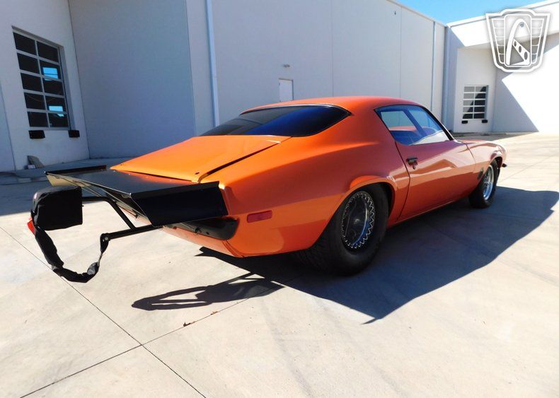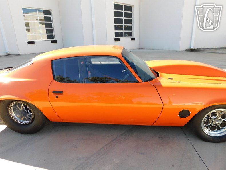 Gateway Classic Cars of Charlotte is proud to digitally present this striking 1971 Chevrolet Camaro, a true embodiment of power and style. This iconic vehicle boasts an eye-catching orange exterior, precisely restored by Pops Classic Restoration, ensuring every detail is as captivating as it is authentic. The bold exterior is complemented by a sleek black interior, featuring Kirkey racing seats and Race Quip seatbelts, offering both comfort and safety for those exhilarating drives. Under the hood, this Camaro is powered by a formidable 358 SBC V8 engine with a forged bottom, paired with a Turbo 350 automatic transmission. This dynamic duo promises a thrilling performance, enhanced by a 9-inch Ford rear end with a 3.73 gear ratio. The addition of a Killswitch and a push-button ignition underscores its racing pedigree, while the CPP tubular control arms and Viking double adjustable front shocks coil over ensure precision handling and a smooth ride. Designed for both street and track, this Camaro features a 12-point cage and an SSW back half 4-link setup, providing enhanced stability and control. The 15x15 Champion Beadlock wheels wrapped in 31x18.50 Hoosier tires offer superior traction, making it ready for any challenge. The rear spoiler exhaust not only add to its aggressive stance but also optimize performance. Inside, the tilt and removable steering wheel provide flexibility and ease of access, while the fan and lights controls are conveniently placed for the driver's use. The removable hood allows for easy access to the engine bay, making maintenance a breeze. This Camaro stands as a testament to classic design and modern engineering. Whether you're cruising the streets or hitting the track, this 1971 Chevrolet Camaro delivers an unparalleled driving experience, blending vintage charm with modern performance upgrades. This is more than just a car; it's a statement of style, power, and precision.