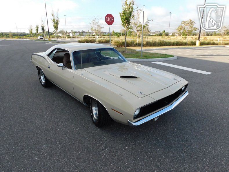 Gateway Classic Cars Tampa Showroom is proud to digitally present this rare 1970 Plymouth 'Cuda. You hear about the these, you seen them on tv, but you rarely see one come up for sale. Some would say the 1970 Plymouth 'Cuda is the high water mark for 70s muscle. This specific 'Cuda has been in its current owners care for over two decades and was recently resprayed in its original Sand Pebble Beige (BL1) with black stripes (V6X). In 1970, a little less than 19,000 hardtop 'Cuda's were made compared to over 120,000 Camaro's. However, only 566 units were adorned in gorgeous Sand Pebble making this a rare color combo. The owner has a file folder to go with the car including the all important Broadcast sheet. This is a "H" code, E55, 340/275hp engine (2780930-340-5) sitting under the hood and connected to the legendary 727 torqueflite trans (D32). The owner has updated to front disc brakes and added an Edelbrock carb. Full disclosure - she needs a little tuning and few things do not work i. e. the radio, horn, and blower motor. However, nothing looks like or draws attention like a '70 Cuda and this unicorn is sitting in all its glory on our showroom floor. Mopar enthusiasts line up!
