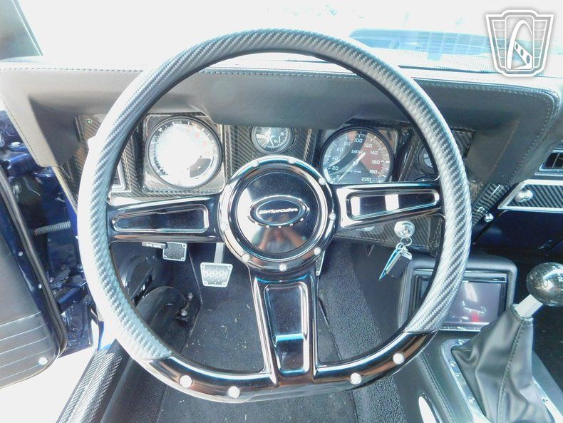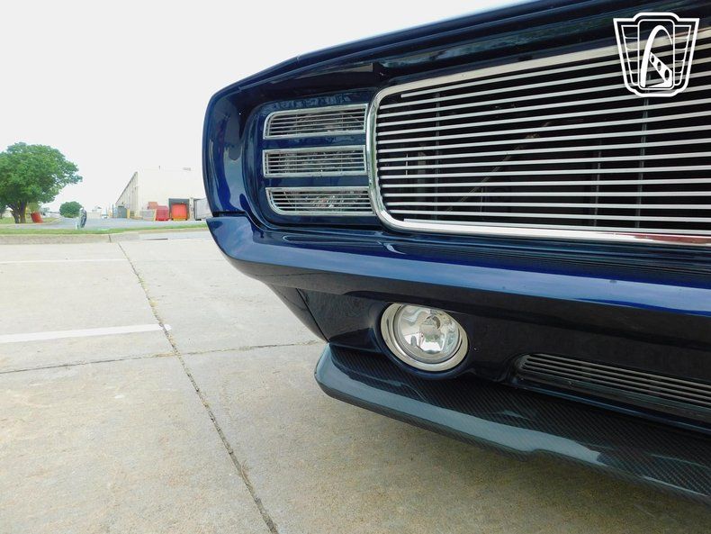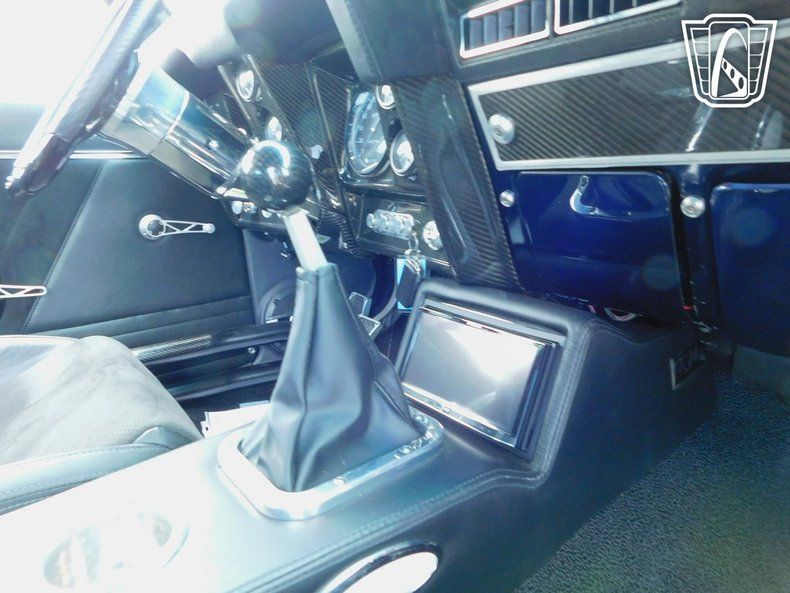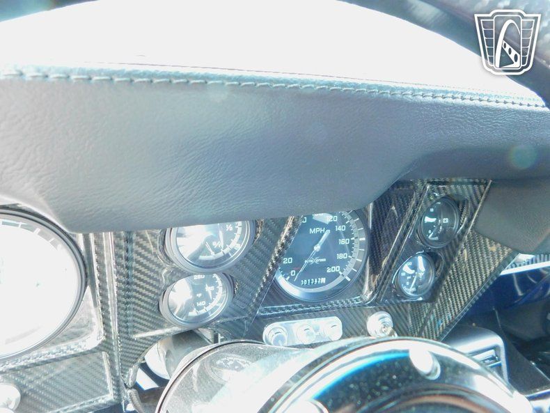 Gateway Classic Cars of Tulsa is proud to represent this stunning custom 1969 Chevrolet Camaro, a classic American muscle car that combines timeless style with high quality modern amenities. This iconic vehicle boasts a striking Stormy Blue exterior with carbon fiber incorporated throughout that captures attention wherever it goes. Step inside to find a luxurious black leather interior by TMI that offers both comfort and sophistication.