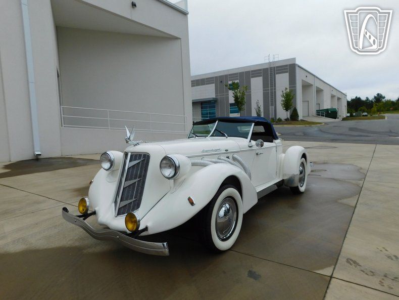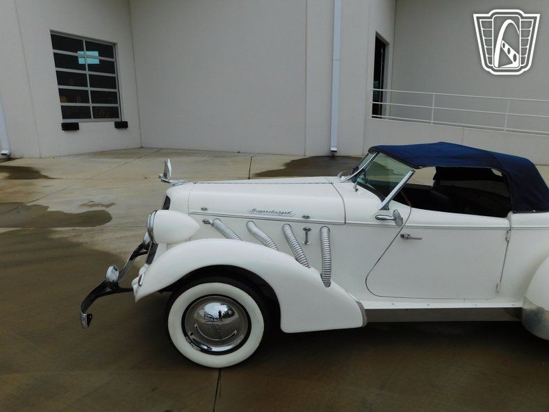 Step into a world of classic elegance and timeless design with this stunning 1976 Auburn Replica. This lovely vehicle boasts a pristine white exterior that exudes sophistication and charm. The striking contrast of the blue leather interior adds a touch of luxury and refinement, making every journey an experience to remember.