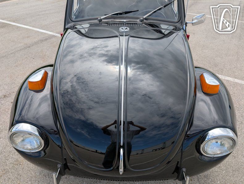 The Beetle's exterior is complemented by sleek aluminum wheels, adding a touch of modern flair to its classic silhouette. Equipped with radial tires, this vehicle ensures a smooth and stable ride, enhancing both comfort and performance. Inside, the black vinyl interior provides a clean and classic look, while the inclusion of seatbelts underscores a commitment to safety.