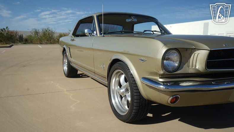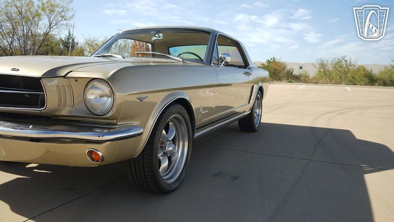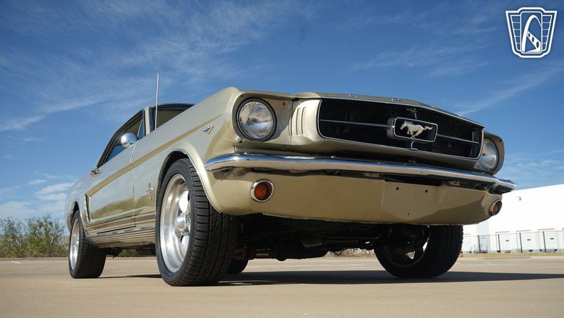 Gateway Classic Cars of Dallas is excited to offer this 1965 Ford Mustang Hardtop Coupe. Finished in Honey Gold exterior paint and paired with a gold vinyl interior. The hardtop body style is complemented by bucket seats with a center console, wheel arch moldings, and aluminum alloy wheels wrapped in radial tires. Seatbelts are present, and the interior is equipped with an AM/FM radio and air conditioning.